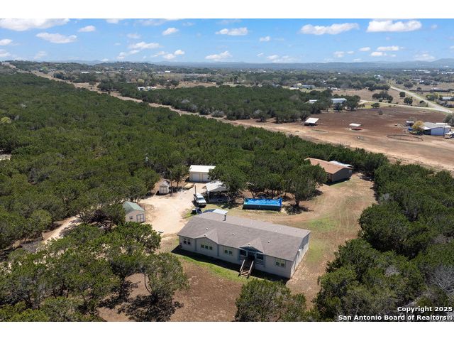 Escape to your own private oasis on this stunning 5-acre property in the heart of Bandera, Texas! Tucked away for ultimate privacy, this beautiful estate features two homes, making it perfect for multi-generational living, rental income, or hosting guests. The main house offers 3 bedrooms and 3 baths, with an inviting open floor plan, spacious kitchen, and plenty of natural light. Enjoy peaceful mornings on the covered porch, taking in the scenic Hill Country. A second home around 1600SF sits at the back of the property, featuring 3 bedrooms and 2 baths, ideal for extended family or an income-producing rental. Outdoor living is at its finest with an above-ground pool, a covered BBQ area, and plenty of space to entertain. The property also includes a shop with A/C, perfect for hobbies or a home business, as well as a two-car garage/shop for all your storage needs. If you're looking for privacy, space, and endless possibilities in Bandera, this unique property is a must-see!