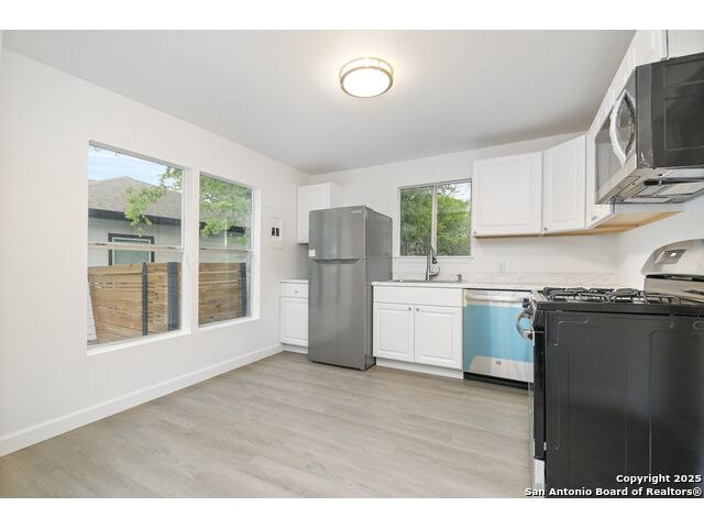 NO HOA! Updated home with a new roof on a spacious lot featuring a large storage building and cleared, maintained yard. Modern kitchen with stainless steel appliances, move-in ready. Prime location just 2 miles from Our Lady of the Lake University and Woodlawn Lake (seasonal fireworks views from home), and only 1/2 mile from Elmendorf Lake Park with pool, trails, and amenities. Next to Our Lady Of The Lake University.