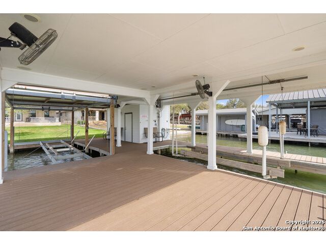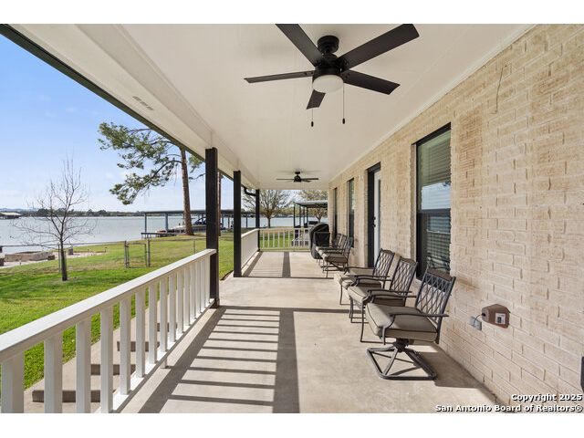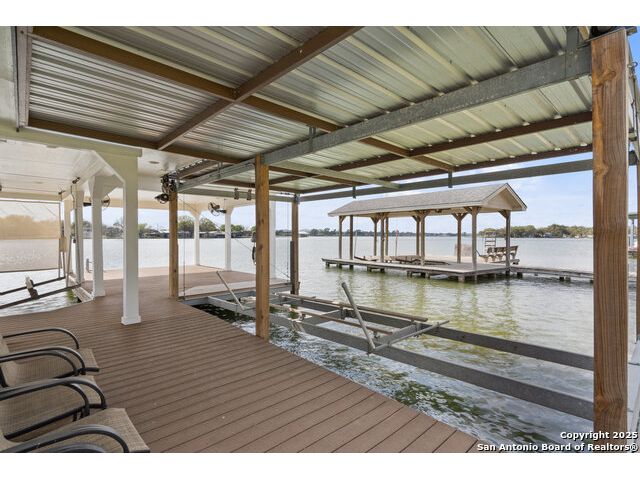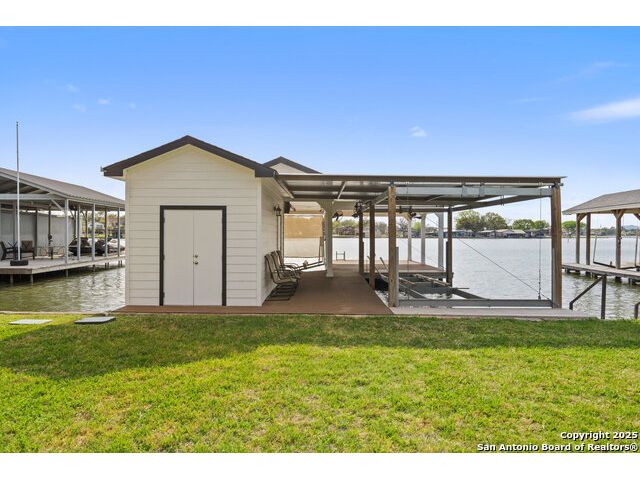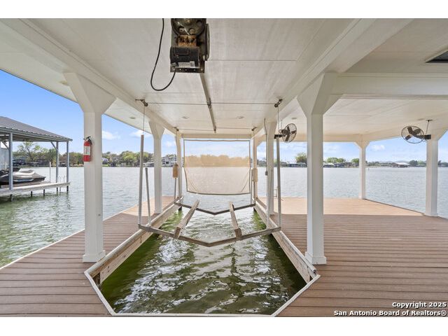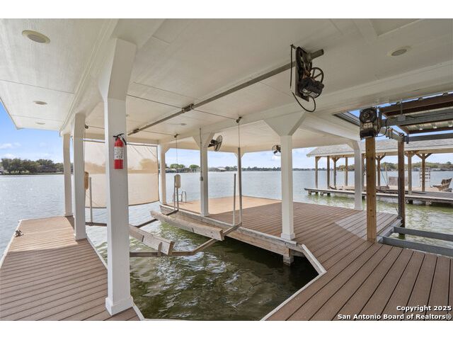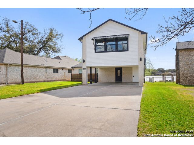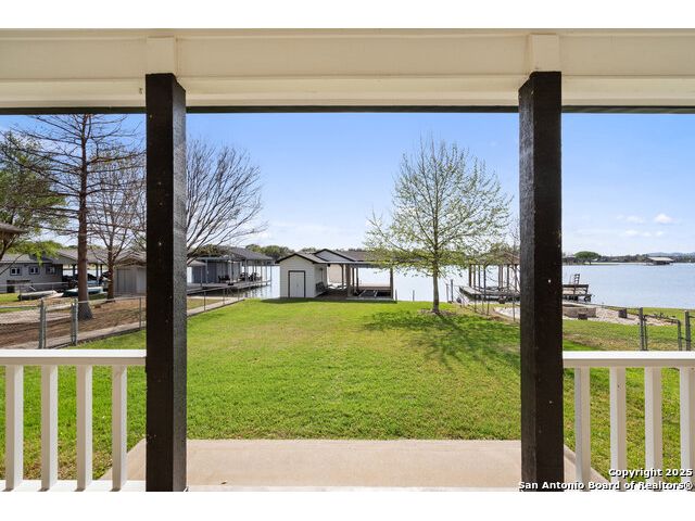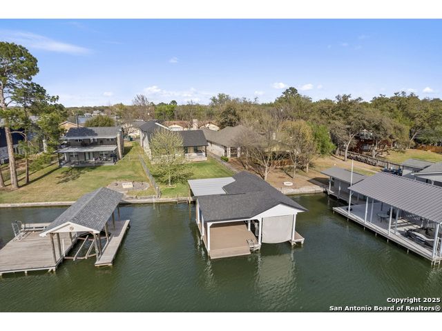 This Lake LBJ retreat is your gateway to endless lake adventures, boasting 50 feet of prime waterfront and a boathouse built for action-dual boat lifts, Trex decking, ceiling speakers, and a lounge area for soaking in the views. Easy water access? You got it-steps and a ladder lead straight in! When you're not cruising the waves, unwind on the shaded back patio with ceiling fans, perfect for lakeside grilling and good times. Inside, vaulted, beamed ceilings and wall-to-wall lake views set the scene in the open concept living space. The kitchen is built for gatherings, featuring granite counters, bar seating, and a sleek range with vent hood. The owner's suite is a serene escape with panoramic water views, an en suite with a walk-in shower, and a custom walk-in closet. Need space? The bunk room upstairs offers soaring ceilings, tons of natural light, and dual walk-in closets. With new windows (2024), a fresh roof, and zoned HVAC, comfort is covered. Plus-short-term rental friendly and just 0.2 miles from Bluebriar and Briar Park's boat ramp and lakeside park. Whether you're boating, floating, or fireside lounging, this Lake LBJ getaway is ready for you! Lake life starts now-let's make it yours!