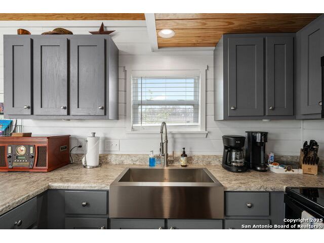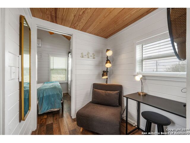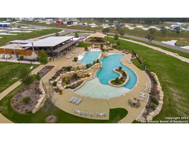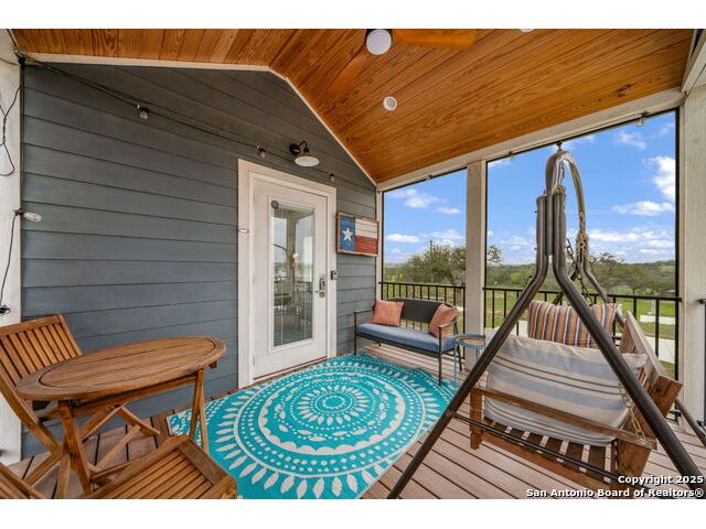 Escape to the tranquility of the Texas Hill Country with this charming tiny home that combines rustic elegance with modern comfort. Imagine enjoying your morning coffee on the screened-in porch, with a lovely view of the community pavilion and pool area-perfect for a happy start to your day. Inside, the beautiful wood ceilings create a warm, inviting atmosphere, complemented by a spacious kitchen and two dining areas. You'll have plenty of room to host guests or savor a cozy dinner for two. This thoughtfully designed retreat features an office or reading nook for quiet moments, while the primary bedroom offers nice storage with cabinets and dual closets. Outside, ample parking space ensures convenience for you and your visitors. Whether you're seeking a weekend getaway or a peaceful place to recharge, this home offers the perfect blend of comfort and charm in the heart of the Hill Country. Most of the contents convey.