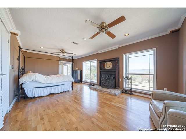 Welcome to a peaceful serene hillside with a gorgeous view of the Sabinal River Valley. The cool breeze and relaxing quiet hill country scenery can be enjoyed morning, noon and night. Mornings offer a view of the wildlife consisting of whitetail deer, feral hogs, feral rams, axis deer, wild turkeys, rabbits, squirrels, and armadillos. Several feeders and hunting blinds are scattered throughout the ranch for viewing or hunting the abundant wildlife. From noon to early evening, time can be spent under the many majestic oaks, elms and rare madrone native trees. The backyard swimming pool offers a cool and refreshing respite from our Texas summers. When evening approaches and the day light flickers, you can look towards the west from the backyard, the primary bedroom or the front yard and see the most specular sunsets that descend slowly behind the light baby blue mountains to the west here at the Sunset Ranch. As night approaches, the dark skies open up displaying the brightest stars and the most amazing planet viewing imaginable. Then you can sit back and enjoy, reflecting on what a marvelous and peaceful day it has been here, where dreams are made possible.