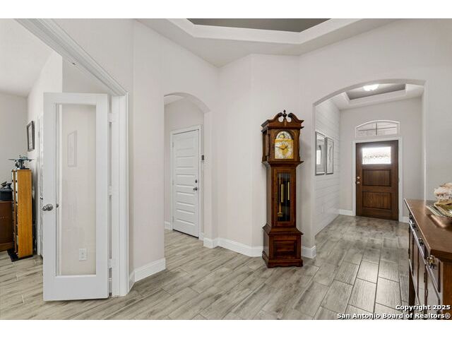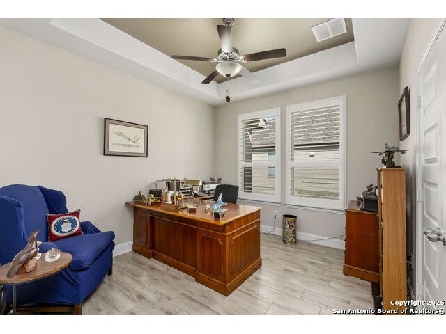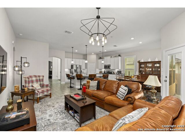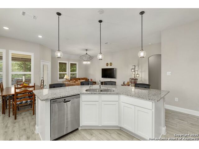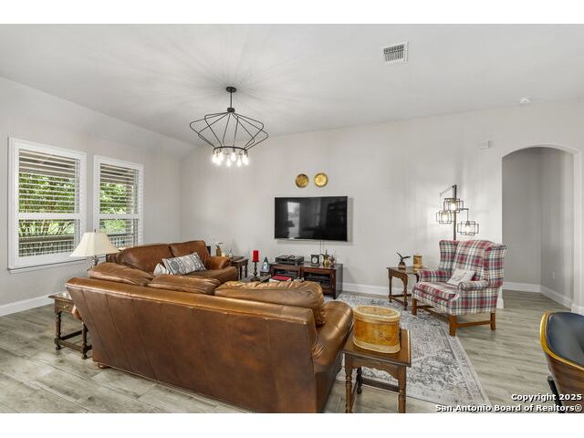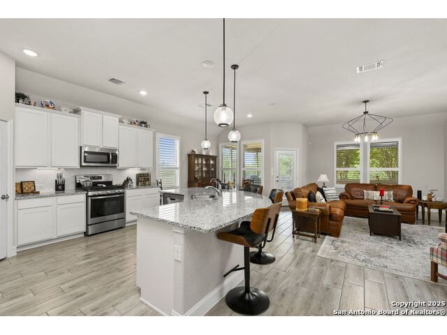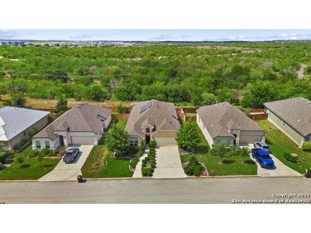 Assumable Loan at 3.25!!!! Discover this immaculate 3-bedroom, 2-bathroom gem nestled in a serene West San Antonio neighborhood near Golf Club of Texas and Briggs Ranch Golf Club. Boasting exquisite curb appeal enhanced by thoughtful landscaping, this home offers both tranquility and proximity to a growing community and Lackland AFB. Step inside to find a spacious open layout perfect for modern living, with a designated office space just off the entrance-ideal for work-from-home days. The heart of the home features a large, modern kitchen equipped with stainless steel appliances, a vast island with bar seating, and an adjacent butler's pantry for additional storage and preparation space. The grand primary suite serves as a private retreat, featuring a spa-like en suite bathroom with a large shower, dual vanities, and a substantial walk-in closet, providing a sanctuary of relaxation and style. Extend your living space outdoors onto the large patio deck, equipped with ceiling fans and extensive seating areas, perfect for entertaining or quiet evenings enjoying the sunset. Additional features like solar panels and no direct neighbors behind ensure privacy and efficiency, making this home an ideal choice for those seeking a luxurious yet practical living environment. Ready to embrace peaceful living with all the modern luxuries? Your new home awaits in West San Antonio.