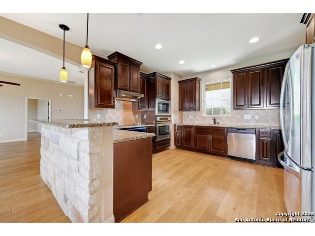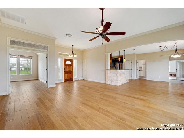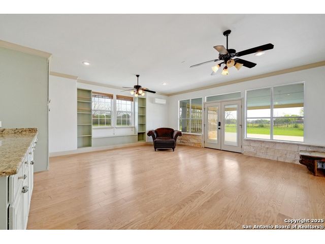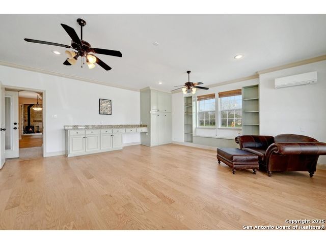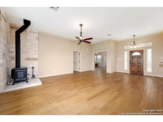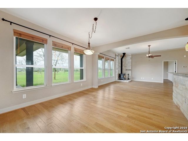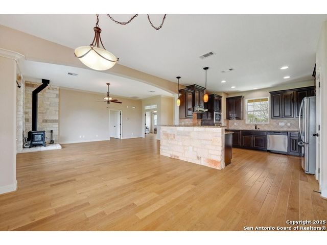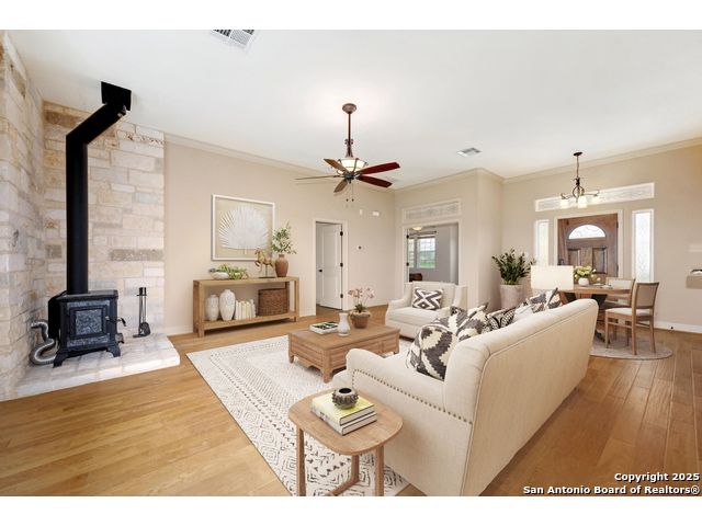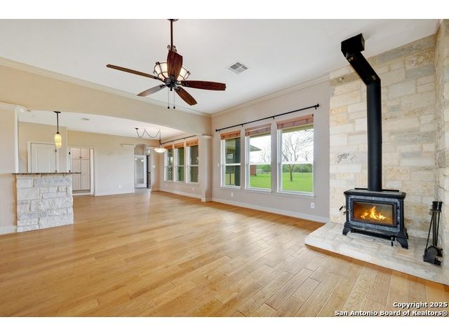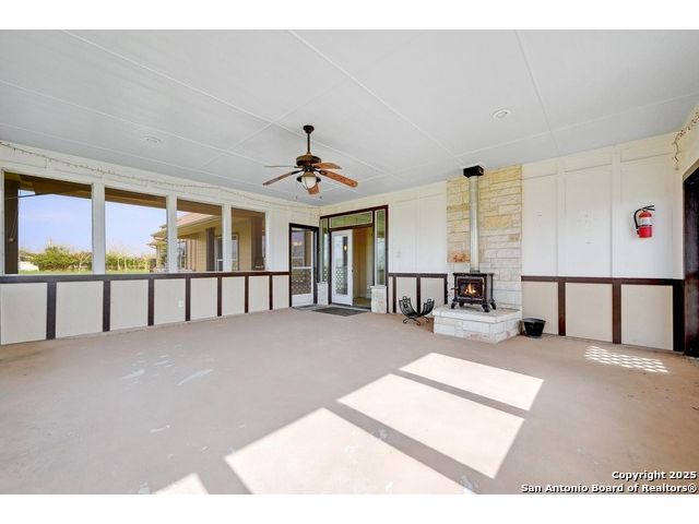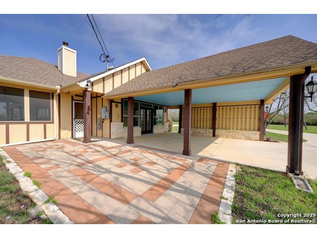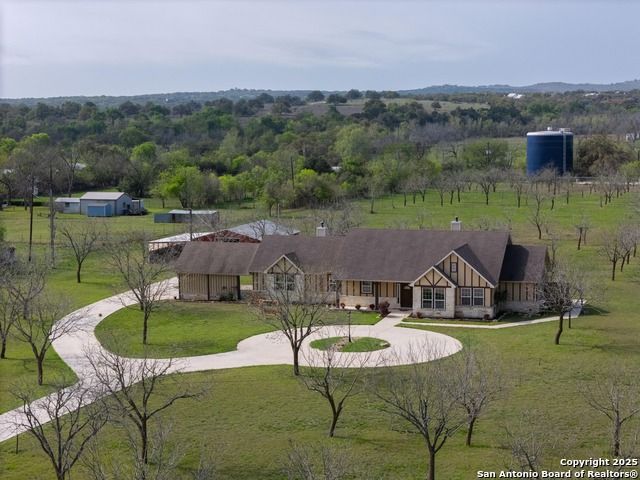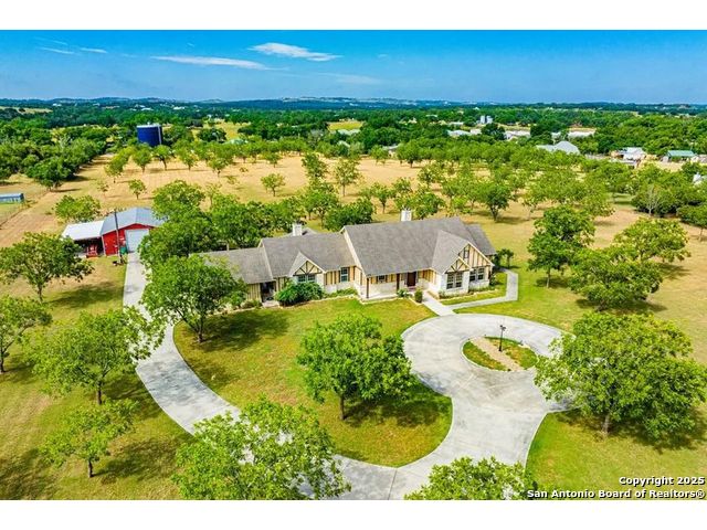 Amazing!!! Rare Unicorn Property!!! 9+/- acres, AG Exempt inside Blanco City Limits! Walk out the back gate of the property and across the street to Blanco State Park. Beautiful 2/2.5 Home 2294 SQFT with attached carport. Also Has detached workshop on slab for your classic cars or projects. Additional carport attached to workshop for tractor/boat storage. Large concrete circle driveway and gated entrance for privacy. The property also boasts a huge Pecan Grove that is irrigated by its own well. Lush Fig Trees around the workshop. Enjoy a large screened in porch with wood burning stove that overlooks the Pecan Grove and Hill Country Vistas. Country living within walking distance to Blanco's downtown square. Must see to appreciate.