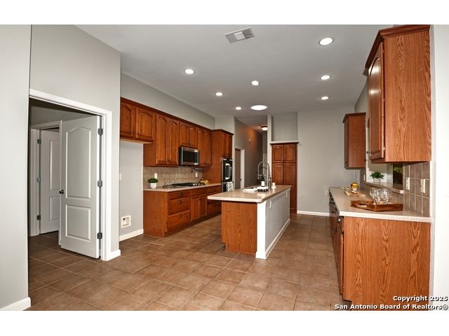 *OPEN HOUSE this Saturday 8 NOV from 12-3 pm.* Motivated Seller! Offering closing cost concessions to the buyer with an acceptable offer. Discover this beautiful home in the desirable Heritage Oaks subdivision, conveniently located right off Nakoma and directly across from McAllister Park. This spacious 3-bedroom, 2.5-bath home offers 2,328 sq. ft. of living space, a 2-car garage, and a flexible office/study that can serve as a 4th bedroom with its own walk-in closet. The home features easy-care tile flooring throughout, arched accents in the living and kitchen areas, and thoughtful upgrades throughout. The chef's kitchen is a standout with a large center island, two prep islands, breakfast bar, GE Cafe stainless steel appliances, double ovens, and a pot filler for added convenience. The primary suite includes his and hers walk-in closets, and a spa-like bath with a large walk-in shower featuring dual showerheads and dual vanities. Two secondary bedrooms share a Jack-and-Jill bathroom, and there's also a convenient half bath for guests. Enjoy outdoor living on the large covered deck with a gas connection for BBQs, perfect for entertaining. A storage shed in the backyard provides extra space for tools or gardening equipment. Don't miss your chance to own this exceptional home in a prime central location. Schedule your private showing today!