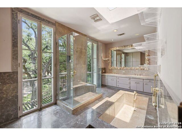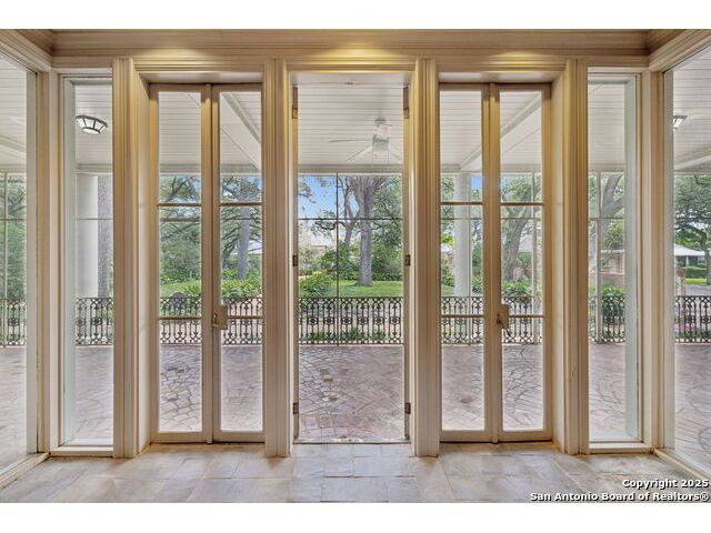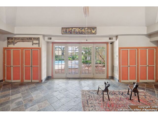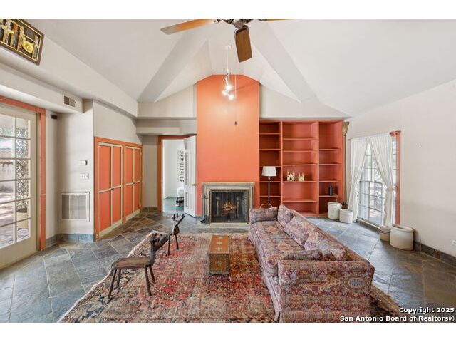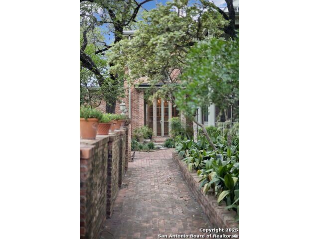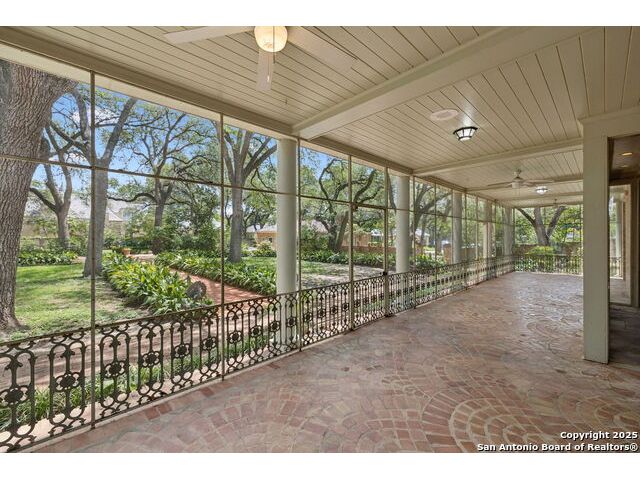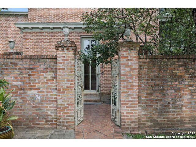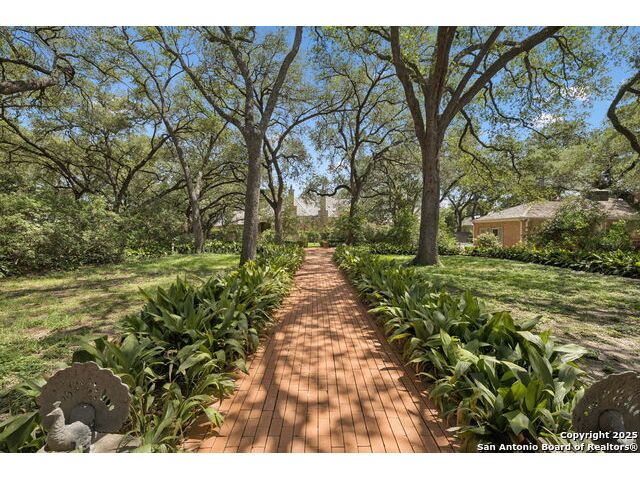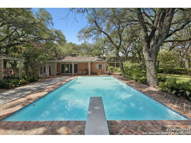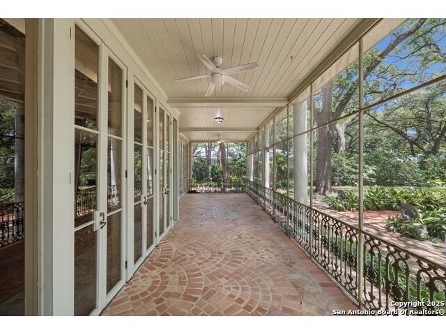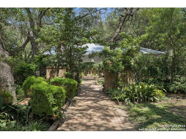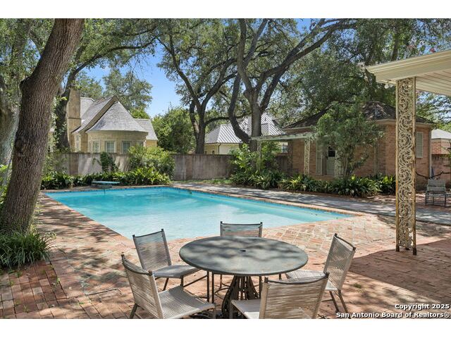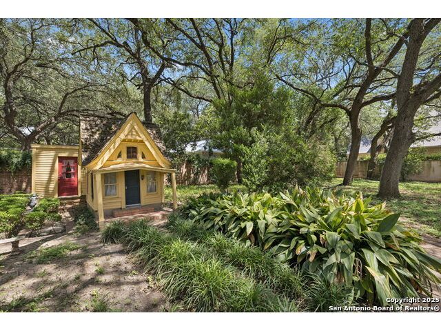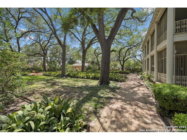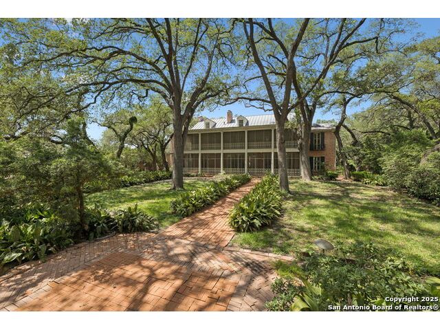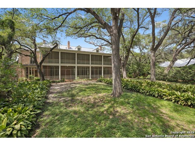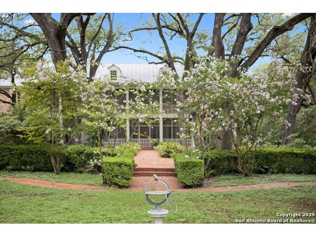 Offered for the first time in 85 years, the storied home at 424 Ivy Lane is a rare opportunity to own a prominent estate in the heart of Terrell Hills. Built in 1940 by noted architect Bartlett Cocke, this timeless residence spans over 8,000 square feet of grand yet inviting living space, nestled on 2.06 acres beneath majestic heritage oaks. The main home features 4 spacious bedrooms, 3.5 bathrooms, a bespoke library rooted in the home's original design, multiple living areas, and two oversized screened-in porches ideal for relaxing or entertaining. Beautiful parquet hardwood floors run throughout, while French doors in every room-custom-designed and inspired by the Ritz in Paris-bring the outside in, flooding interiors with natural light and garden views. An elevator adds ease and convenience in accessing all three levels of the home. A detached 1,200 sq ft casita includes a full kitchen, living and dining areas, bedroom, full bath, and its own private porch-perfect as a guest house, in-law suite, or private retreat. The charming Rose Cottage pool house offers a full bath and a flexible-use room overlooking the sparkling swimming pool. The grounds unfold with magical garden settings beneath mature oak canopies, creating a sense of privacy and timeless beauty. A 4-car garage and exceptional potential for thoughtful updates make this a once-in-a-generation offering in one of San Antonio's most prestigious neighborhoods.