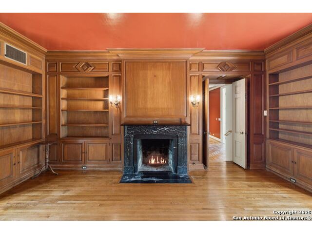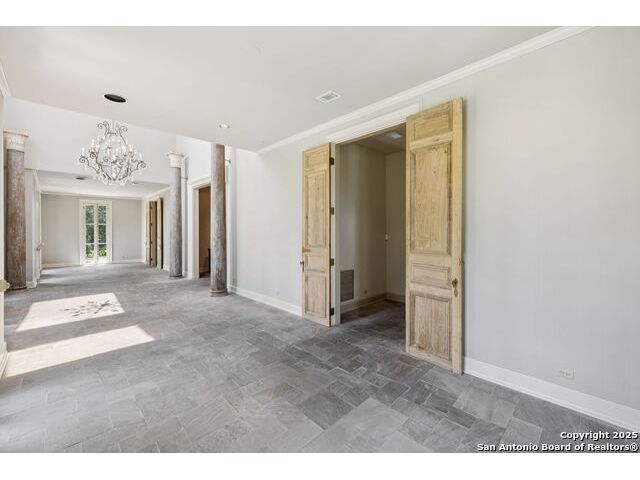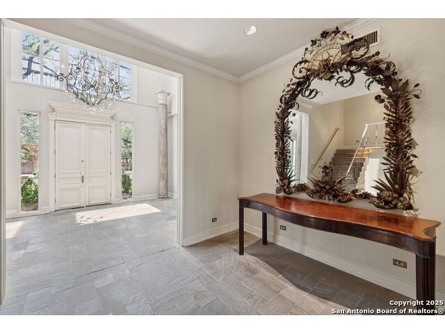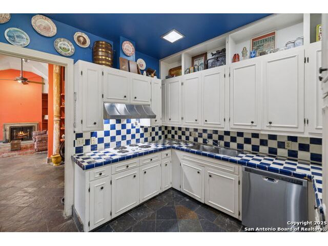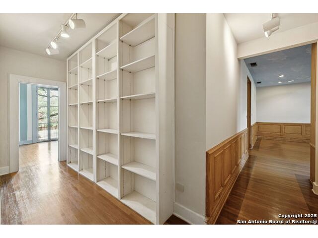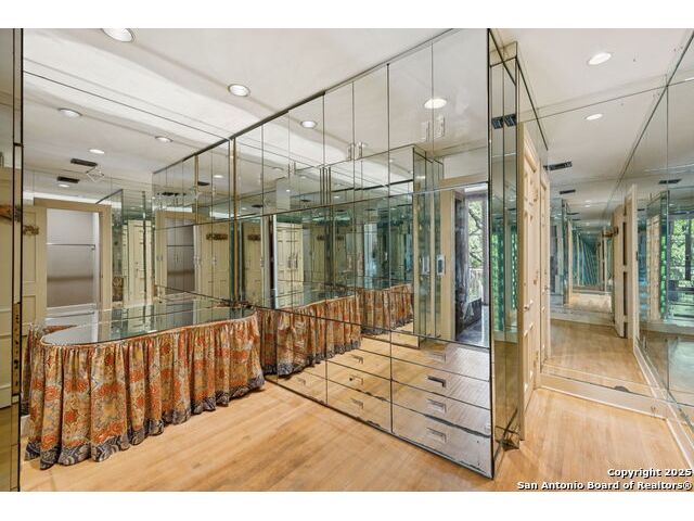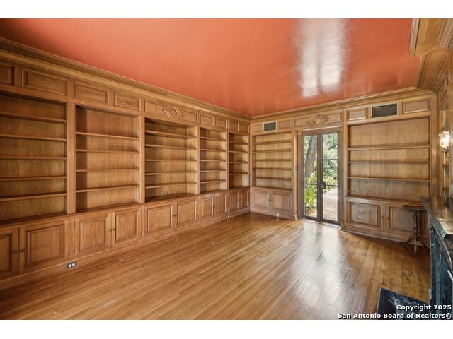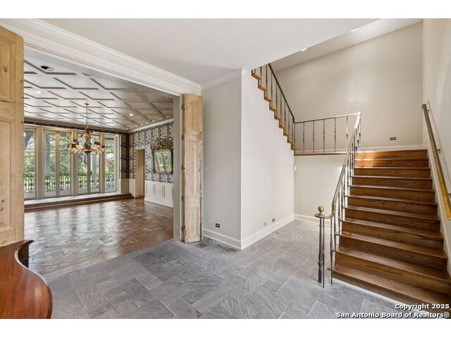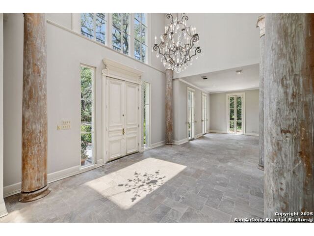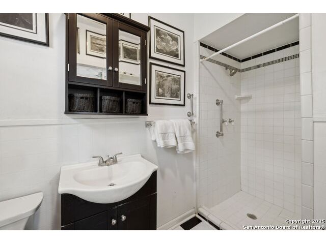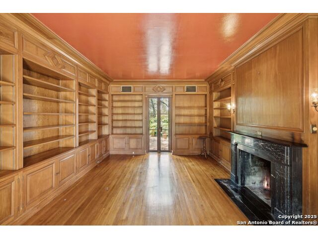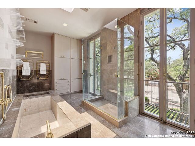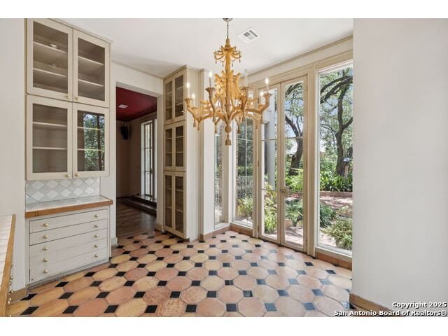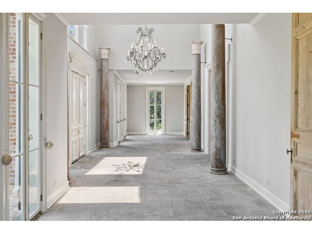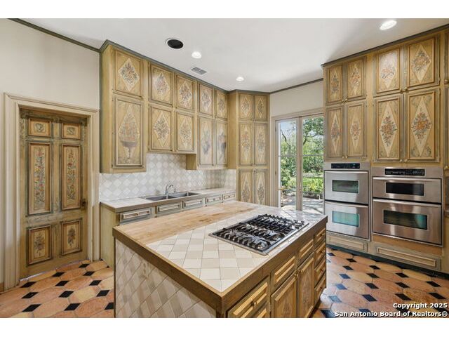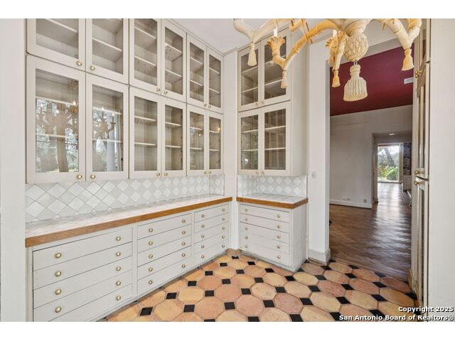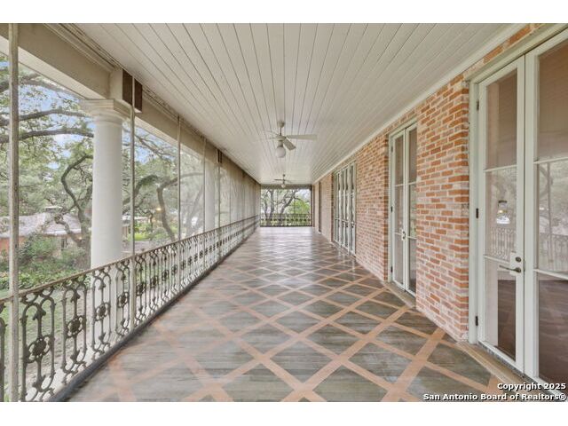 Offered for the first time in 85 years, the storied home at 424 Ivy Lane is a rare opportunity to own a prominent estate in the heart of Terrell Hills. Built in 1940 by noted architect Bartlett Cocke, this timeless residence spans over 8,000 square feet of grand yet inviting living space, nestled on 2.06 acres beneath majestic heritage oaks. The main home features 4 spacious bedrooms, 3.5 bathrooms, a bespoke library rooted in the home's original design, multiple living areas, and two oversized screened-in porches ideal for relaxing or entertaining. Beautiful parquet hardwood floors run throughout, while French doors in every room-custom-designed and inspired by the Ritz in Paris-bring the outside in, flooding interiors with natural light and garden views. An elevator adds ease and convenience in accessing all three levels of the home. A detached 1,200 sq ft casita includes a full kitchen, living and dining areas, bedroom, full bath, and its own private porch-perfect as a guest house, in-law suite, or private retreat. The charming Rose Cottage pool house offers a full bath and a flexible-use room overlooking the sparkling swimming pool. The grounds unfold with magical garden settings beneath mature oak canopies, creating a sense of privacy and timeless beauty. A 4-car garage and exceptional potential for thoughtful updates make this a once-in-a-generation offering in one of San Antonio's most prestigious neighborhoods.
