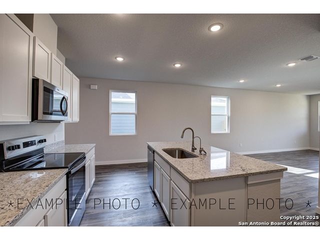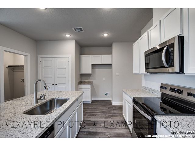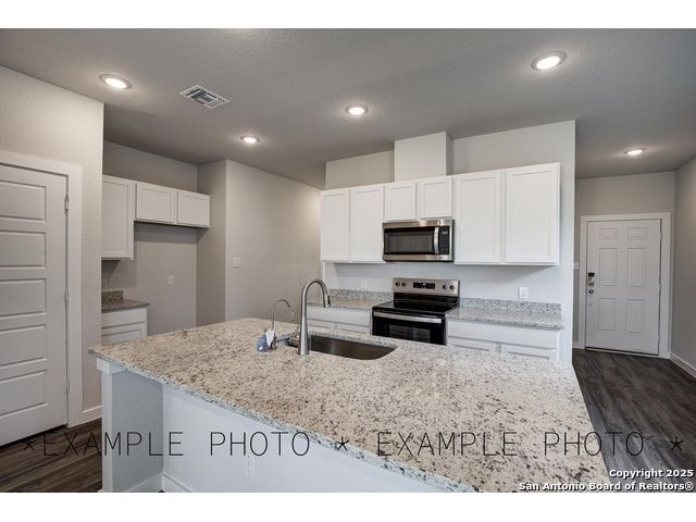Welcome to the Isabella at Spring Creek, where elegance meets versatility in a single-story floor plan. This home embraces the open-concept lifestyle, with its seamlessly connected great room, dining area, and kitchen, a layout perfect for everything from entertaining to game night. The owner's suite features a private bathroom and a large walk-in closet, and the remaining three bedrooms share a bath with dual vanities. Additional home highlights and upgrades: 36"" gray kitchen cabinets, quartz countertops and backsplash Luxury wood-look vinyl plank flooring in common areas Stainless-steel appliance package Recessed lighting throughout home Soft water loop upgrade Cultured marble countertops and modern rectangular sinks in bathrooms Landscape package with full irrigation system Garage door opener and two remotes Exceptional included features, such as our Century Home Connect smart home package and more!