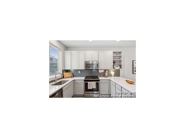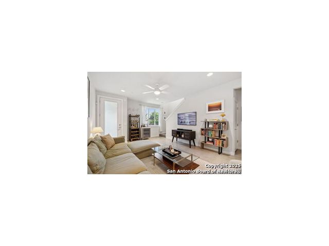 Discover the pulse of Southtown, where vibrant urban energy meets the tranquility of home. This hassle-free, lock-and-leave 2-bedroom, 2.5-bath free-standing condo is your personal sanctuary, offering an open floor plan and a rare enclosed backyard-perfect for unwinding or outdoor enjoyment. Step into a kitchen designed for both function and style, featuring ample cabinetry, sleek quartz countertops, gas cooking, stainless steel appliances, and a generous window above the sink that floods the space with light. The welcoming breakfast bar and room for a dining table make it ideal for entertaining or everyday living. Flowing seamlessly into the great room, you'll be greeted by lofty 9-foot ceilings and a large window framing your private outdoor haven-complete with a convenient half bath on the main level. Upstairs, a versatile flex space and laundry closet separate two thoughtfully designed bedrooms, each with soaring cathedral ceilings and abundant windows for an airy, open feel. The primary bedroom presents an en-suite bathroom with quartz counters and a sleek shower, while the second bathroom offers quartz countertops and a tub/shower combo, adding everyday luxury. With solar panels to cut living costs, this retreat marries affordability with sophistication. Just steps from Blue Star, the San Antonio River, The Mission Trail, top-tier restaurants, museums, and downtown attractions, you're at the heart of Southtown's finest. Also available for 12/month Lease, MLS 1919286.