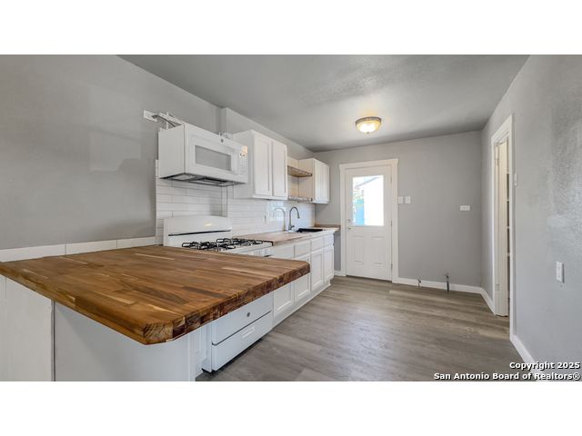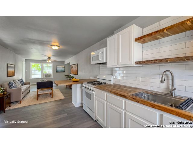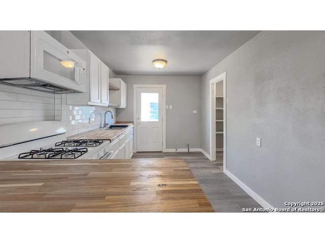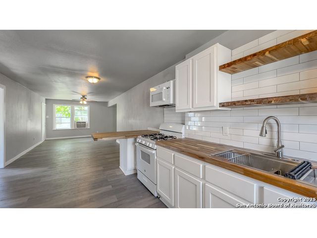 Take a look at this 3 bedroom, 2 bath home ready for move-in! Split floor plan with ceiling fans throughout. Updated bathrooms and kitchen with subway tile backsplash and butcher block countertops. Recently installed vinyl flooring. Spacious pantry area. Large, fenced-in backyard. Separate utility room.