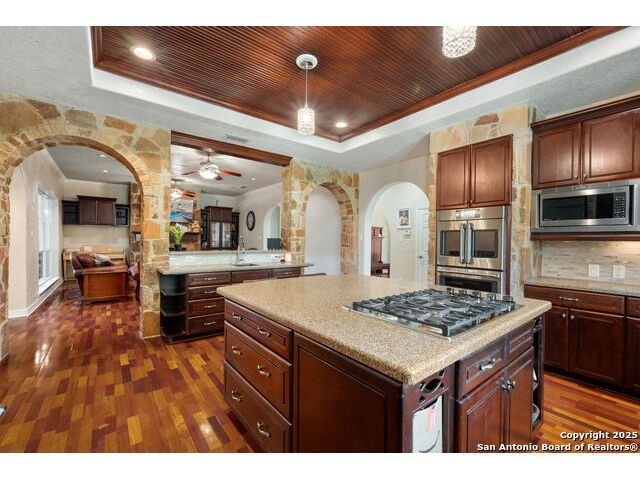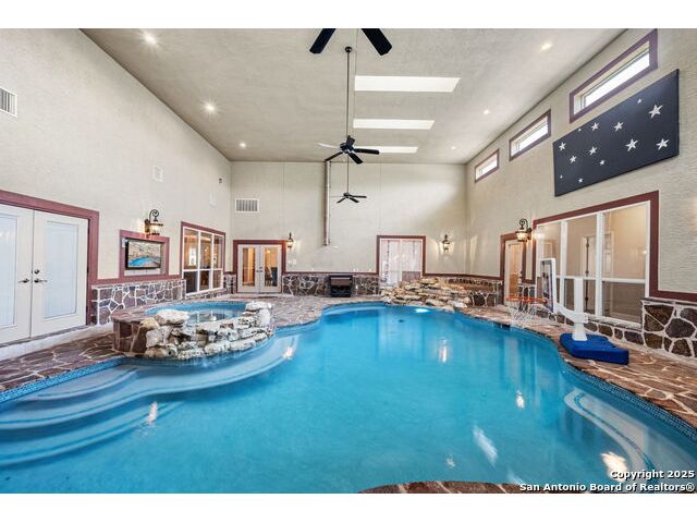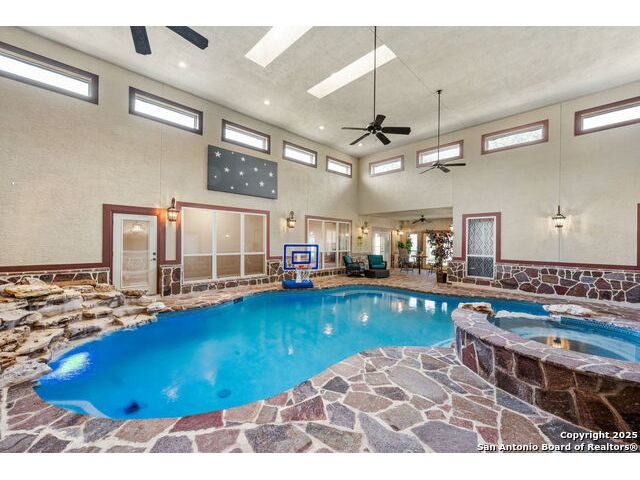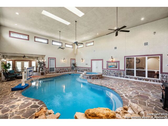 Discover a truly exceptional lifestyle in this luxurious 5-bedroom, 5.5-bath home, perfectly situated on 1.27 acres in an exclusive gated neighborhood. All bedrooms are conveniently located downstairs, offering comfort and privacy across 4,844 sq. ft. of thoughtfully designed living space. A standout feature of this residence is the stunning indoor pool-enjoy year-round swimming and relaxation in your own private oasis, no matter the weather. Step outside to a spacious, screened-in patio complete with a fully equipped outdoor kitchen, ideal for entertaining or unwinding while surrounded by beautiful, mature trees. Additional highlights include a recently replaced roof, a dedicated media room, space for a home gym, a private office/study, a formal dining room, and abundant storage throughout. Experience the perfect blend of elegance, functionality, and resort-style amenities-this is a rare opportunity to own a home that truly has it all!