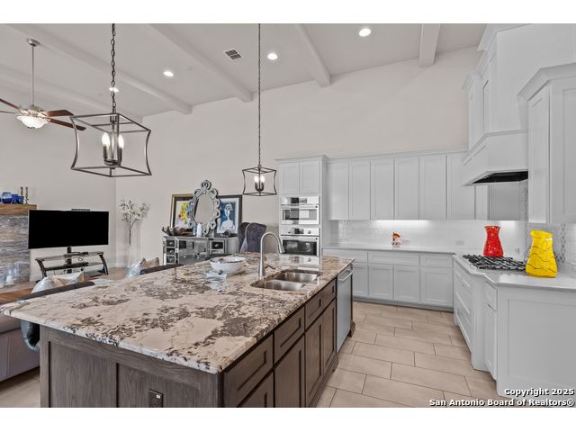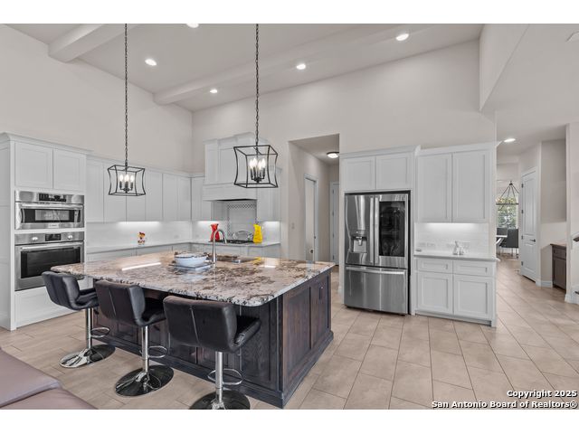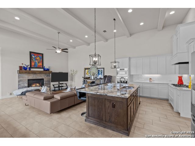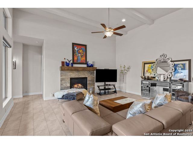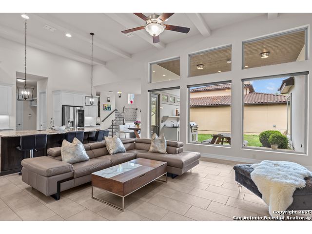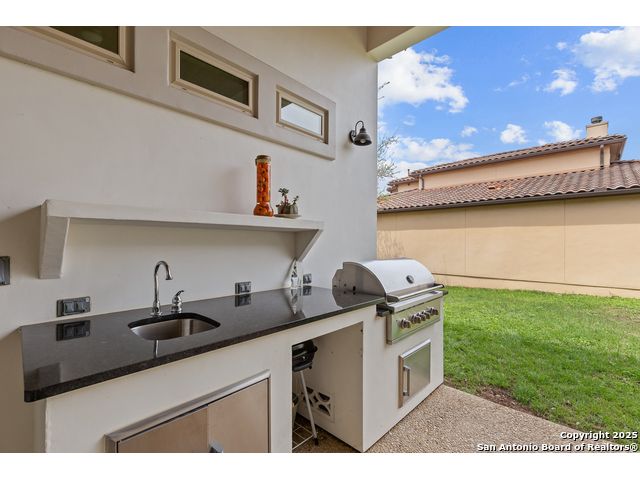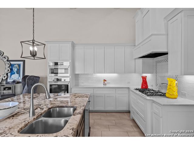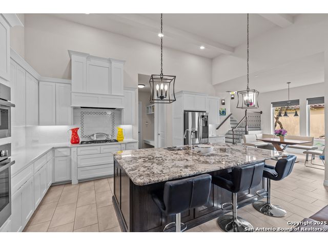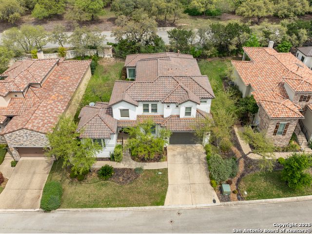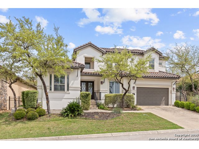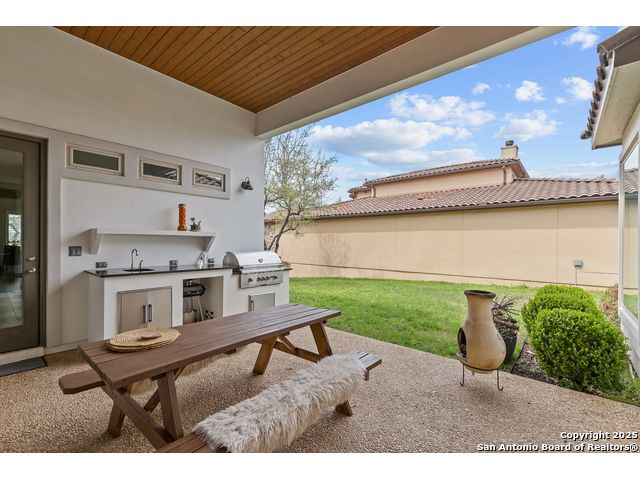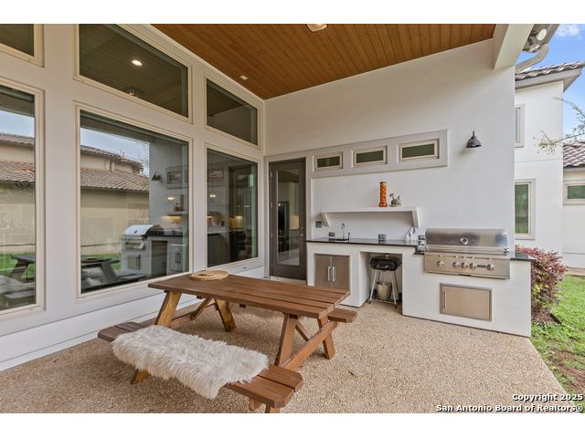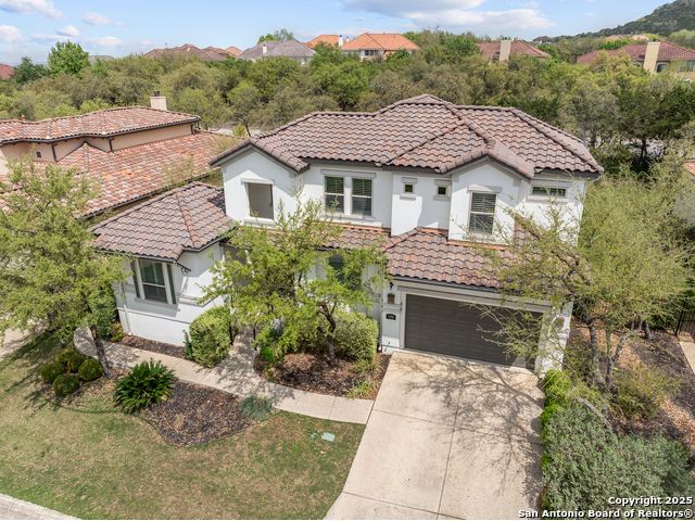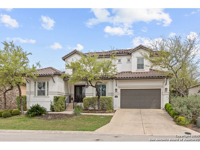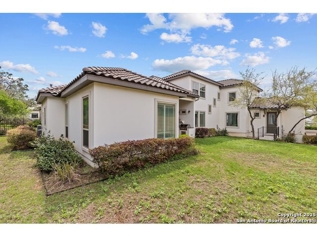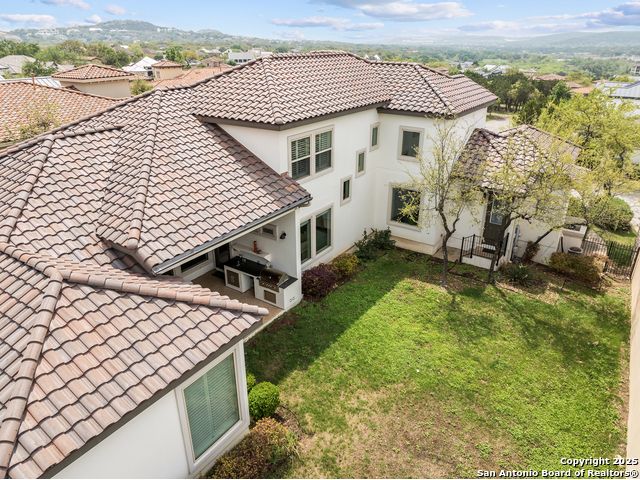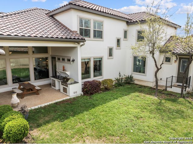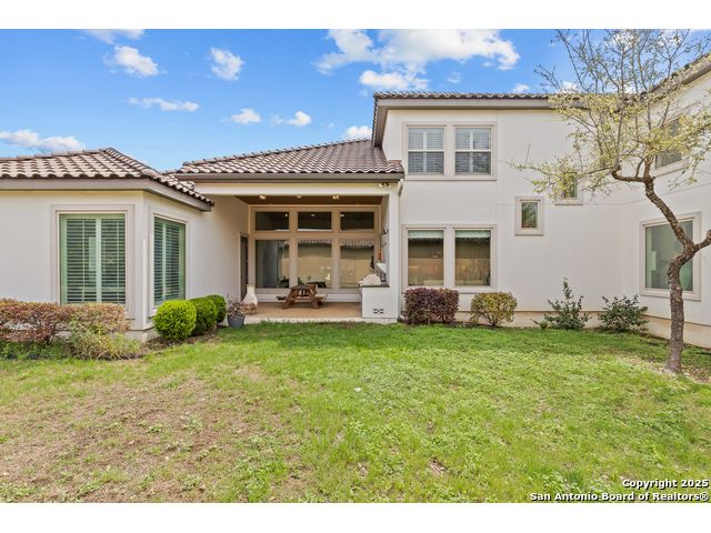 Stunning 4-bedroom, 3.5-bath home with mother-in-law suite nestled in a highly sought-after Dominion neighborhood . Discover luxurious, multi-generational living in this custom 2018 home complete with open -concept design, chef-grade outdoor kitchen and private guest suite. Boasting 3,331 sq. ft. of open, light-filled spaces, this home effortlessly blends elegance with everyday comfort. The heart of the home is the spacious island kitchen, featuring granite countertops, high-end Bosch stainless steel appliances, custom cabinetry, and a walk-in pantry, a dream for any home chef! The kitchen seamlessly flows into the inviting family room, where a cozy fireplace and charming coffered ceilings create the perfect atmosphere for gatherings. Retreat to the luxurious master suite, complete with a spa-like master bath featuring a glass-enclosed shower, whirlpool tub, and dual vanities. A private mother-in-law suite downstairs offers a full bath and patio access, ideal for guests or multi-generational living. Upstairs, you'll find two generously sized bedrooms sharing a Jack-and-Jill bath, plus a game room/ loft perfect for entertainment, a home office, or a quiet retreat. Step outside into your private backyard oasis, where a covered patio with built-in grill, lush landscaping, and a fully equipped outdoor kitchen make for the perfect place to relax or entertain. There's also plenty of room to add a pool, enhancing your outdoor living experience. Dominion boasts gate entry with 24/7 security, tennis courts, clubhouse, jogging trails and parks.