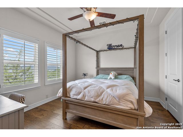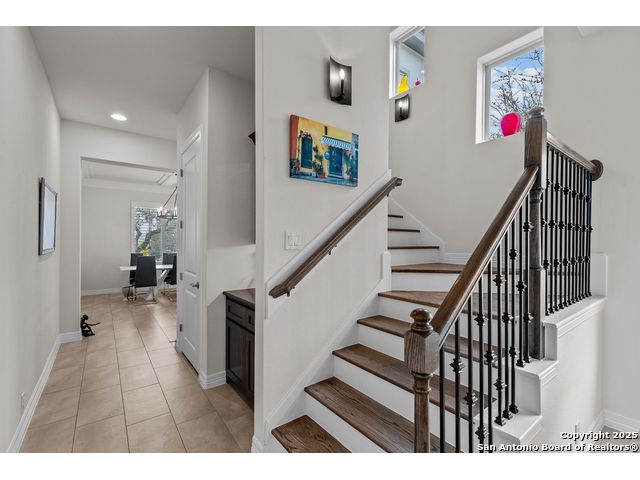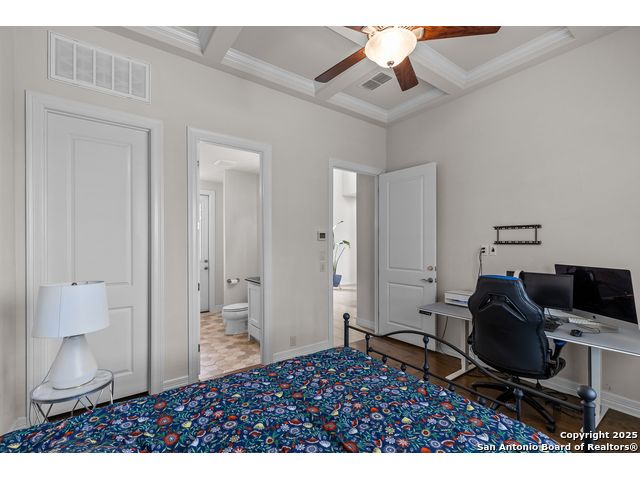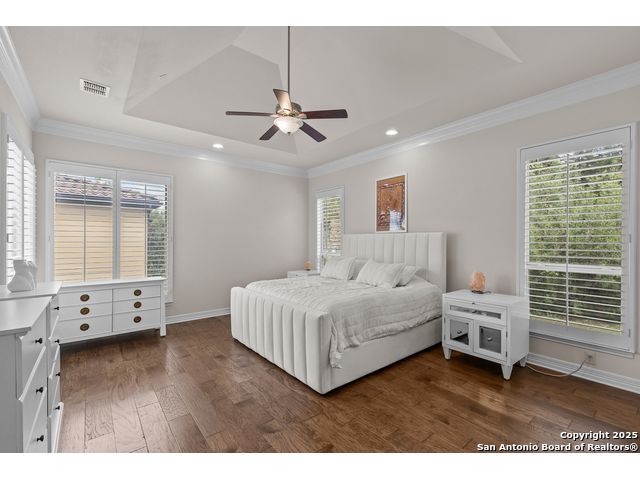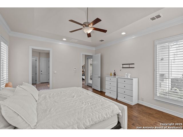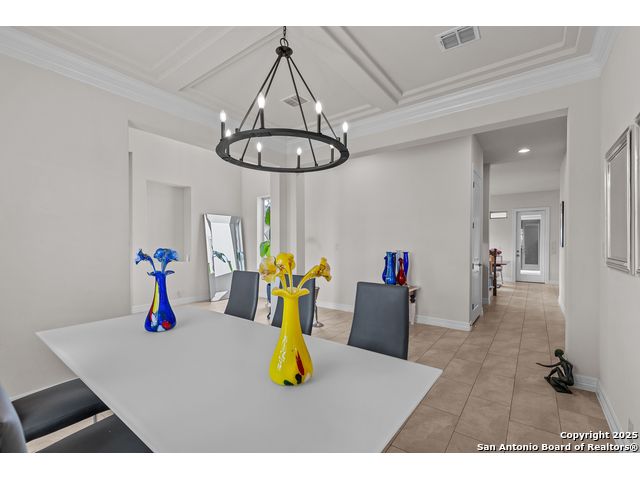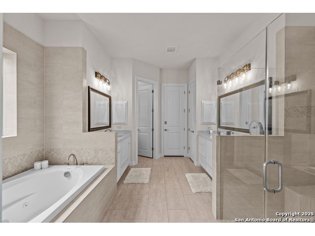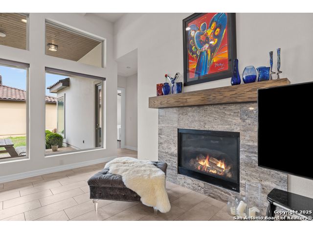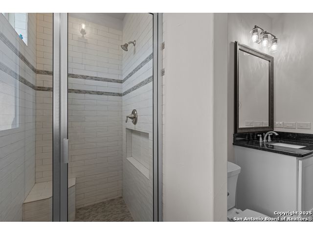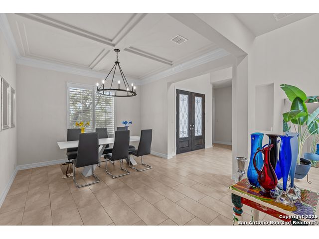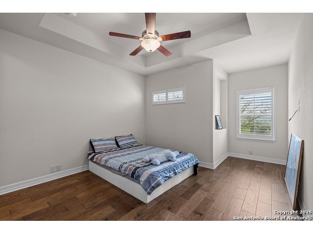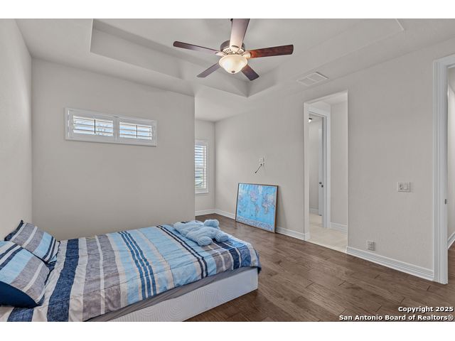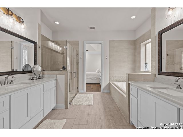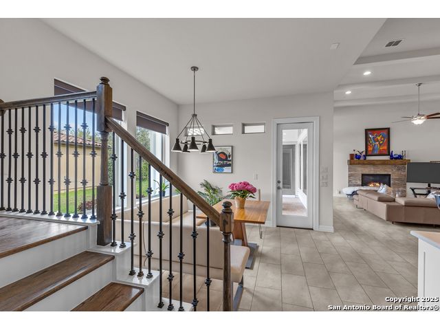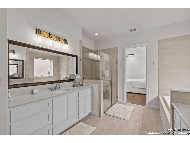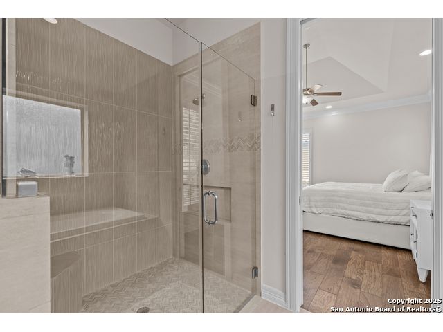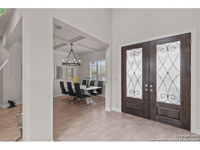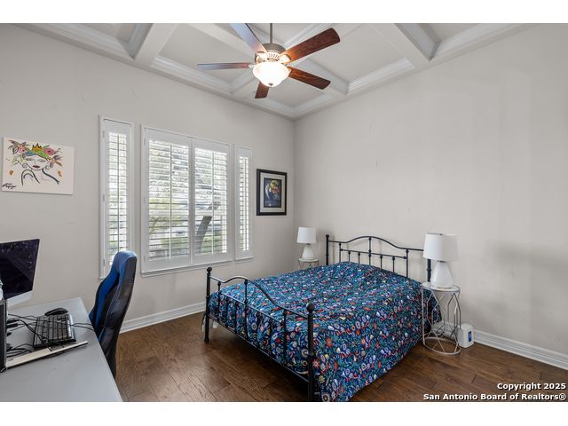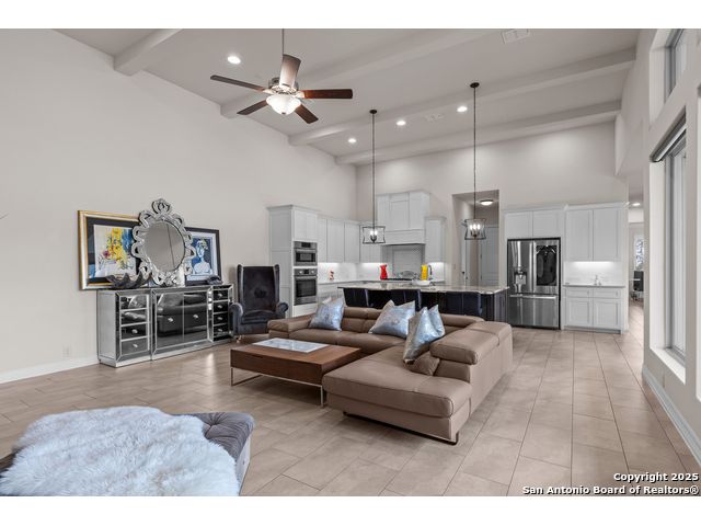 Stunning 4-bedroom, 3.5-bath home with mother-in-law suite nestled in a highly sought-after Dominion neighborhood . Discover luxurious, multi-generational living in this custom 2018 home complete with open -concept design, chef-grade outdoor kitchen and private guest suite. Boasting 3,331 sq. ft. of open, light-filled spaces, this home effortlessly blends elegance with everyday comfort. The heart of the home is the spacious island kitchen, featuring granite countertops, high-end Bosch stainless steel appliances, custom cabinetry, and a walk-in pantry, a dream for any home chef! The kitchen seamlessly flows into the inviting family room, where a cozy fireplace and charming coffered ceilings create the perfect atmosphere for gatherings. Retreat to the luxurious master suite, complete with a spa-like master bath featuring a glass-enclosed shower, whirlpool tub, and dual vanities. A private mother-in-law suite downstairs offers a full bath and patio access, ideal for guests or multi-generational living. Upstairs, you'll find two generously sized bedrooms sharing a Jack-and-Jill bath, plus a game room/ loft perfect for entertainment, a home office, or a quiet retreat. Step outside into your private backyard oasis, where a covered patio with built-in grill, lush landscaping, and a fully equipped outdoor kitchen make for the perfect place to relax or entertain. There's also plenty of room to add a pool, enhancing your outdoor living experience. Dominion boasts gate entry with 24/7 security, tennis courts, clubhouse, jogging trails and parks.