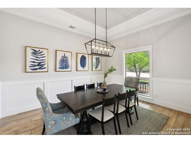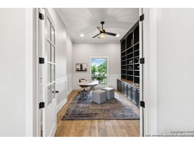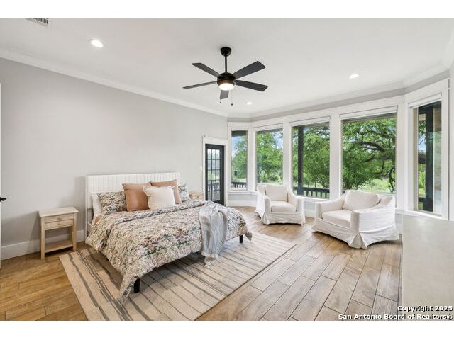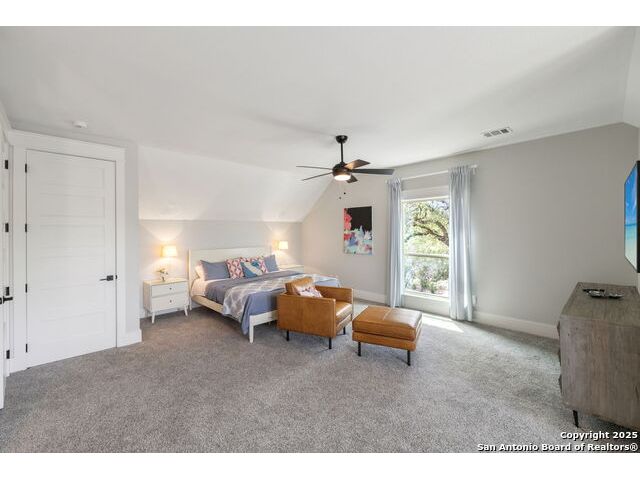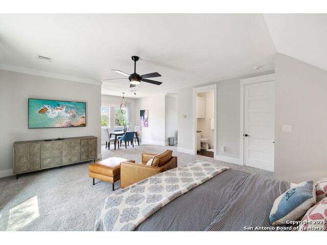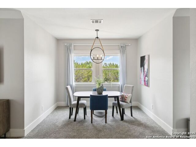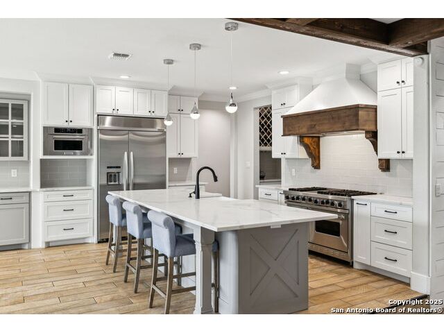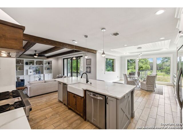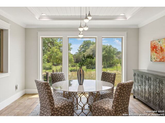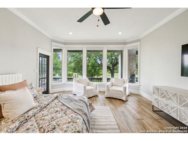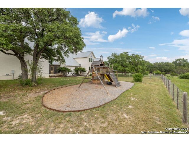 Sited on 3.75 acres in Cordillera Ranch, this ranch-style residence offers a blend of privacy, generous scale, and refined Hill Country living. Surrounded by mature trees and thoughtfully arranged outdoor spaces, the property features a wide front porch, a full outdoor kitchen, and a wraparound deck-each element designed to foster both quiet retreat and effortless entertaining. Inside, the spacious layout and traditional materials define the home's character. The foyer leads to a generous living area with soaring ceilings, oversized windows, and statement wood beams that underscore the refined interiors. A private study with built-ins and a formal dining room offer elegant spaces for work and gathering. The kitchen, crafted for both function and ease, is outfitted with a Viking oven beneath a custom wood vent hood and range, KitchenAid refrigerator and microwave, Ice-O-Matic ice maker, and a large center island. The expansive main-floor primary suite includes a custom closet system and a private bath, while three additional bedrooms-each with walk-in closets and en-suite baths-offer ample comfort for family or guests. Additional interior highlights include a game room, media room, oversized utility areas, and a spacious screened-in porch. A detached three-car garage with a full apartment above provides flexible use as a guest suite or studio. Community amenities include access to Cordillera Ranch's private Guadalupe River Park, Jack Nicklaus Signature Golf Course, and club facilities. This property blends traditional aesthetics with enduring livability in one of Boerne's most established gated communities. Please note: this property does not include a Master Golf Membership.