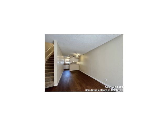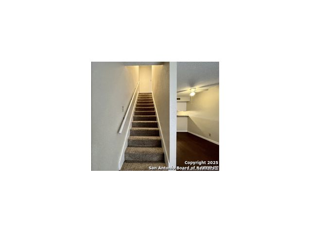 Introducing the "Vertical Villa" - where your townhome adventure begins on the second floor of the building, and your retreat space defies gravity on the third floor! If you've ever dreamed of living life on the upswing, this one-bedroom, two-story townhome condo is your ticket to new heights! As you ascend to your aerie in the sky, you'll find a cozy living room and kitchen with luxury vinyl plank flooring. Who needs an elevator when you've got this unique stairway workout built right into your daily routine? For added convenience, we've thoughtfully included stacked washer and dryer connections right in the kitchen area - laundry day just got an upgrade! Speaking of upgrades, the kitchen boasts all the essentials: dishwasher, stove range, and a hood vent that could probably power a small rocket. And if you're a fan of ceiling fans, you're in luck - there's one in the bedroom to keep you cool as you soak in the panoramic views of your assigned carport space (because even your car deserves a stylish spot). But the piece de resistance? Your private balcony off the primary bedroom. Picture yourself sipping your morning coffee with the eagles - okay, maybe not eagles, but definitely a few chirping birds. The large bathroom upstairs features a tub-shower combo, a single vanity area with plenty of counter space, and a linen closet that's practically a walk-in closet in disguise. For those who love a good splash, the community pool and lounge area are just a hop, skip, and a jump away. And when you're ready to spread your wings, you'll find yourself conveniently close to the San Antonio Airport, McAllister Park, and Lady Bird Johnson Park. Don't let this chance to live life on the up-and-up pass you by.