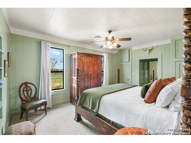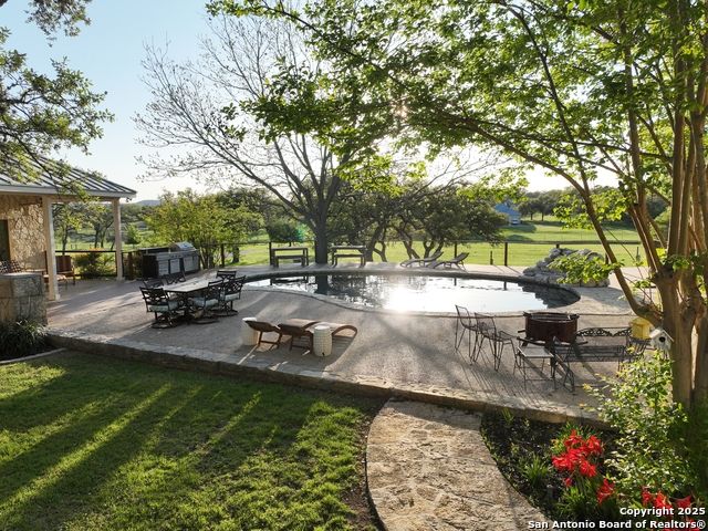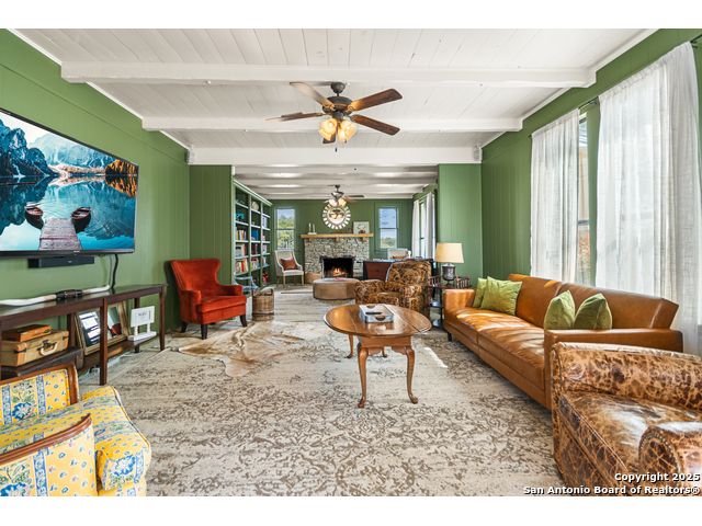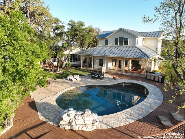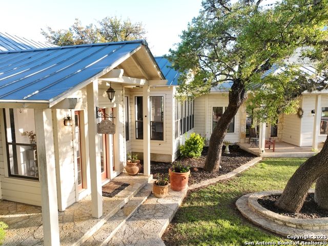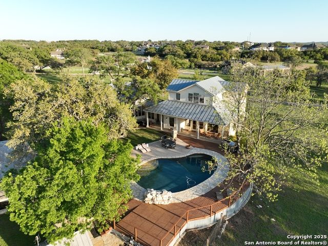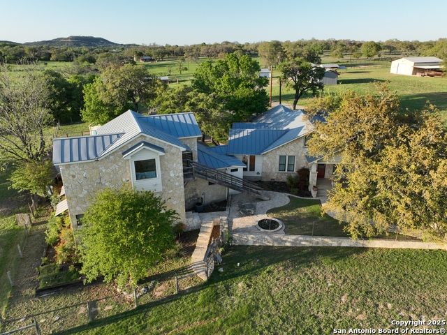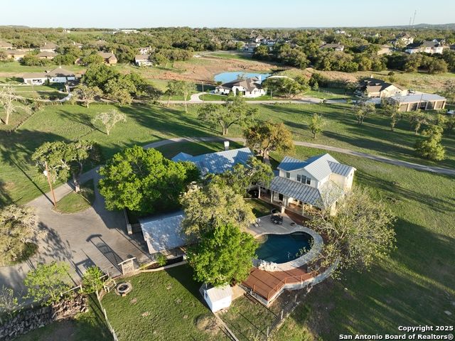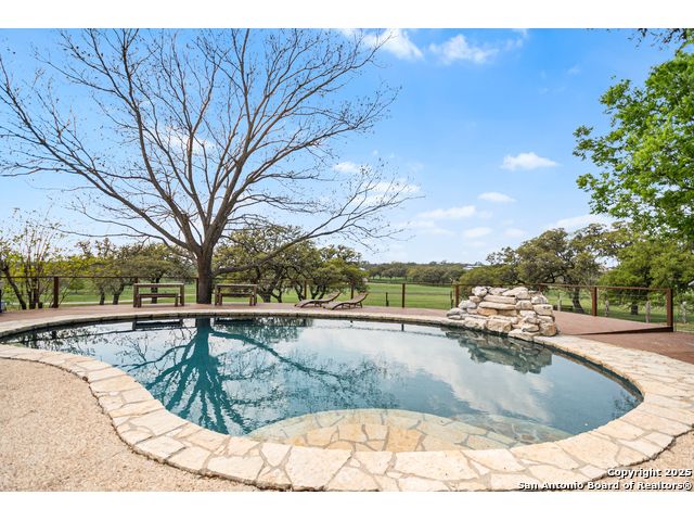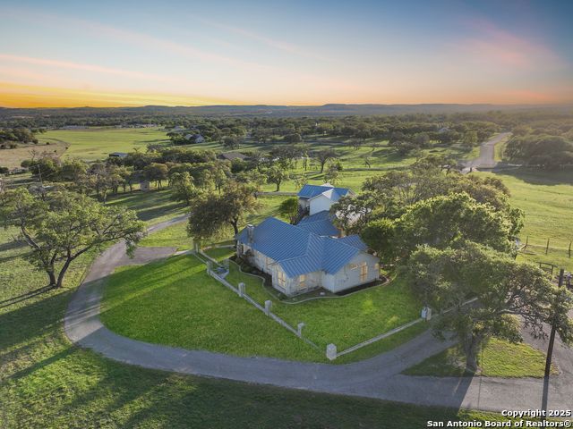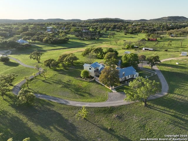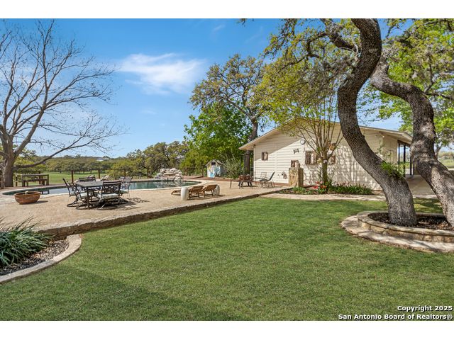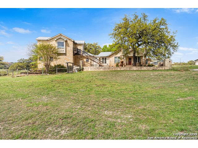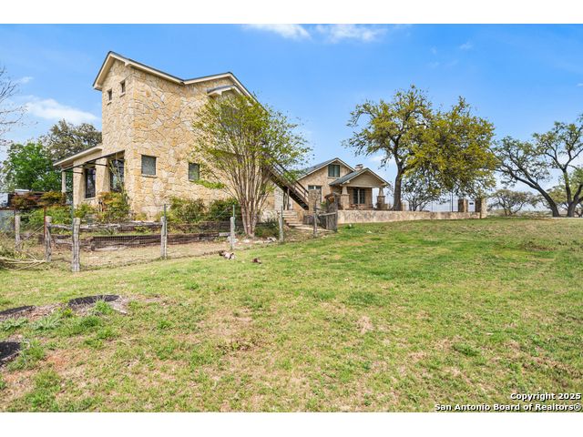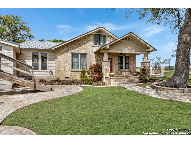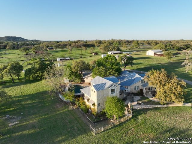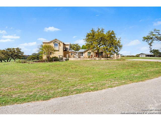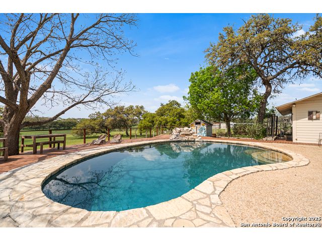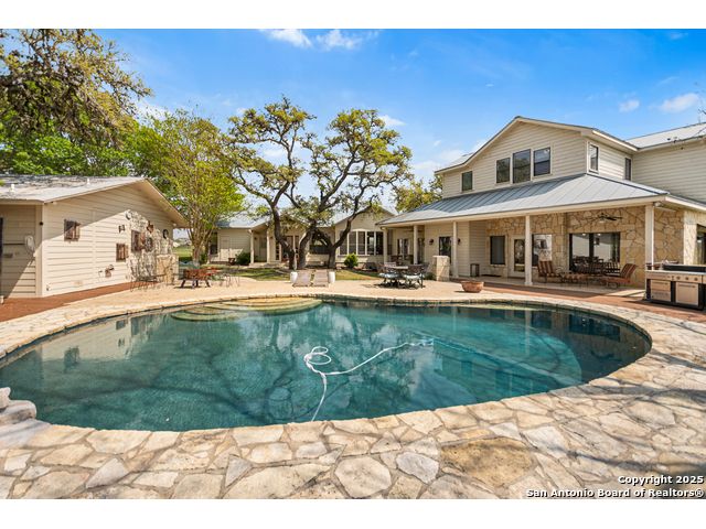 Discover a one-of-a-kind Hill Country estate on 13.62 usable acres, just four miles from the heart of downtown Boerne. Perched atop a gentle hill at the end of a quiet cul-de-sac, this 4,107 square foot property offers unmatched privacy, breathtaking sunset views, and a peaceful country lifestyle just minutes from town. Originally established by the Pfeifer family in the 1920s, the home blends the charm of the historic homestead with a thoughtfully designed modern addition. The location was hand-selected over a century ago for its elevation and natural beauty, providing cool breezes and panoramic views-especially stunning from the spacious deck as the sun sets and the land glows with warm evening light. The home was tastefully renovated circa 2005. Inside, the home features 4 bedrooms (including two primary suites with ensuite baths), 4 full bathrooms, two kitchens, two dining areas, and two laundry rooms. Whether you're hosting family gatherings, offering guest accommodations, or considering rental potential, this versatile layout delivers. Step outside to enjoy your private oasis, complete with an in-ground pool and a storage structure that's ready to be transformed into a pool house, guest suite, or creative studio. Perfect for animal lovers, hobbyists, or those simply seeking wide open space, the property is fully fenced and cross-fenced, with: Four horse pastures, Four-stall horse barn with runs, wash rack, round pen, and a fully-piped arena, Workshop (18x30 slab), RV barn with pull through doors, Goat and sheep barn, Hay barn, Six tin outbuildings. The house utilizes a water well with 12,000-gallon water storage. An additional 21st Century Primary bedroom, primary bath, kitchen, and dining room. Wildlife exemption on land, No HOA , roof on historic home is 10 years old. Elevated location, this property is NOT in county flood plain. The addition has been completely updated, and a newer master suite offers luxurious comfort with modern amenities. The roof on the historic section of the home is approximately 10 years old, and the pool decking has also been recently replaced. With no HOA, a current wildlife exemption, and fully usable land, this property is ideal as a forever home, weekend escape, multi-generational compound, or income-generating retreat. Please allow ample time for showings-this is a place you'll want to explore.