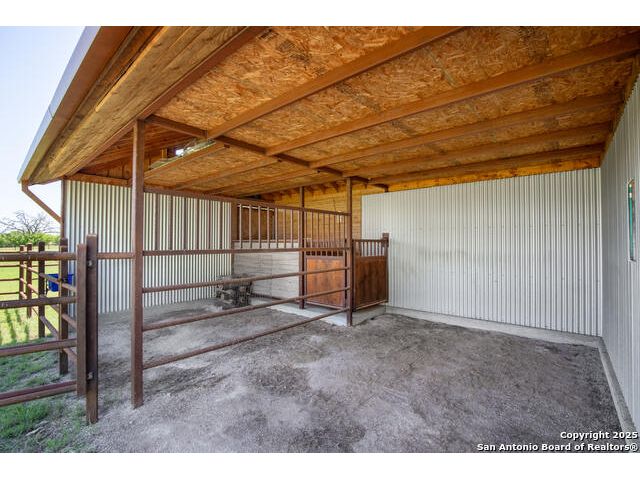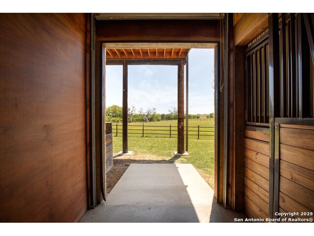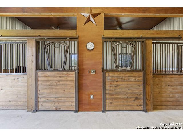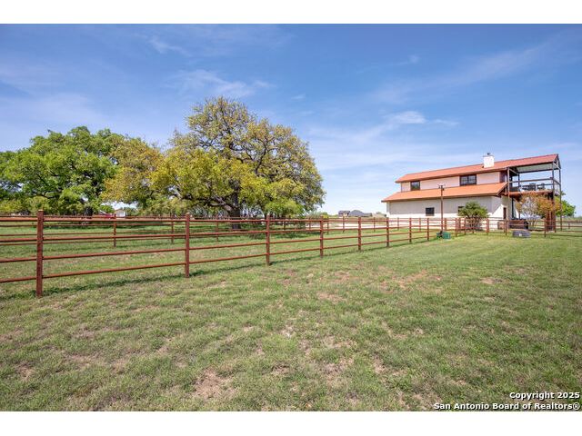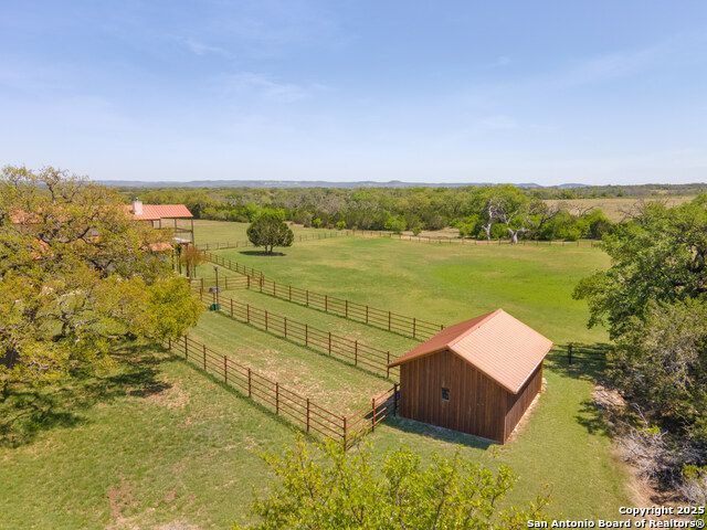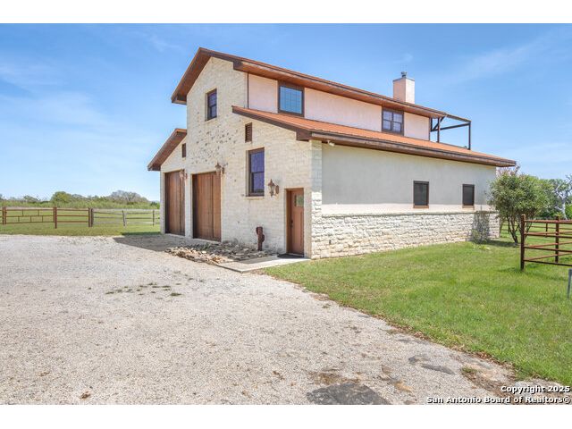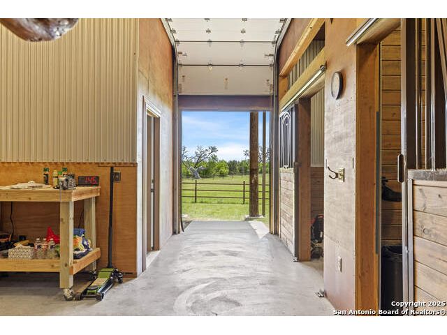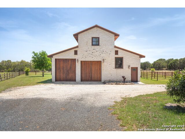 So many options with this property. In place is a lovely barndominium/horse barn which can be enjoyed as a getaway vacation home or converted to permanent home. Or if you are looking to build a home, there is a perfect home site cleared with septic and electric already in place. While you build you can enjoy the living quarters, then use them as a guest house when the main home is complete! All of this on 5 private acres, gated with huge oaks and backing up to a large completely undeveloped ranch. High speed fiber internet available! The bardominium is totally custom, wood frame with rock and stucco highlighted with western red cedar trim and double hung Pella windows. This stunning raised center features a second story living space and large deck. The main level features a combination living/horse space. Two 12x12 horse stalls, vehicle/trailer parking, tack room with sleeping loft and workshop area. The main level is exceptionally versatile with 3 large overhead doors that transform it into an open breezeway suitable for entertaining or just hanging out with your horses and parking your toys. Property is partially fenced with pipe and split cedar rail. Your horses will enjoy a beautiful 16'x24' horse shelter featuring 2 large stalls and adjoining pipe fenced paddocks. Shelter also has space for feed and attic storage. Services are all underground with automatic horse waterers in stalls and paddocks. Three horses permitted with a dedicated bridle trail for riding with private access from the back of the property. Bridlegate is a beautiful gated subdivision with a long line up of amenities: Two swimming pools, tennis court, disc golf, river park, riding arena, bridlepath, community center, workout facility and so much more. Enjoy a fun, friendly small town only one hour from San Antonio.