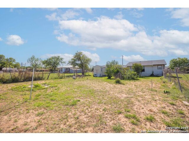 This is a beautiful corner lot located in walking distance from Pearsall Junior High school. The home is move in ready, and has a spacious fenced in back yard with a storage shed. Could be converted to a laundry room for more living space in the home. Adjacent to the home is a large area which could be used to expand or could be another lot. Close proximity to the 2 major roads crossing through Pearsall. 0.3 Miles from the 581 Spur. Which leads you to I-35 within 2.5 miles. Also 0.3 miles from FM-140.