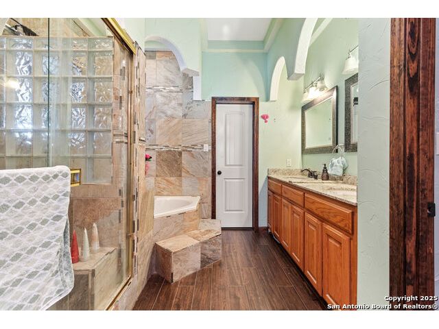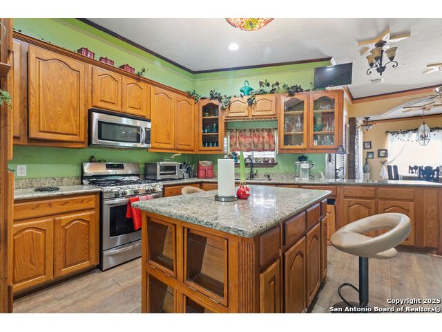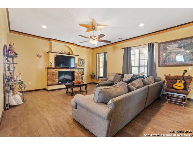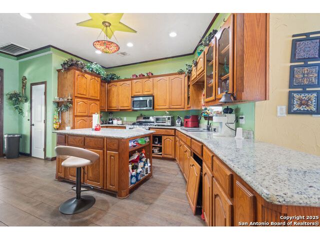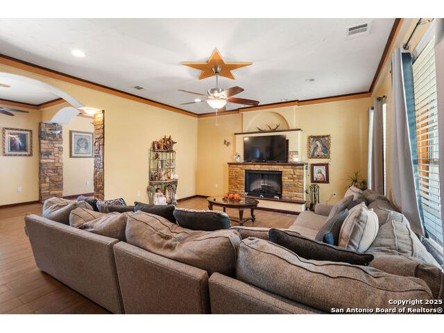Nestled on a sprawling 2-acre expanse, this exquisite home combines charm, space, and comfort. With 5 generously sized bedrooms and 4 gorgeous baths, there's amble room to accommodate family, guests, and every cherished moment. The property offers a serene retreat, just outside of 410 you can be surrounded by nature yet just 25 minutes from downtown San Antonio! Whether you're hosting gatherings in its spacious interiors or enjoying tranquil evenings outdoors, this home is the perfect balance of comfort with its gorgeous outdoor patio. Attached is a extra living space which hosts a bathroom and a small kitchen with its own unique private entrance. Come see it today!