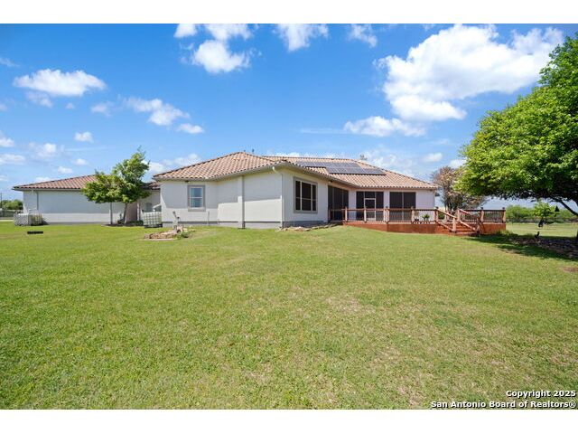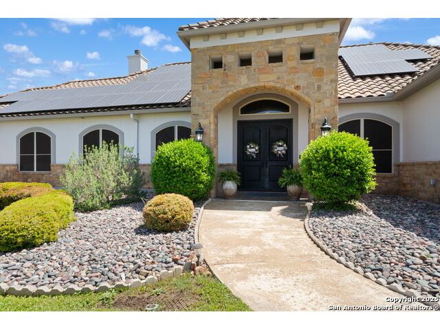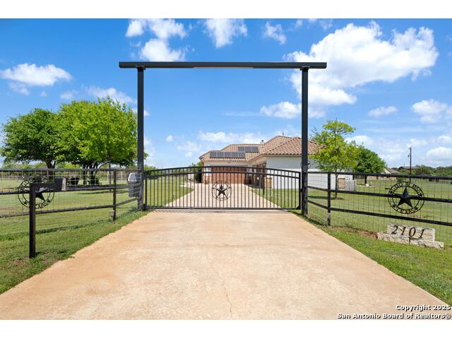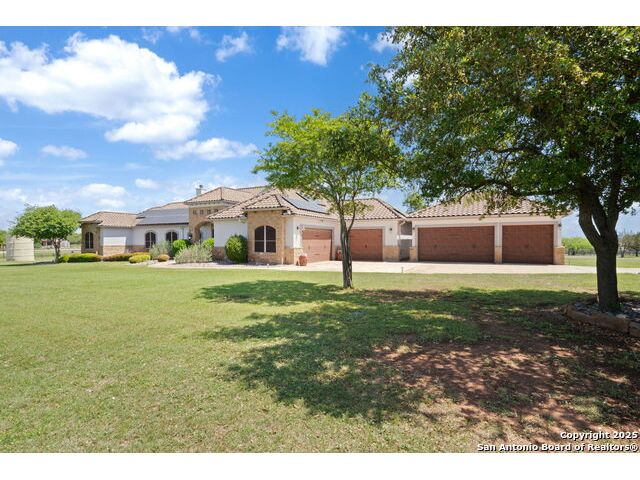Private Texas Hill Country Estate on 3.259 Acres of manicured land. This single story custom home offers 3,566 ft of living space, 4 bed/ 3.5 baths, private well, full perimeter pipe fencing with multiple gates for entrances / exits, solar AND geo thermal energy. Spacious bedrooms, open floor plan, tall ceilings, 1k ft of covered / screened in patio with outdoor grill / kitchen. Multiple rain water catchment systems, irrigated yard, mature trees, detached 2 car garage / shop with power. Close proximity to San Antonio International , medical , shopping , grocery stores and multiple lakes. This is a great opportunity!