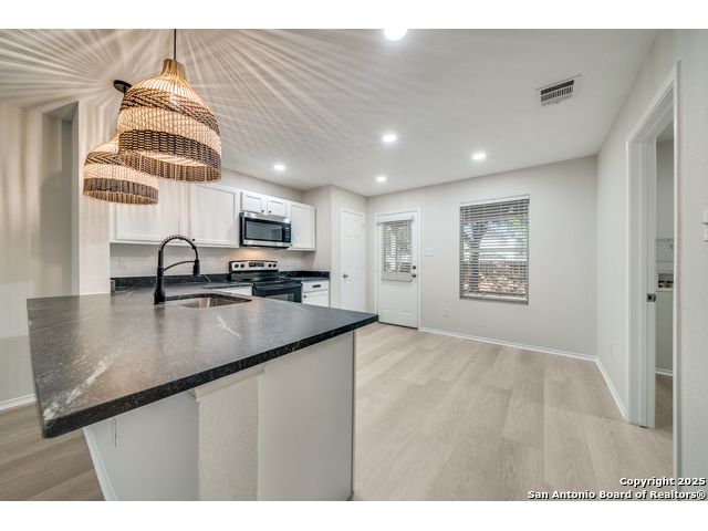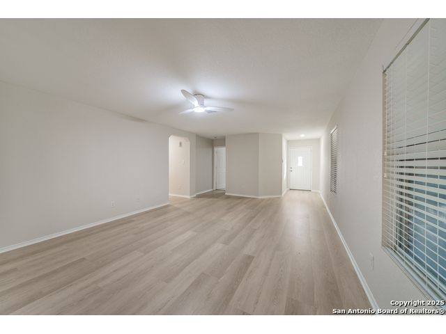 Charming Single-Story Home with Spacious Backyard This well-maintained single-story home offers a welcoming open layout with laminate flooring throughout the main living areas. The bright and airy living room flows seamlessly into the dining area and kitchen, making it perfect for everyday living or entertaining guests. The kitchen features a modern electric range, built-in microwave above the stove, stylish lighting, and clean countertops. Enjoy the comfort of tray ceilings that add a touch of elegance, along with a spacious bathroom that includes a shower/tub combo. Step outside to a covered back patio that overlooks a generous backyard-perfect for outdoor gatherings or relaxation. This clean and move-in ready home is ideal for first-time buyers or anyone looking to downsize without sacrificing comfort or yard space.