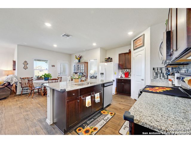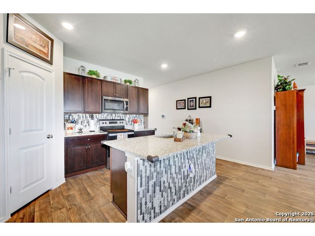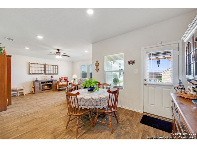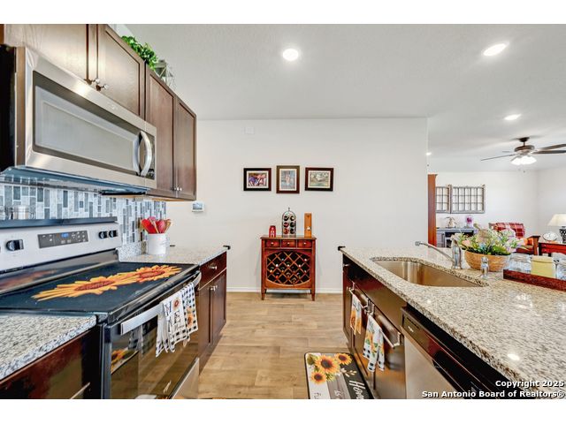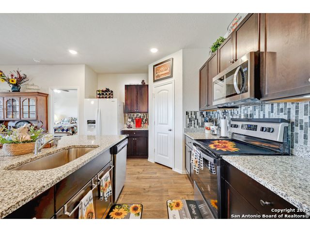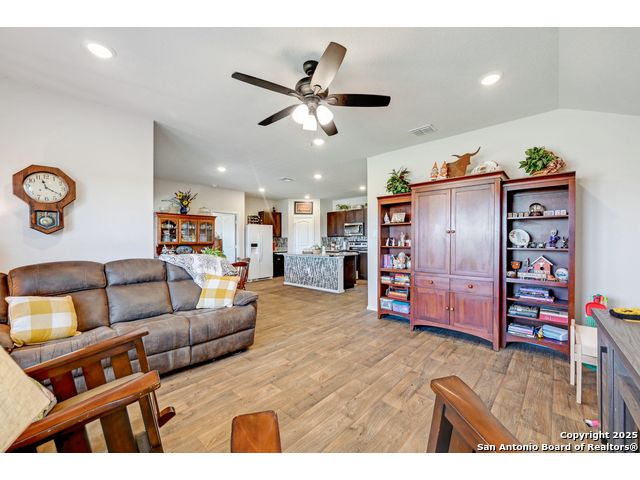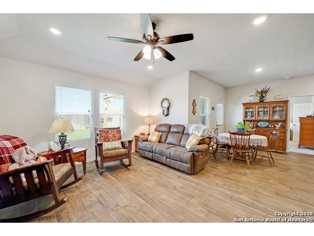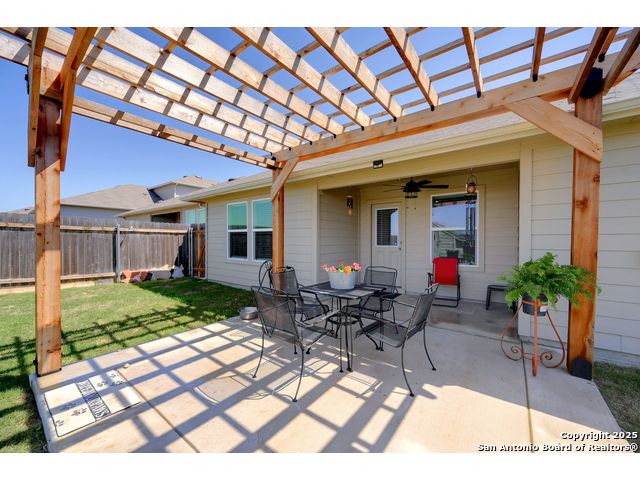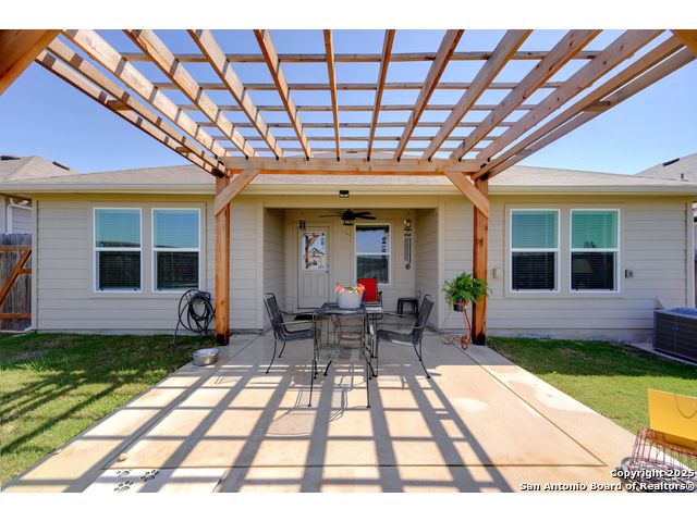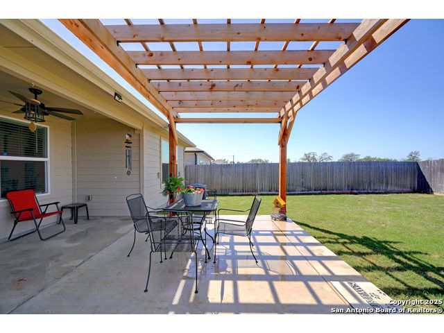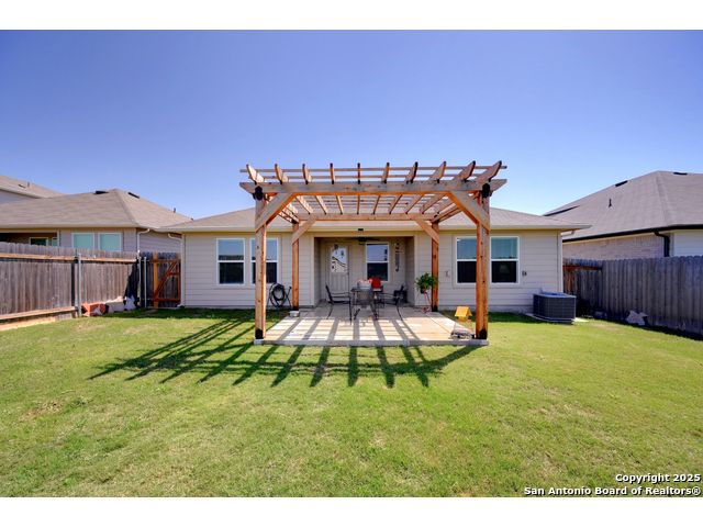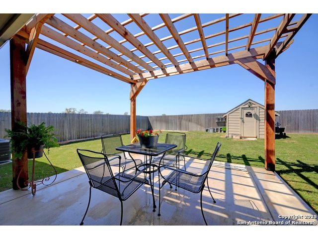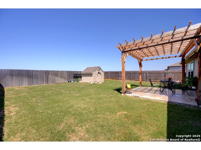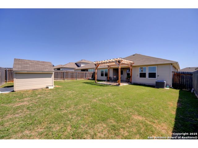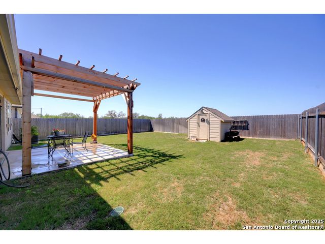 NEW: Up to $4,000 Lender Credit towards closing costs available exclusively from Cornerstone Home Lending. Must close with Team Cummins to receive credit for closing. Conditions apply. PLUS: Seller offering $5,000 towards closing costs! Welcome to this stunning new single-story home featuring an open-concept design that seamlessly connects the kitchen, dining, and family areas-perfect for everyday living. The gorgeous kitchen boasts granite countertops, an oversized island, and a chic upgraded backsplash for a modern touch. The primary suite includes a luxurious walk-in shower and a spacious walk-in closet. Throughout the home, blinds provide added privacy, and upgrades include a water softener, a full alarm system, and a convenient two-car garage. Step outside to your private outdoor oasis-an extended patio with a brand-new pergola, ideal for outdoor dining, relaxing in the shade, or entertaining guests. There's also a practical shed for extra storage. Living in Seguin offers the charm of a close-knit community with easy access to outdoor recreation and nearby cities like Austin and San Antonio. Enjoy community amenities like a pool with a beach entry, a scenic lawn, BBQ grills, and a playground-perfect for year-round fun. This move-in-ready home combines modern comfort, stylish upgrades, and inviting outdoor spaces for effortless indoor-outdoor living.