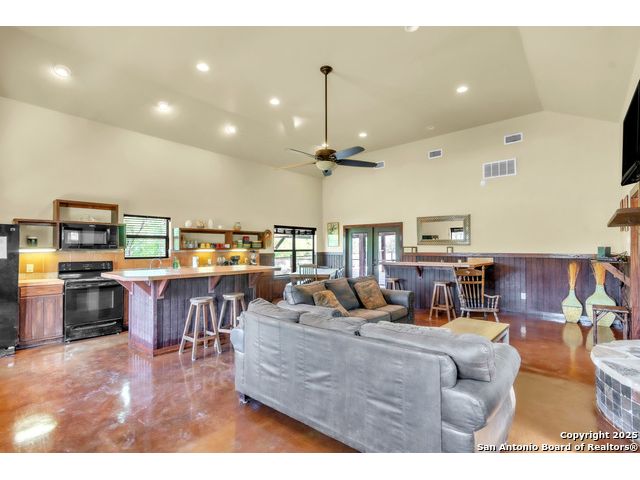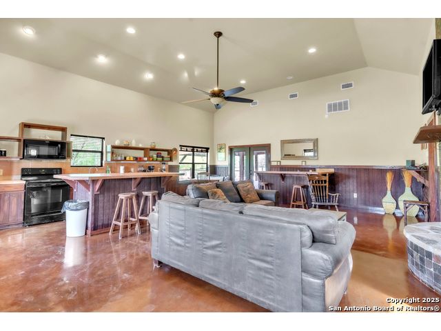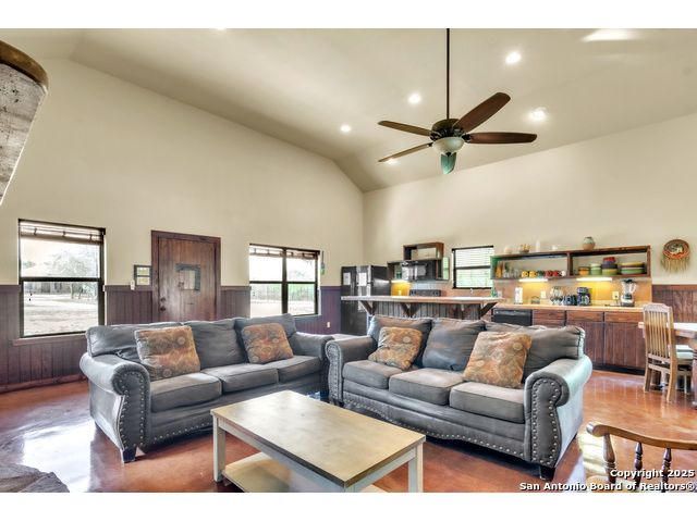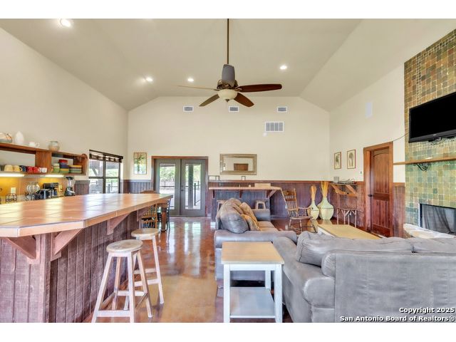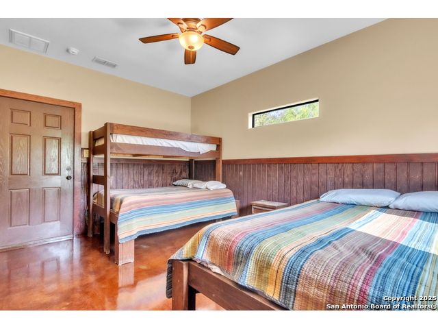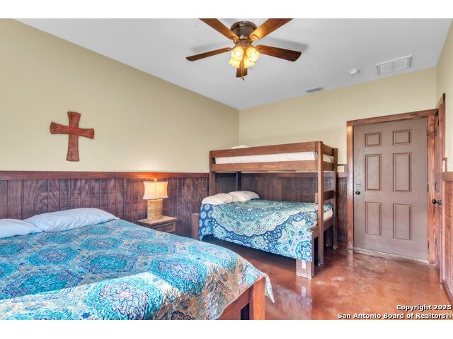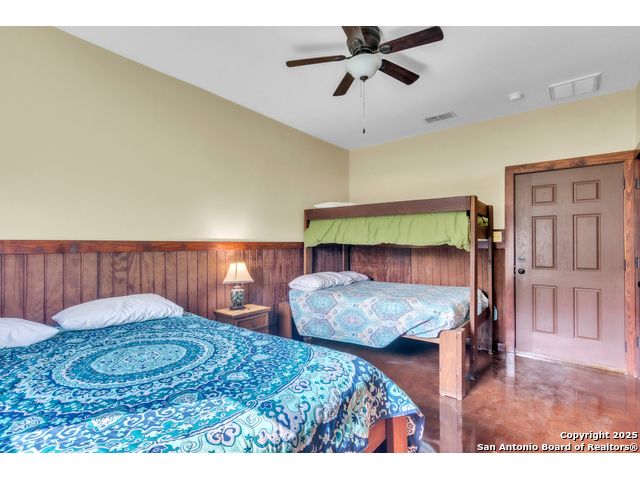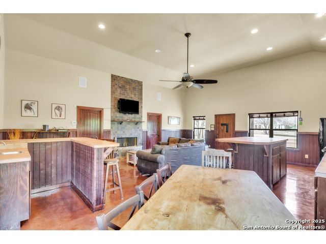 Discover this stunning 4-bedroom, 4.5-bath home, currently part of a successful rental pool with a strong rental history. Step inside to beautiful stained concrete floors that set the tone for the home's unique character. The spacious living room boasts vaulted ceilings, a cozy fireplace, and a built-in bar-perfect for entertaining. The open-concept kitchen and dining area features a large island that seamlessly connects the spaces, creating a welcoming flow throughout. Designed with privacy in mind, the home includes a separate wing with four en suite bedrooms. Outside, enjoy resort-style living with a beautiful patio and a fenced pool-ideal for relaxing or hosting guests. Financials available upon request! Schedule an exclusive showing today!