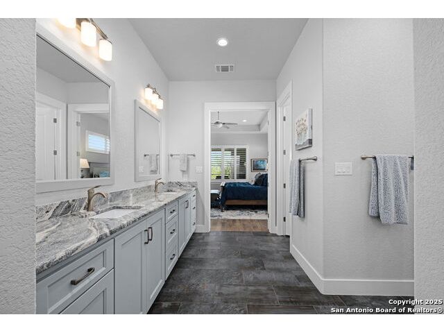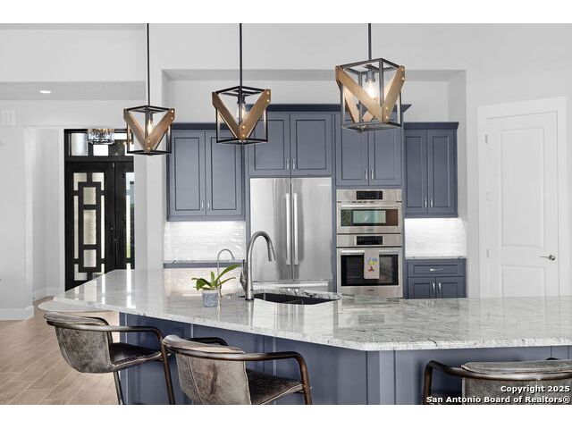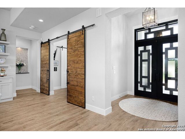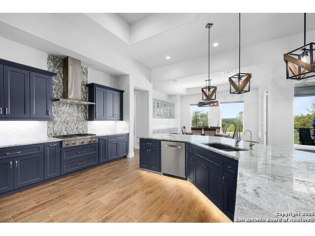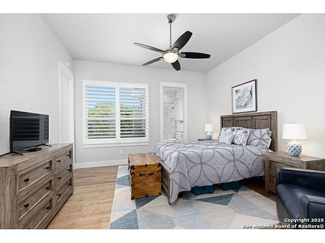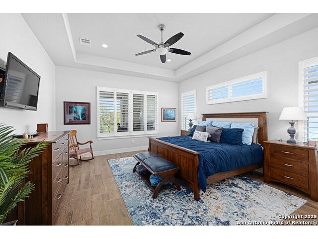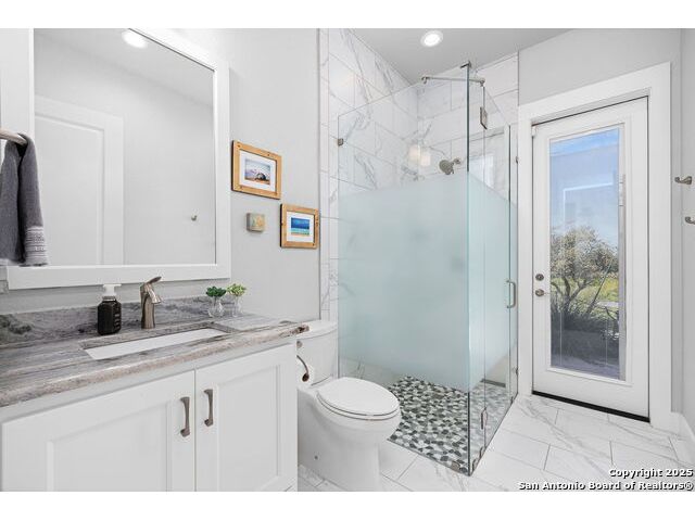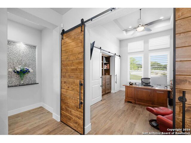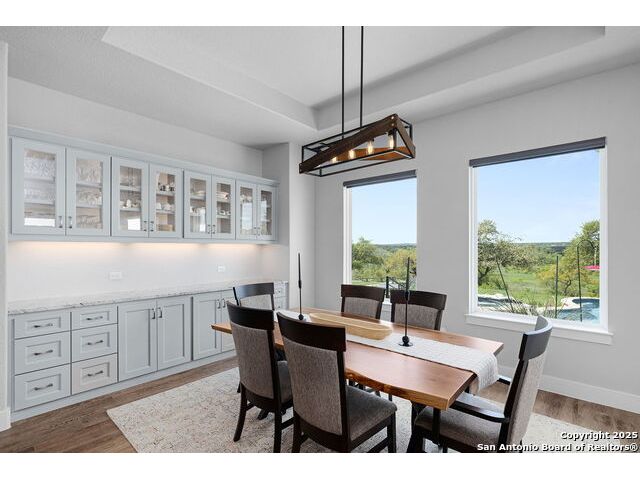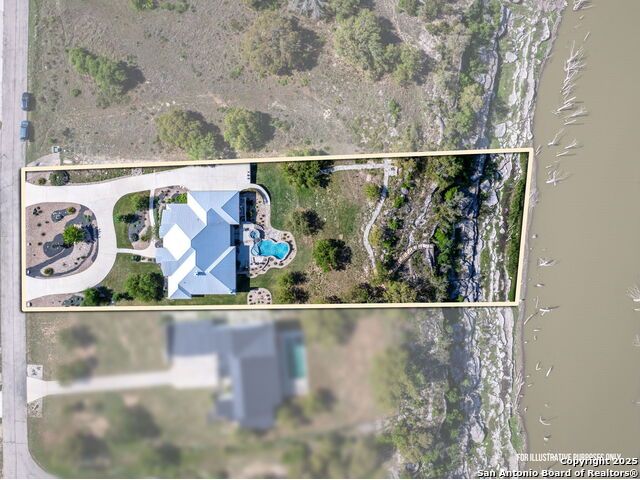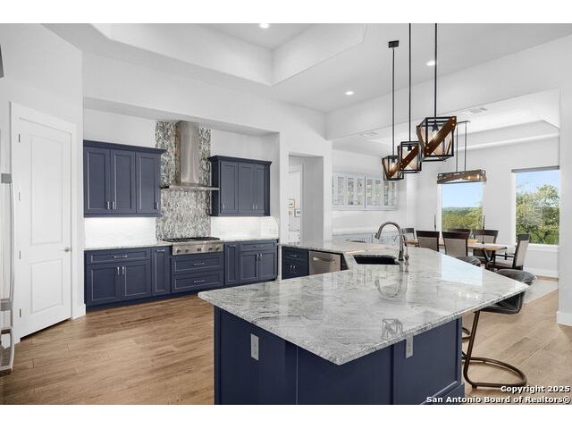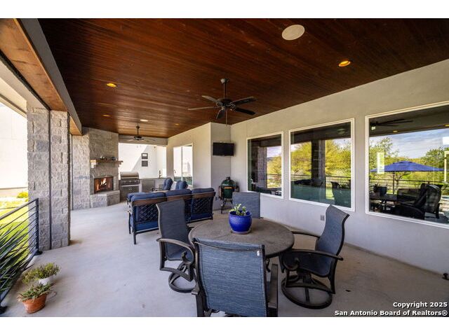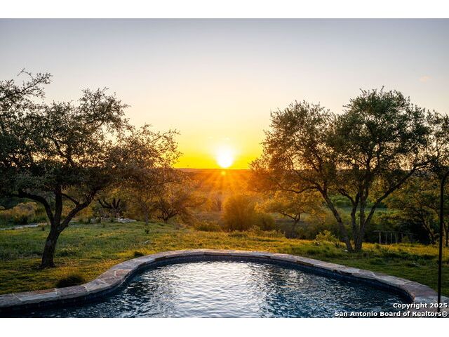Stunning Home in Mystic Shores - A Private Oasis on 1.11 Acres Welcome to your dream retreat on the banks of the Guadalupe River in the highly sought-after Rio Central section of Mystic Shores in Spring Branch, Texas. This beautifully designed 3,308 sq. ft. home features 4 spacious bedrooms, 4 full bathrooms. Inside, the open-concept living space is ideal for entertaining, featuring a striking gray slate stone fireplace, built-in shelving, and a coffered ceiling with cedar beams that add warmth and character. The gourmet kitchen is a chef's delight with high-end appliances, a six-burner gas cooktop, and an adjoining dining area complete with built-in butler's cabinetry. Enjoy breathtaking views of your private backyard oasis, where a resort-style pool with hot tub and waterfall awaits. The oversized covered patio includes a built-in outdoor kitchen and fireplace-perfect for dining and relaxing by the fire year-round. A full bathroom with direct pool access adds convenience. The primary suite is a luxurious haven, offering an oversized walk-in shower, dual vanities, and his-and-hers walk-in closets. Additional bedrooms and the dedicated office space feature elegant wooden shutters, creating both style and privacy. Complete with a large circular driveway for ample guest parking, this property blends sophistication with natural beauty and comfort. Don't miss this rare opportunity to own a slice of Texas Hill Country paradise.