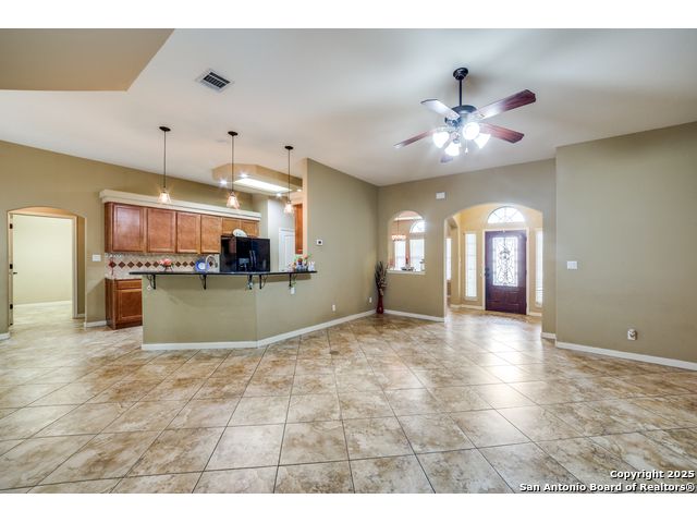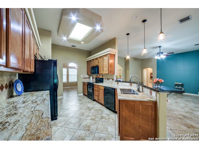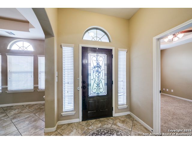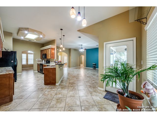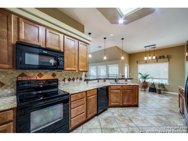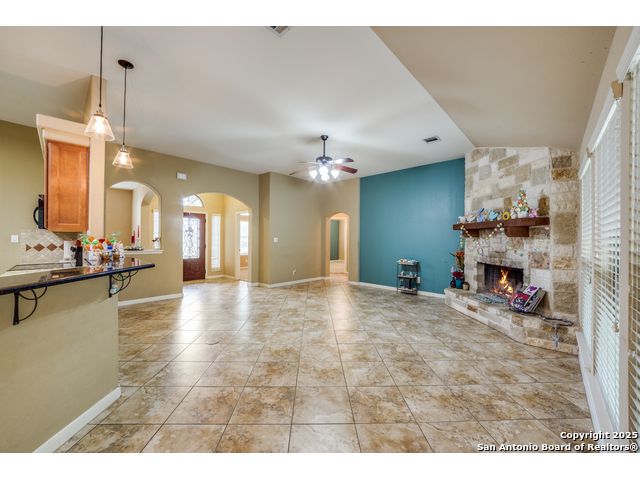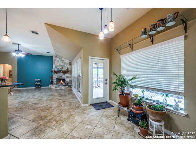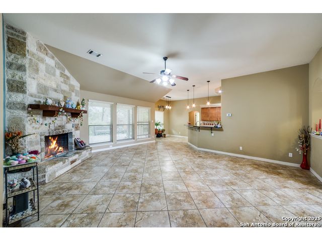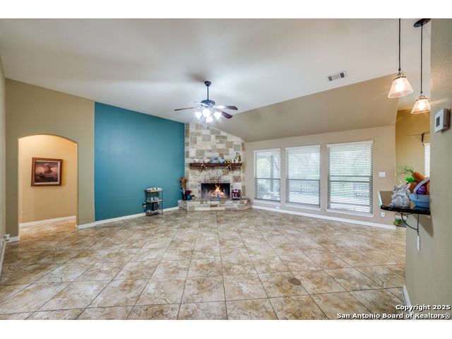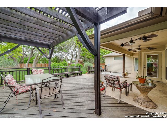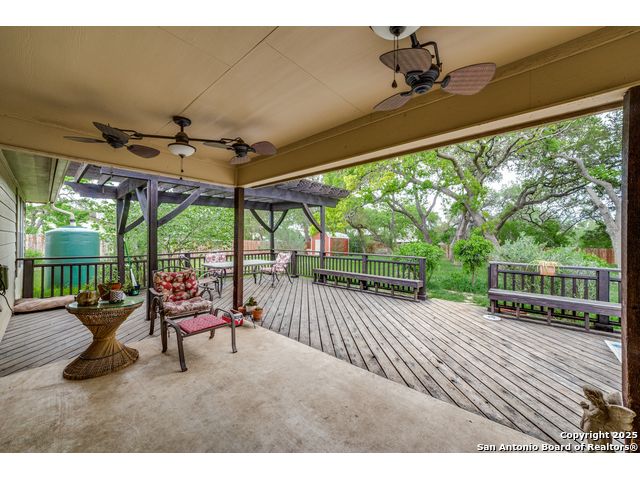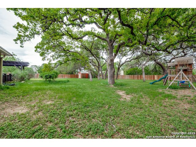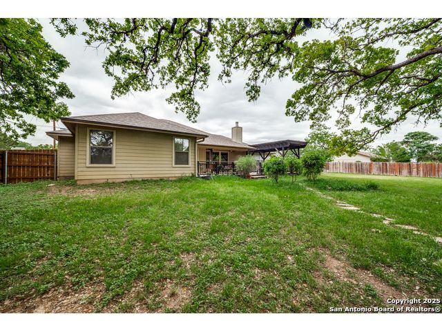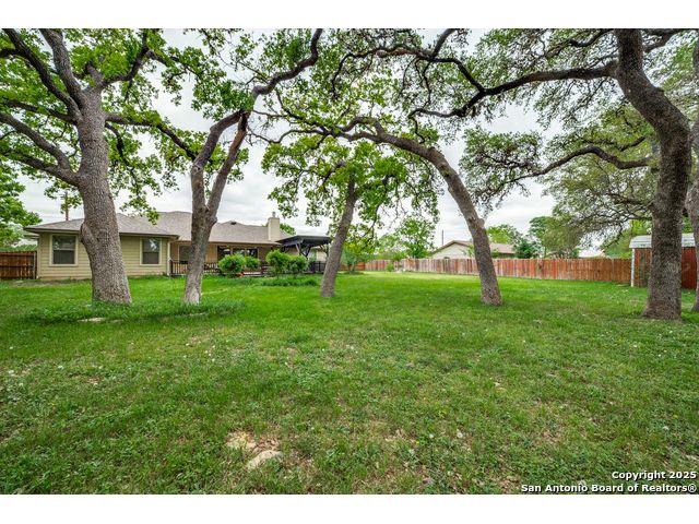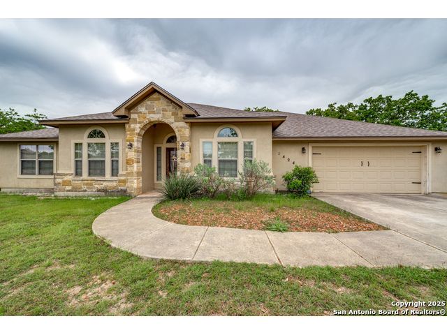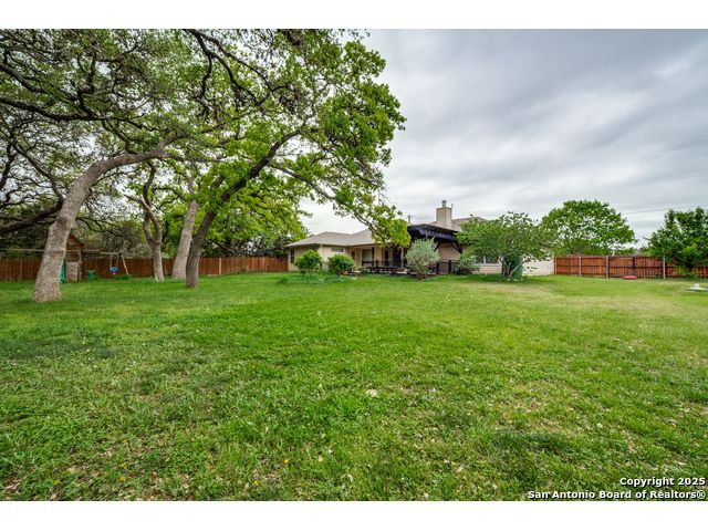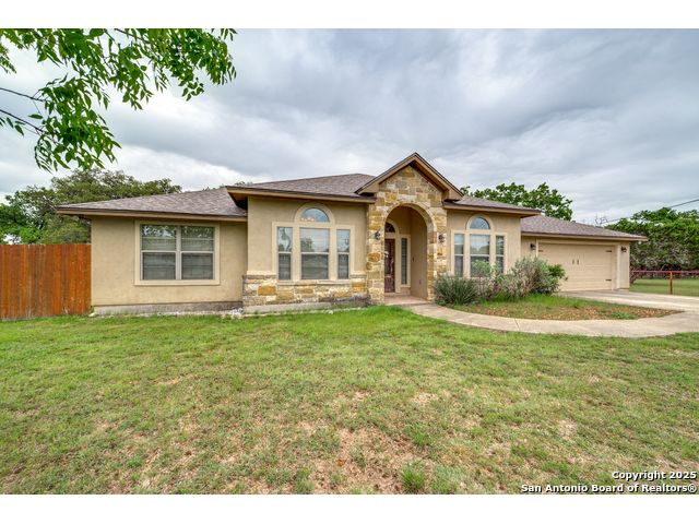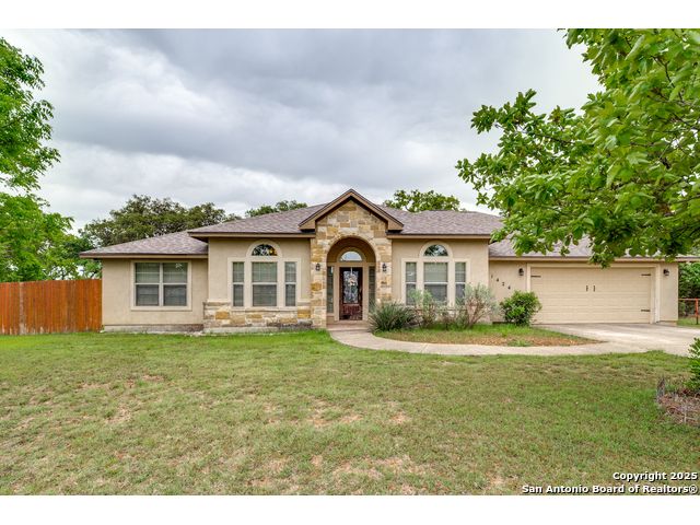 Nestled on a spacious 0.5-acre lot, this exquisite earth-toned rock home perfectly blends rustic charm with modern comfort. Step inside to soaring ceilings and an open floor plan that welcomes natural lighting throughout. This 4-bedroom, 2-bath home offers both functionality and style, featuring granite countertops in the kitchen, a formal dining area for special gatherings, and ceramic tile flooring throughout the main living spaces. The oversized primary suite is a true retreat, complete with outdoor access and plenty of privacy. Step outside and unwind in your backyard oasis, shaded by mature trees and perfect for entertaining with a spacious deck ideal for warm summer nights. With numerous upgrades throughout, this property is a must-see-be sure to ask for the full feature list! Don't miss your chance to own this piece of Hill Country paradise-schedule your showing today!