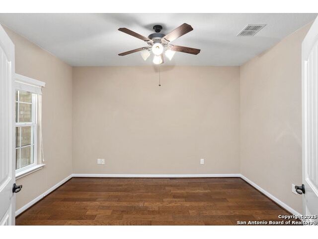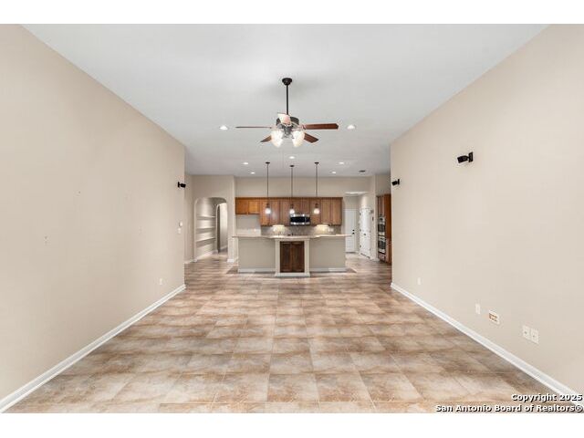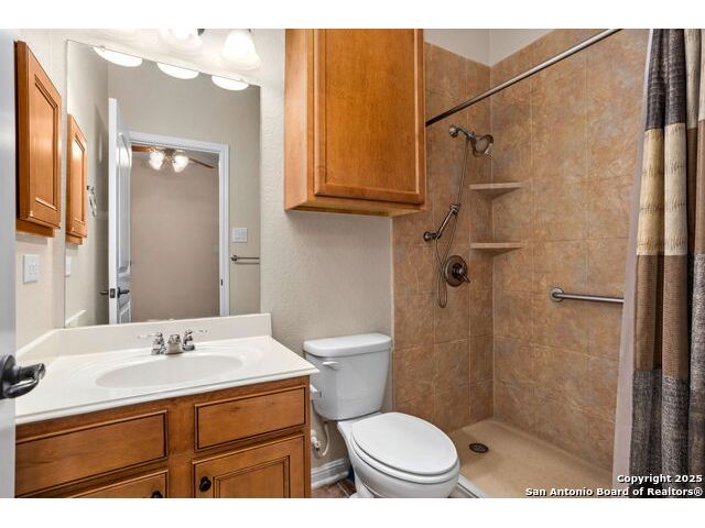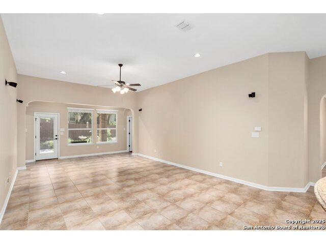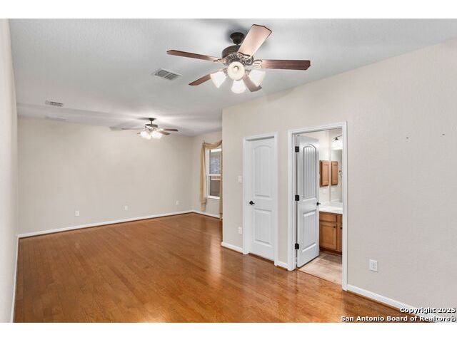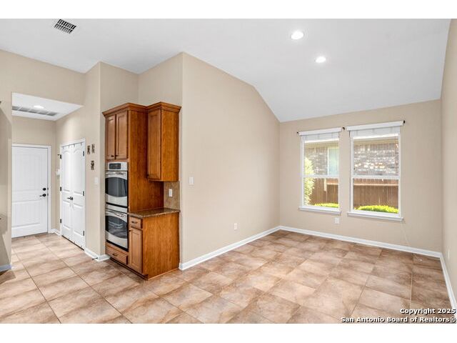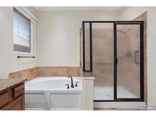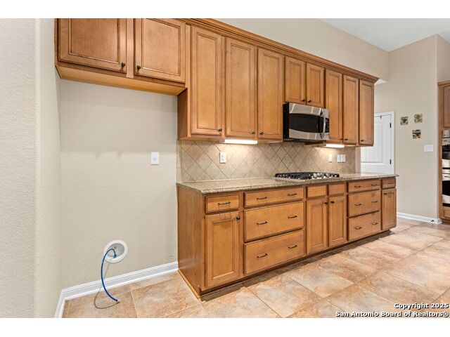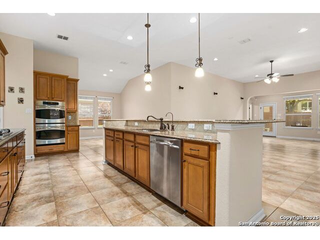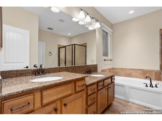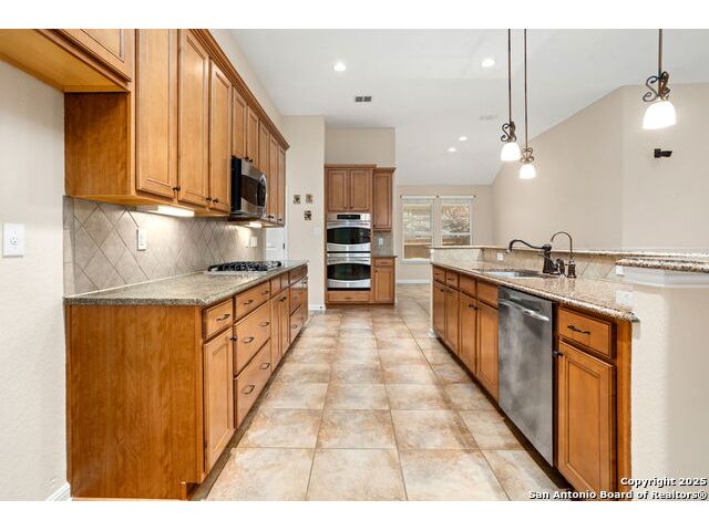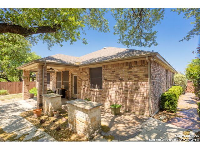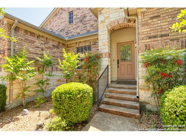 Step into comfort, style, and convenience in this beautifully maintained 4 bedroom, 3.5 bath single story home located in the exclusive gated community of Prospect Creek at Kinder Ranch. With two spacious primary suites, including one with a zero threshold walk-in shower, this home is ideal for multi generational living or offering guests their own private retreat. At the heart of the home, you'll find an open concept living area featuring a stunning granite island, custom wood cabinetry, and a walk-in pantry that's perfect for the family chef. The dedicated home office makes working from home both efficient and comfortable, while the oversized laundry room provides room for an extra refrigerator and plenty of storage. Step outside to your covered patio surrounded by lush landscaping, an ideal space for morning coffee or peaceful evenings. Enjoy scenic walking paths and all the natural beauty Kinder Ranch has to offer right from your doorstep. The three car tandem garage includes built-in storage, dual 50 gallon water heaters, and a water softener, providing thoughtful convenience and peace of mind. This move in ready home offers incredible value in one of the most desirable neighborhoods in the area. Schedule your private showing today and see firsthand why this Kinder Ranch home is even more impressive in person.
