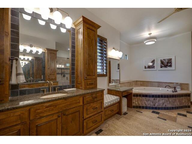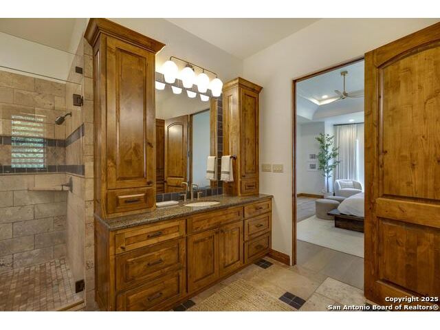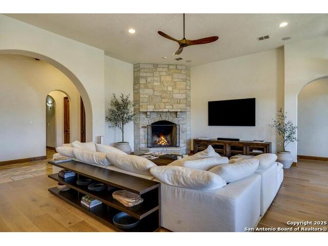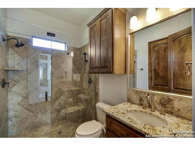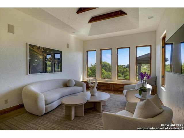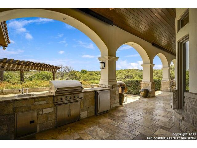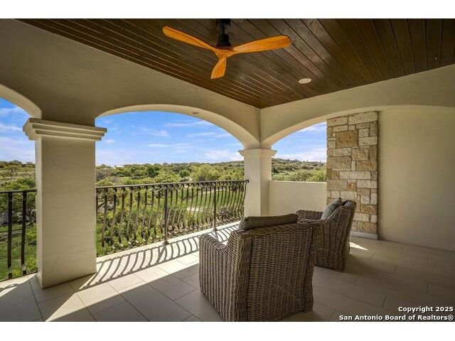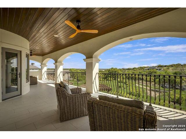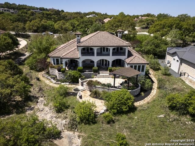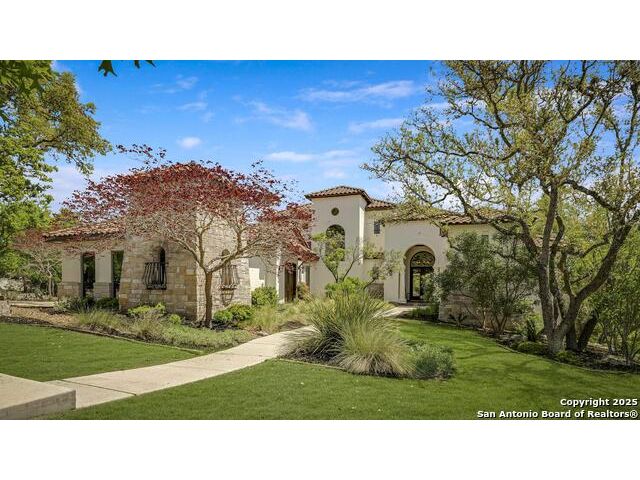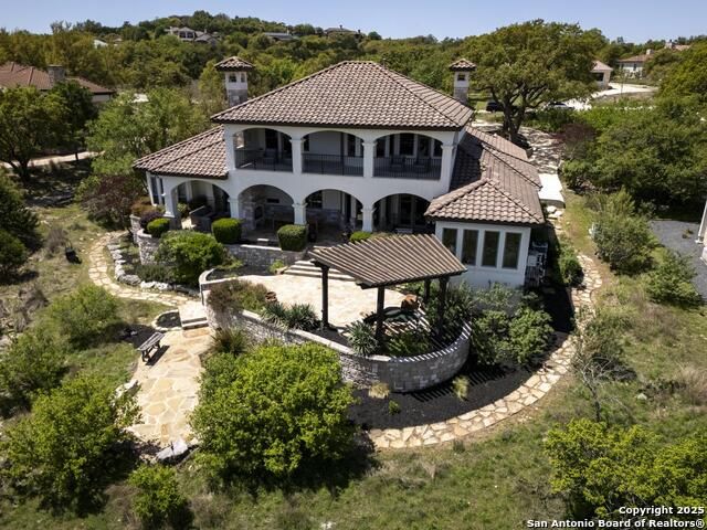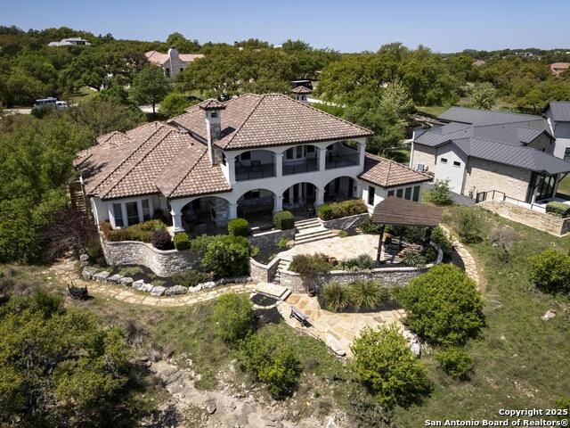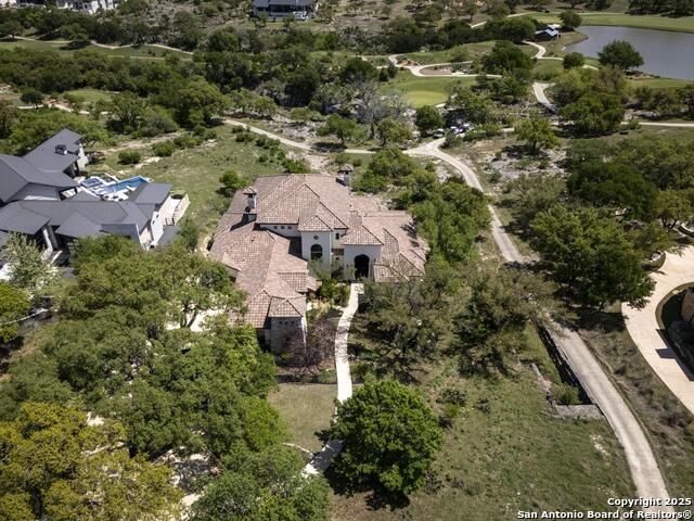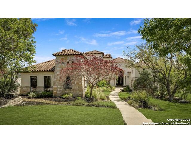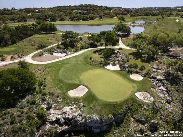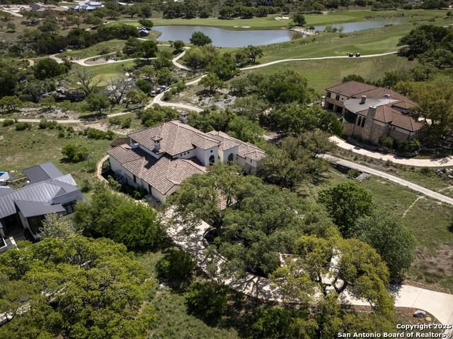 *This home has a FULL MASTER GOLF MEMBERSHIP available* Welcome to this breathtaking home perfectly positioned along the 16th green of the prestigious Jack Nicklaus Signature Golf Course, nestled within the sought-after community of Cordillera Ranch. The 16th hole of this course was voted the most beautiful in Texas! Showcasing unparalleled views and timeless design, this home blends luxury, comfort, and entertainment in a way that's truly unforgettable. As you step through the front door, you're immediately greeted by soaring, hand-crafted ceilings and an elegant separate dining room-setting the tone for the craftsmanship found throughout. To the left, an open-concept layout unfolds into a spacious living room, anchored by a dramatic floor-to-ceiling stone fireplace. The adjacent gourmet island kitchen is a chef's dream, featuring custom cabinetry, exquisite quartzite countertops, a Sub-Zero refrigerator, gas cooking, dual sinks, and an ice machine. Between the kitchen and living area, a cozy breakfast nook invites you to enjoy casual meals with views that stretch across your outdoor oasis. Designed for entertaining, the game room includes a bar area and expansive windows that frame the lush green landscape. Just down the hall, a comfortable guest suite with a full bath offers privacy and luxury for your visitors. Additional main-level amenities include a temperature-controlled wine cellar, a stylish half bath, a generous laundry room, and a dedicated office. On the opposite side of the home, the private primary retreat awaits-complete with a serene sitting area, a spa-inspired en suite bath with dual vanities, a garden tub, a glass walk-in shower, and an oversized walk-in closet. Upstairs, two additional bedrooms, along with a flex room, are thoughtfully separated by the game room, which opens to an upper-level balcony-an ideal spot to relax and take in the panoramic views of the golf course. The outdoor living areas are equally impressive. The expansive lower patio is designed for year-round enjoyment with a built-in gas grill, a double-sided floor to ceiling fireplace that warms both seating areas, and a luxurious hot tub tucked beneath a charming pergola a with a cascading rock waterfall. Completing this exceptional home is a spacious 3-car garage and custom detailing throughout that speaks to quality and sophistication at every turn. This home is more than a residence-it's a lifestyle. Come experience the best of Cordillera Ranch living.