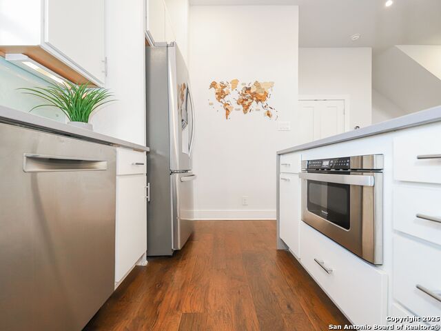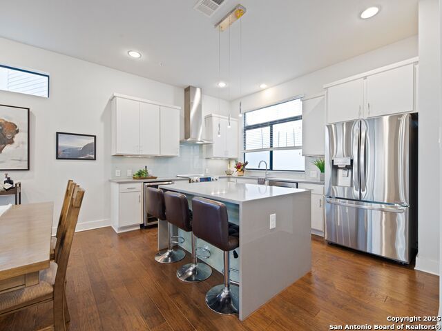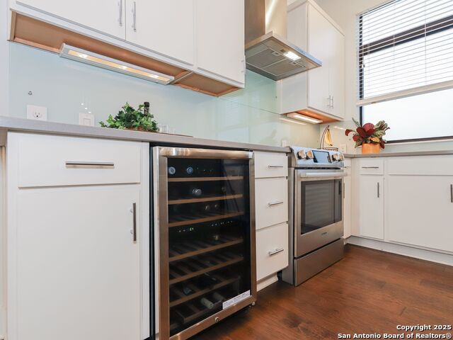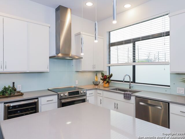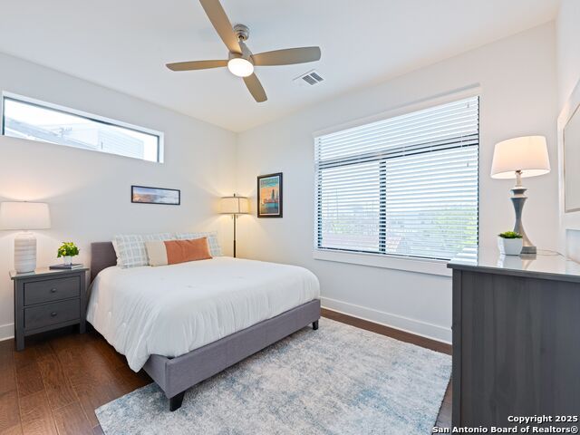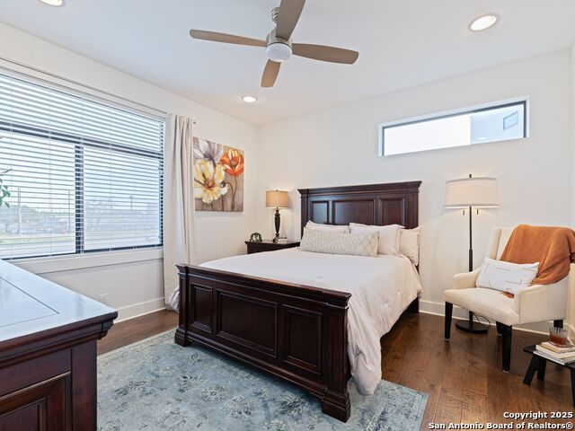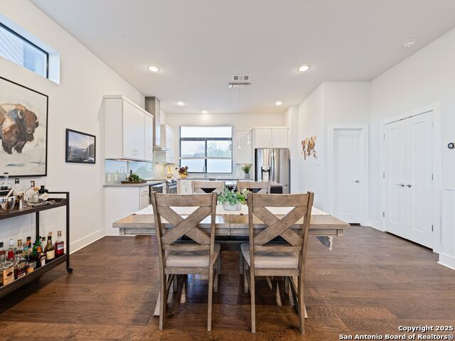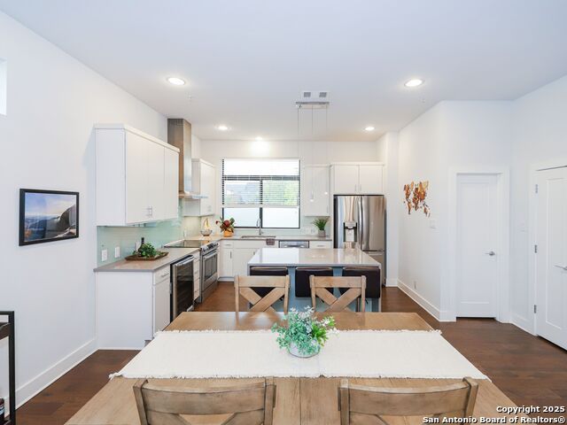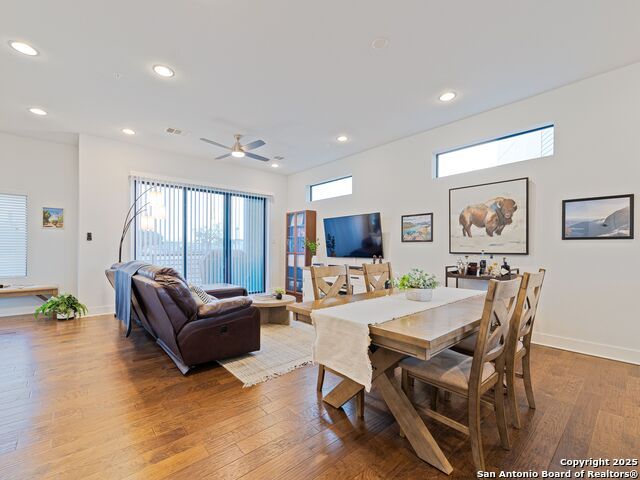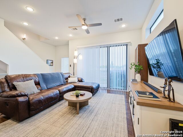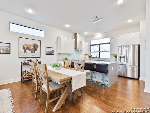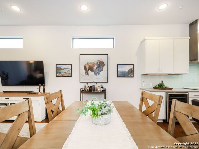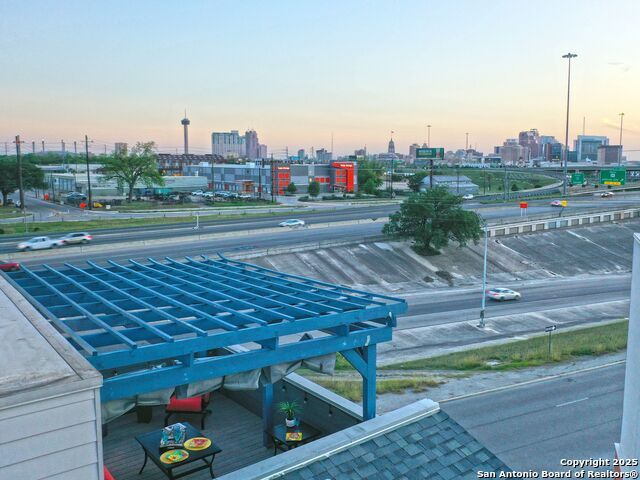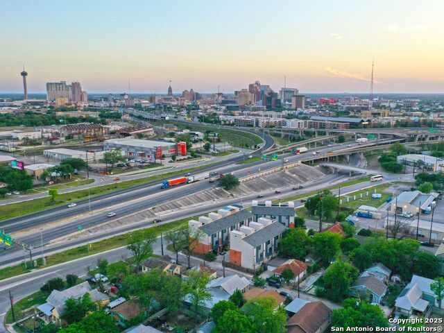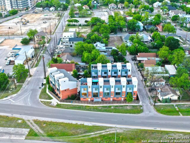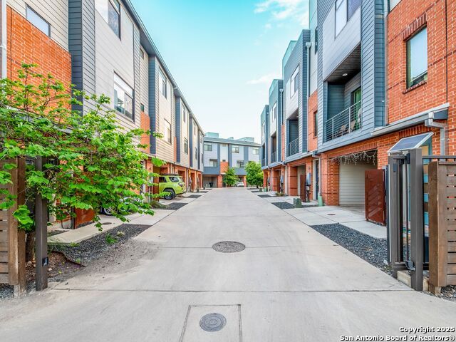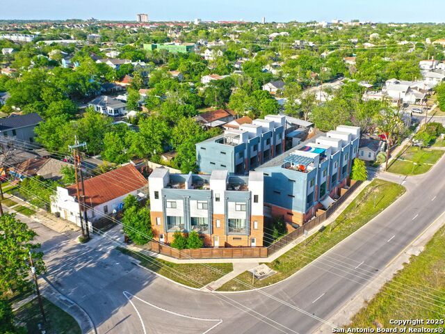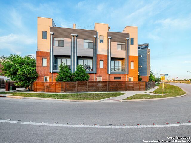 Step into your new city home, just a short walk from San Antonio's exciting new BESA development. This area is set to become a top spot for great shopping and restaurants, and you're also just a few steps from The Pearl and downtown. This townhome is in an improvement district, which means you can get a special, lower financing rate. Unlock the lifestyle of modern luxury and savvy investment. Beautiful hardwood floors flow throughout the home, leading you from the welcoming first-floor foyer to the sun-drenched living spaces. High ceilings and the unique advantages of a corner unit, with more windows for increased natural light, create an open, airy ambiance. The chef's kitchen features sleek quartz countertops, a modern tile backsplash, a spacious walk-in pantry, and a suite of premium appliances, including a Bosch dishwasher, microwave drawer, GE electric range, and a wine refrigerator. Enjoy morning coffee on your 2nd-floor balcony or host unforgettable evenings on your private rooftop patio. This homeowner-improved space features a custom pergola and offers stunning views of the downtown city. The enclosed backyard, with direct side and garage access, provides a convenient, pet-friendly, and private outdoor space. This home is part of an intimate, 12-unit complex NOT in a condominium regime, the owners manage the HOA, ensuring a well-maintained community. Two dedicated parking spaces (a one-car garage and one covered space), plus four additional guest parking spaces for visitors. This is a rare chance to own a piece of San Antonio's future, live in a beautifully designed home with a short commute to Fort Sam Houston, downtown, and the Pearl. The seller is motivated and open to contributing towards closing costs with an acceptable offer. Schedule your private showing!