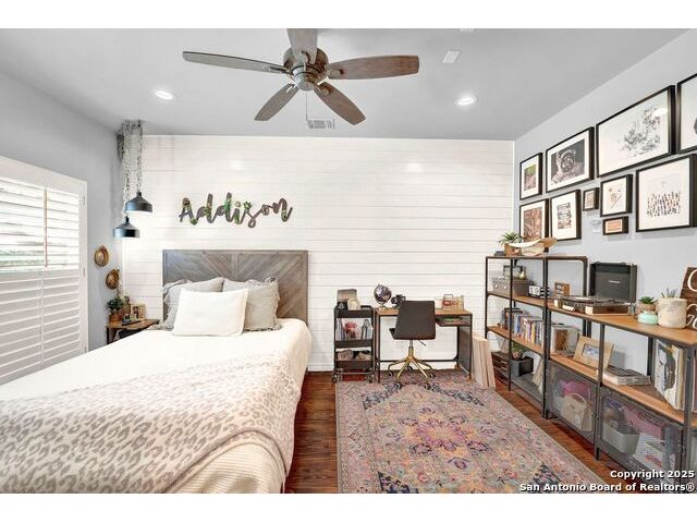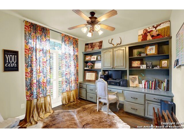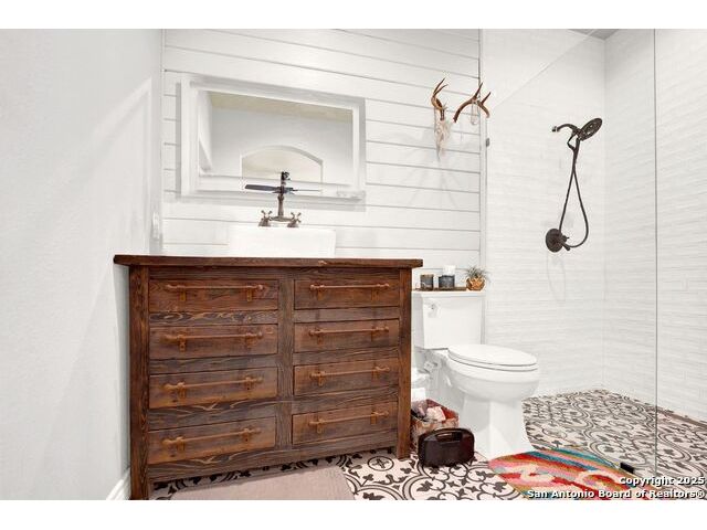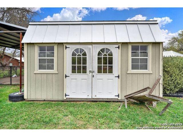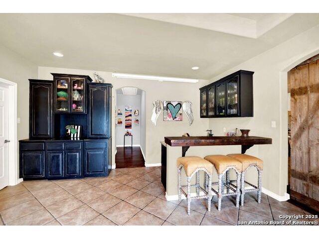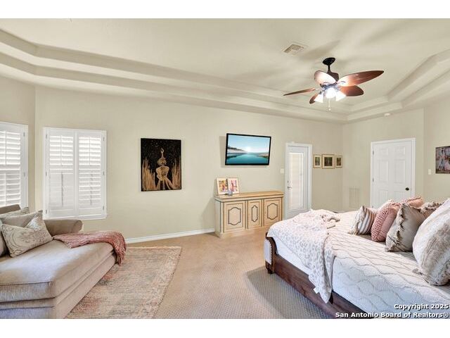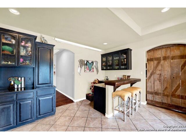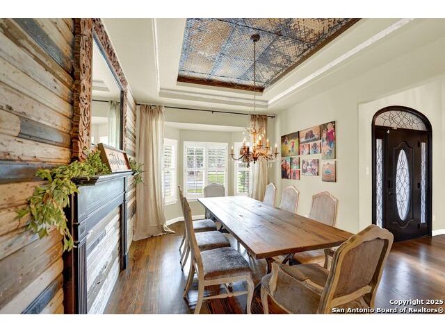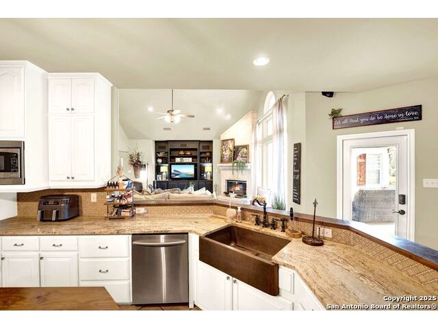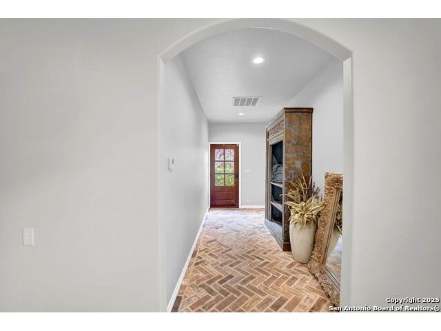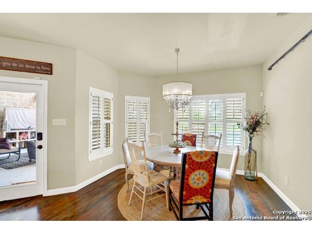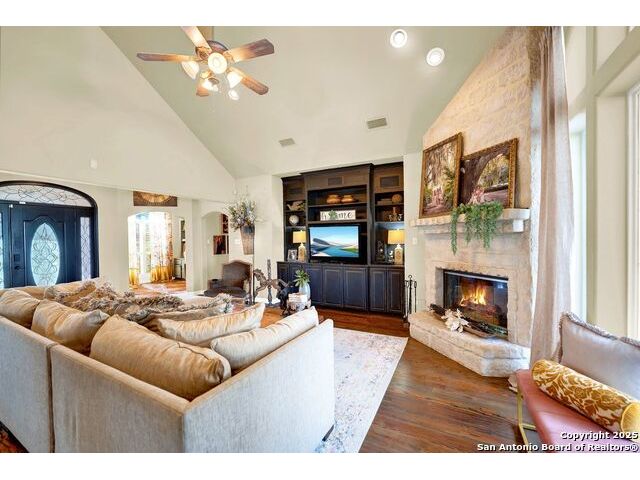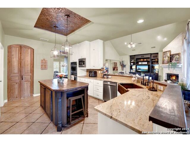 Hill country style beauty just north of downtown Hondo, TX on an exclusive cul-de-sac! Nestled in the gorgeous Kollman Oaks neighborhood, this one-story estate is situated on a 1.3-acre oversized lot with backyard country views. The state-of-the-art backyard is a dream with majestic oaks, a huge custom swimming pool and oversized attached spa, tanning deck, newly poured concrete patio space, a stucco gas outdoor fireplace and so much more! Enjoy a "pool room" which opens to the pool area and has an outdoor bathroom and approximately 300 sq ft of space! Where rustic meets elegance, inside this 3800+ sq ft residence you will find an open concept with two eating spaces, an office open to the living room and a second living space off of the main space! With antique hardwood floors, high ceilings, floor to ceiling rock fireplace and plantation shutters, the style of the home is timeless. With two owner's suites and two additional bedrooms with a jack and jill bathroom, this 4 bedroom, 3.5 bath floor plan is extremely functional. The laundry room is massive and can double as a craft room or butler's kitchen and leads out to the mud room which boasts a gorgeous brick floor. Some extras include a water softener, in wall vacuum system, a gated driveway, new metal roof, new landscaping, carport for boat/RV, stained driveway and a detached two car garage. Enjoy small acreage living just minutes from all of the conveniences of town!