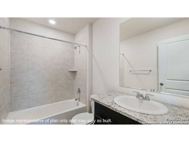Welcome to The Emma, a two-story home located in Redbird Ranch in San Antonio, TX. This floor plan offers 2 classic exteriors, 2-car garage, and a full yard landscaping and irrigation package, ensuring that your home looks it's best every single day. Inside this 3 bedroom, 2.5 bathroom home, you'll find 1700 square feet of living space. The entry opens to grand family room before flowing into the kitchen and dining area with an open floorplan concept. The gourmet kitchen includes quartz counter tops, shaker style cabinetry, stainless steel appliances, large breakfast island, and spacious pantry. Head up the stairs to find the main bedroom suite, all secondary bedrooms, the laundry room, and a second full bath. The Emma layout is perfect if you love entertaining downstairs and relaxing upstairs. The private main bedroom features an attractive ensuite with plenty of shelving space and shaker style cabinetry. A spacious tiled walk-in shower, separate door for your toilet, and large walk-in closet provide all the space and convenience you need. Additional features of The Emma floor plan include sheet vinyl flooring in entry, living room, and all wet areas, quartz bathroom countertops, and a covered back patio (per plan). This home includes our HOME IS CONNECTED base package. Using one central hub that talks to all the devices in your home, you can control the lights, thermostat and locks, all from your cellular device.