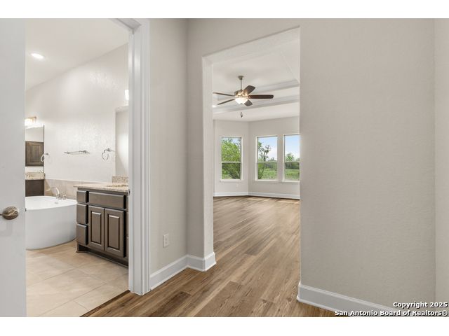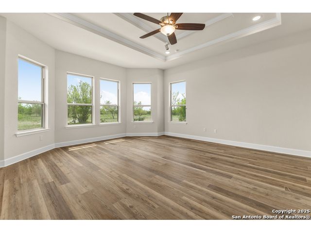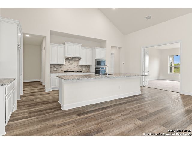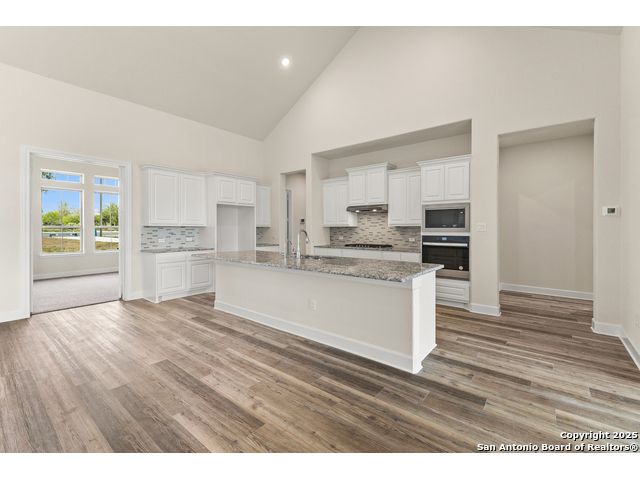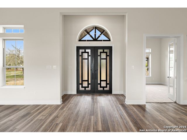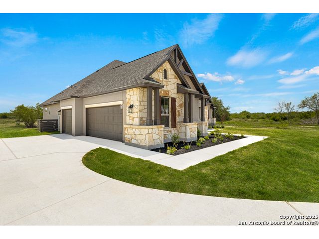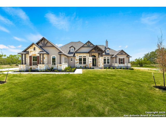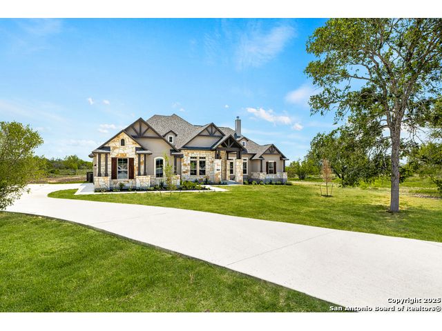 ***NO PID TAXES + FLEX CASH INCENTIVE AVAILABLE*** Experience the perfect blend of privacy, luxury, and convenience on this stunning 1.94-acre cul-de-sac lot in a private gated community in Castroville, Texas. Located only 1.9 miles from town off Hwy 90-with quick access to Loop 1604 and an easy drive into San Antonio, the neighborhood features just 34 acreage homesites, offering a rare sense of space and seclusion. Step inside this thoughtfully designed 4-bedroom, 3.5-bath home featuring a dedicated study, game room, and a showstopping 42-foot great room with soaring cathedral ceilings and walls of windows that flood the space with natural light. The expansive covered patio is ideal for outdoor entertaining or simply enjoying peaceful Hill Country sunsets. Luxury finishes are found throughout double 8' iron entry doors and 8' interior doors to stylish Luxury Vinyl Plank and tile flooring. The oversized primary suite features a bay window sitting area and a spa-inspired bathroom with an enlarged custom shower (complete with ceiling tile, rain head, and frameless glass), a freestanding soaking tub, dual raised vanities with granite counters, and a spacious walk-in closet. The gourmet kitchen has upgraded white cabinetry, granite countertops, stainless steel built-in appliances, a 5-burner gas cooktop, and a separate oven and microwave-perfect for any home chef. Additional highlights include a 3-car side-entry garage with openers, full landscaping with a sprinkler system, and quality construction details. If you're looking for tranquility, space, and easy access to a growing city while staying close to San Antonio, this home checks every box.