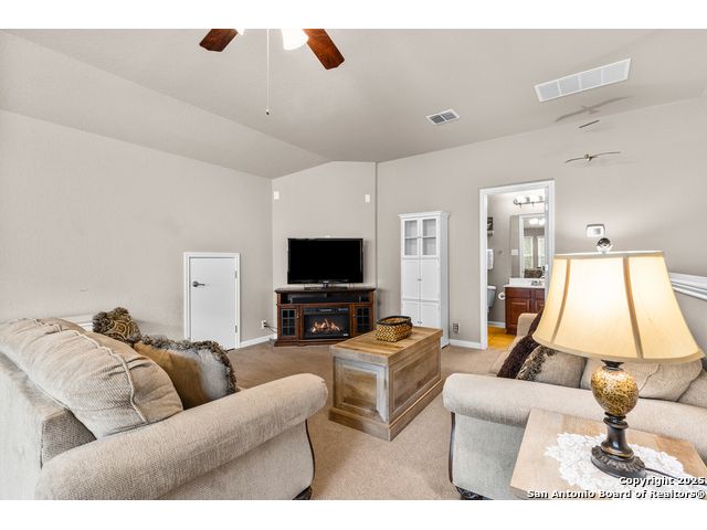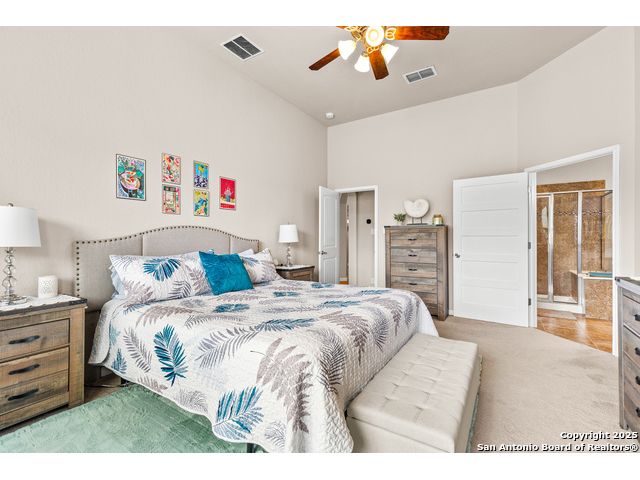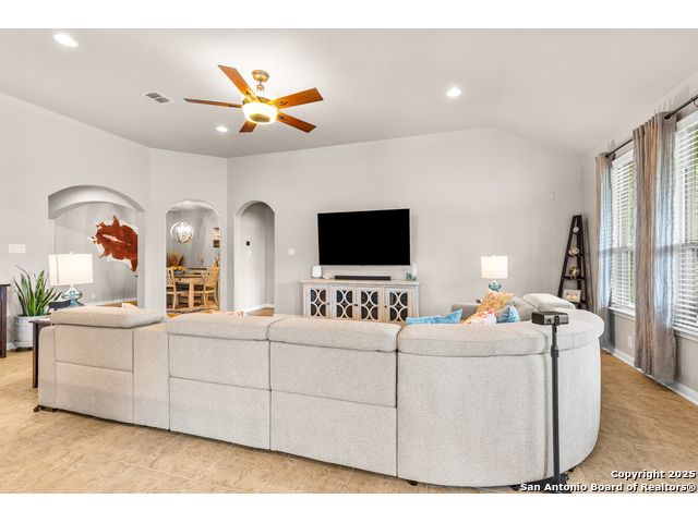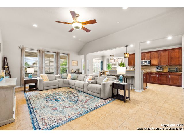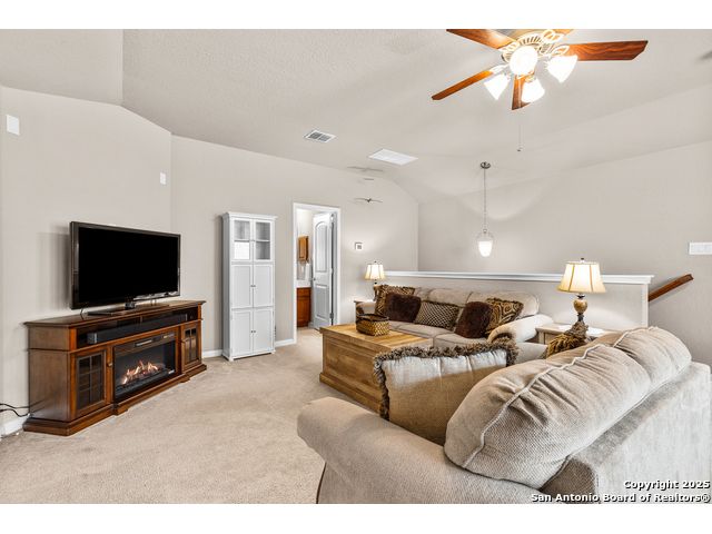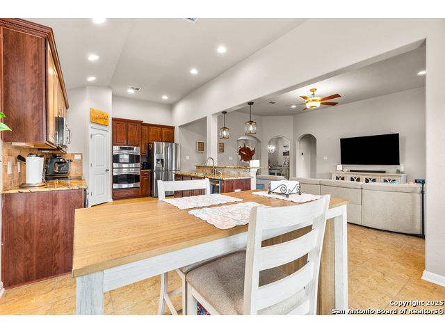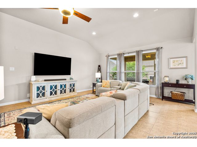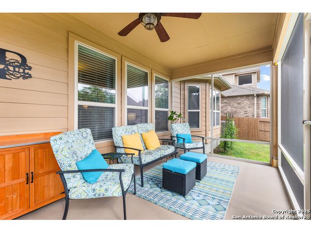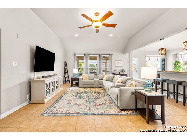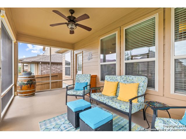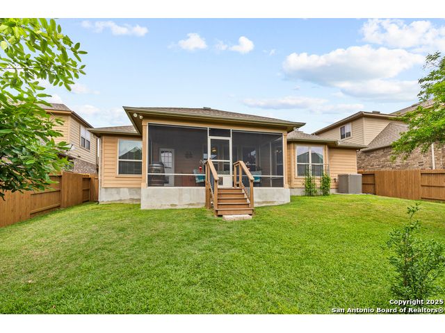 A truly exceptional home in the esteemed Turning Stone neighborhood located in Cibolo, Tx. This large one-and-a-half-story home offers lavishness and has been thoughtfully designed and meticulously pristinely kept. This 2770 Square Ft Home boast plenty of natural light, 3 bedrooms and 3.5 bathrooms, upstairs game room with a full bathroom and closet, offering the potential to be a 4th bedroom, a spacious kitchen with double ovens, a separate induction cooktop, a walk-in pantry, granite counters, 42 kitchen cabinets, new dishwasher, stainless steel appliances with a fridge to convey, and a breakfast bar that opens to the family room, study with wood floors, and a formal dining room. The home has ceiling fans throughout, the home, 2 water heaters, water softener, energy-efficient HVAC system only 2 years old, and surround sound setup for the game room and living room. An owner's retreat with a spacious full bathroom, a separate garden tub and shower, double vanities, and bay windows in the bedroom. The backyard features a large covered and screened-in outdoor living area, perfect for outside dining and entertaining guests. This home is conveniently located near shopping, military bases, major highways, a community pool, tennis courts, a park/playground, and a clubhouse. It is also located in the excellent Schertz-Cibolo-University School District.