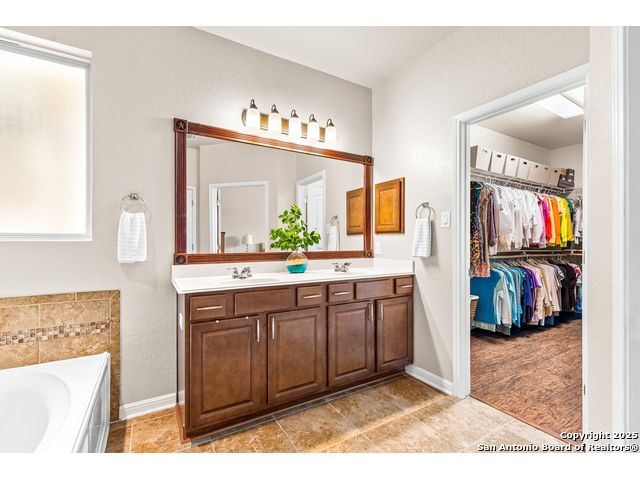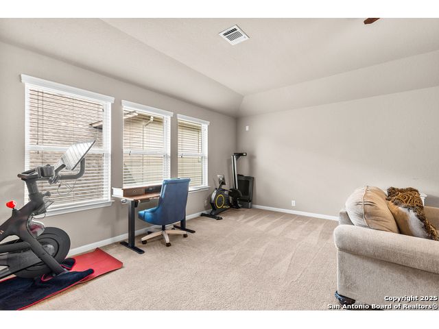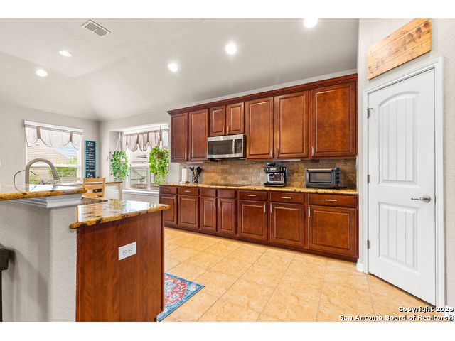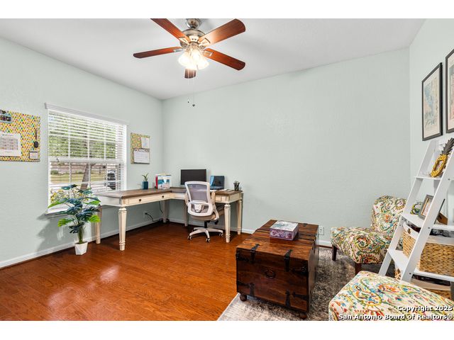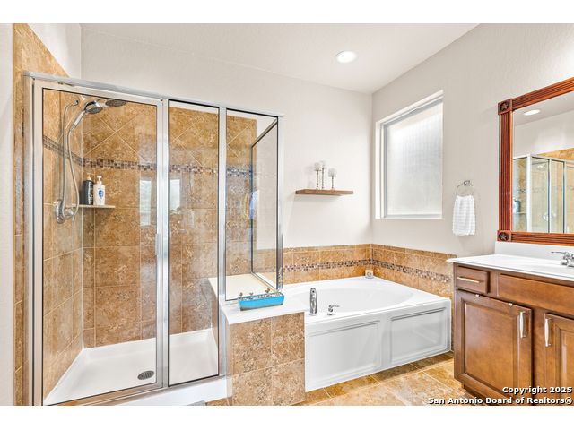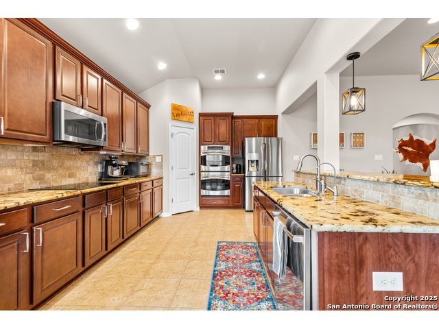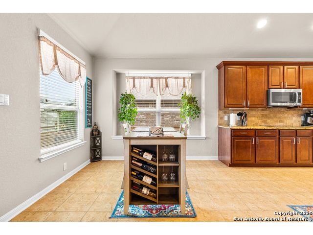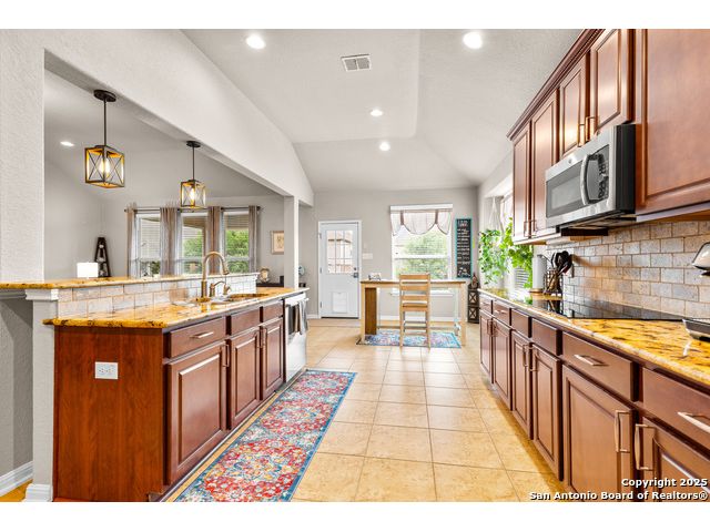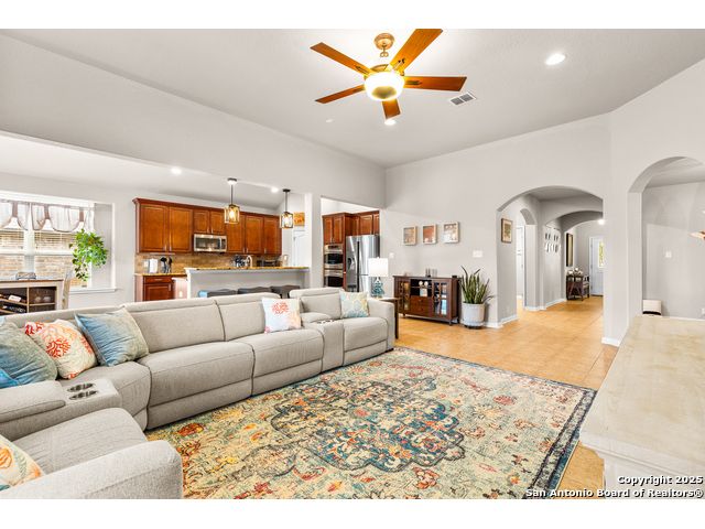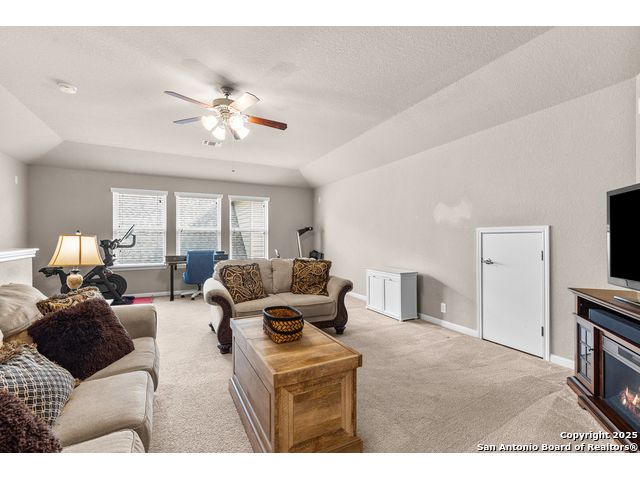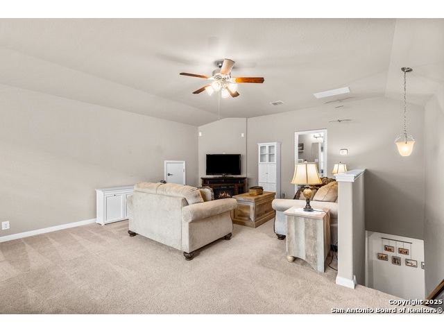 A truly exceptional home in the esteemed Turning Stone neighborhood located in Cibolo, Tx. This large one-and-a-half-story home offers lavishness and has been thoughtfully designed and meticulously pristinely kept. This 2770 Square Ft Home boast plenty of natural light, 3 bedrooms and 3.5 bathrooms, upstairs game room with a full bathroom and closet, offering the potential to be a 4th bedroom, a spacious kitchen with double ovens, a separate induction cooktop, a walk-in pantry, granite counters, 42 kitchen cabinets, new dishwasher, stainless steel appliances with a fridge to convey, and a breakfast bar that opens to the family room, study with wood floors, and a formal dining room. The home has ceiling fans throughout, the home, 2 water heaters, water softener, energy-efficient HVAC system only 2 years old, and surround sound setup for the game room and living room. An owner's retreat with a spacious full bathroom, a separate garden tub and shower, double vanities, and bay windows in the bedroom. The backyard features a large covered and screened-in outdoor living area, perfect for outside dining and entertaining guests. This home is conveniently located near shopping, military bases, major highways, a community pool, tennis courts, a park/playground, and a clubhouse. It is also located in the excellent Schertz-Cibolo-University School District.