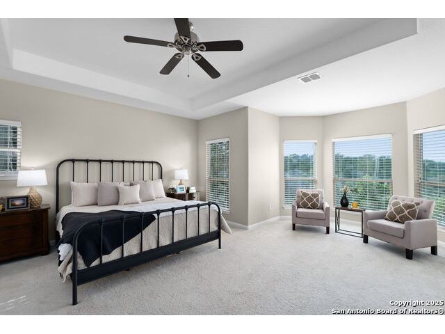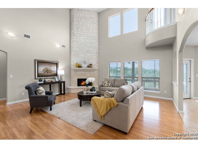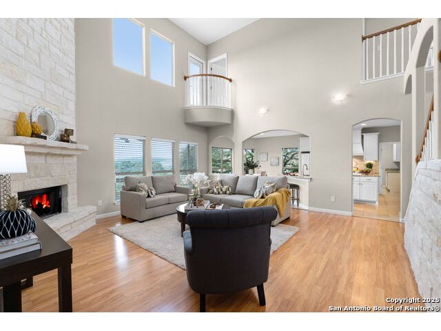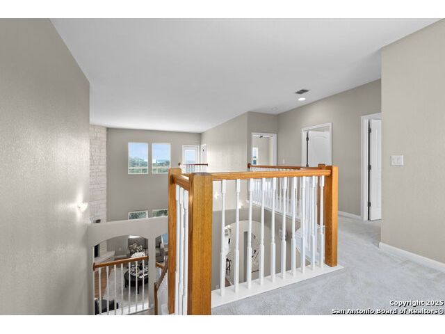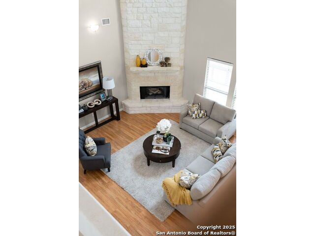 A Peaceful Retreat to Call Home- Set on a scenic ridge in River Chase, this light-filled 4-bed, 3-bath home offers stunning views, peaceful surroundings, and a layout built for real life. From the cozy fireplace and private primary suite to the upstairs flex spaces and additional detached garage, there's room for everyone and everything. Surrounded by native trees and wildlife, this is Hill Country living at its best-with a community full of amenities and New Braunfels just minutes away.