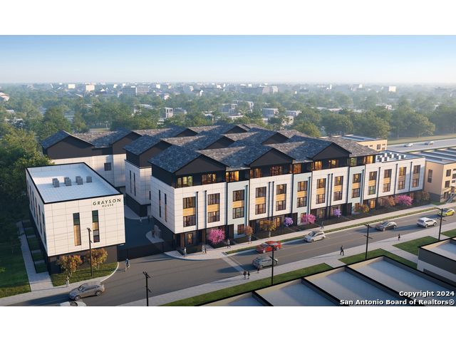 26 Units Sold/Under Contract! Last 2-bedroom unit available in this community in our Emma Design Scheme. Introducing Grayson House, 48 new townhomes located just blocks from San Antonio's Historic Pearl District and close proximity to Downtown San Antonio and St. Mary's Strip. This exceptional new community features three and four-story townhomes showcasing sleek, thoughtful design, open layouts, modern finishes, and stunning city views for select units. Experience elegant features, including quartz countertops in the kitchen and bathrooms, a smart thermostat for optimal climate control, keypad entries for added security and convenience, and matte black hardware for a chic, modern aesthetic. Tile flooring throughout all bathrooms, attached one-car garages, and expansive walk-in closets with custom-built wood shelving add to the appeal. Enjoy the convenience of kitchen islands perfect for cooking and entertaining, a full-size front load laundry set, high ceilings that enhance the sense of space, a french door fridge, a 52-bottle wine fridge, a gas cooktop, a canopy vent hood, and a wall oven for gourmet cooking. Wood-style flooring throughout the living room, kitchen, and bedrooms completes the elegant design. Select floor plans also feature 36-inch soaking tubs, private yards, and balconies, adding an extra touch of comfort and outdoor living space. Experience the vibrant Pearl-area growth with new residential, commercial, and retail developments within walking distance. Grayson House offers a unique blend of convenience, and modern urban living. Make Grayson House your new home and be part of a dynamic, evolving, urban community.