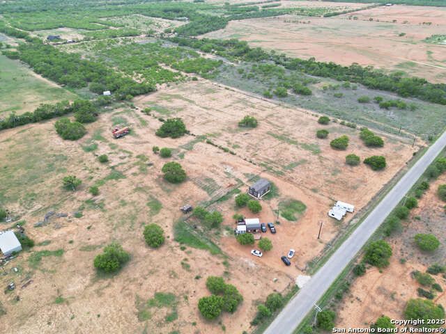 Diamond in the rough !!! 45 mins South of San Antonio Cozy Home on 10+ Acres awaiting the Magic Touch. Whether this is your prefect home or just a Get-away Experience the amazing Texas Sunrises and Sunsets with total tranquility. This home has unlimited potential to grow with room to build on your perfect Sunroom or add a bedroom and bath. This 10+ acre property is completed with a section in the front including electric and water supply to build your Dream Garage or a larger home suitable to your needs. Do you have Guests Visiting? The property is ready for you to set up an RV on a private spot with water, electric and septic hookups. This 3 pasture fenced property is perfect for a Mini Farm with cattle pens and cattle shoot on the backside. also included is a small hay shed to store. Set up your showing today and let's make this your New Home!!