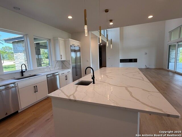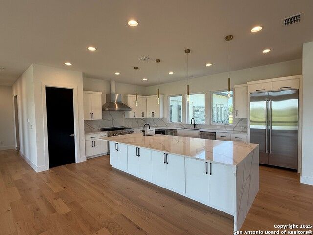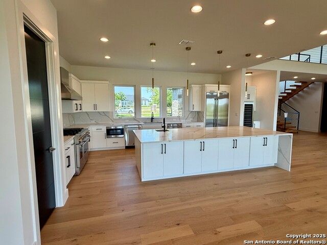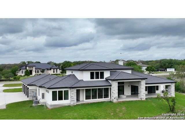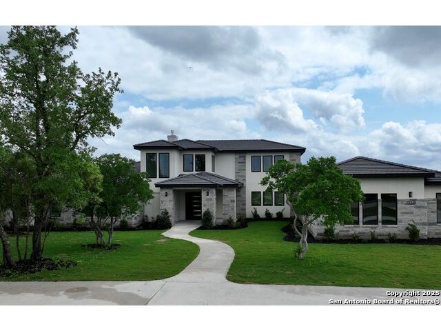 This stunning new home is in The Trails of Briggs Ranch, perched just above the seventh fairway of Briggs Ranch Golf Club. Three bedrooms and 3.5 bathrooms on the first floor and an elevator along with custom built staircase to take you to the upstairs loft and the two additional bedrooms. It offers stunning sunrise views in the rear yard. This is a secure community in west Bexar County conveniently located just 25 minutes from downtown San Antonio, the SA International Airport and 8 minutes from the beautiful Alsatian town of Castroville and all of its restaurants, shopping and small-town charm. The topography offers a gentle slope down to the course with a beautiful view of the rising sun over the golf course.