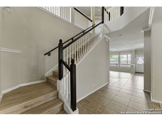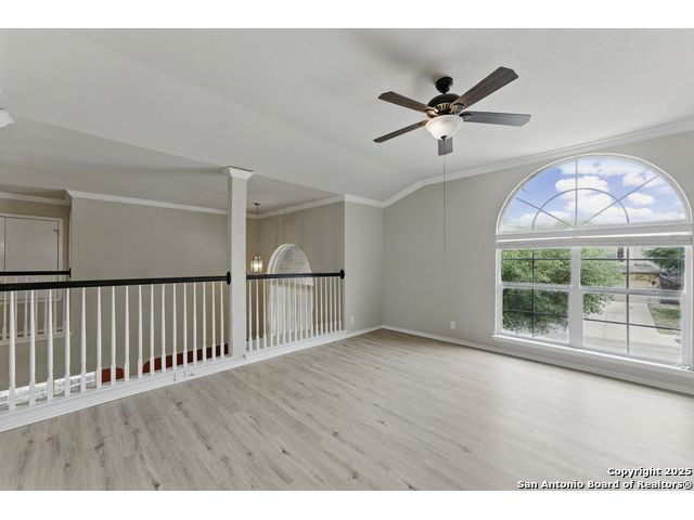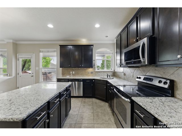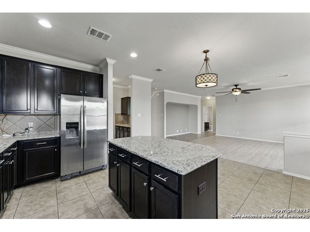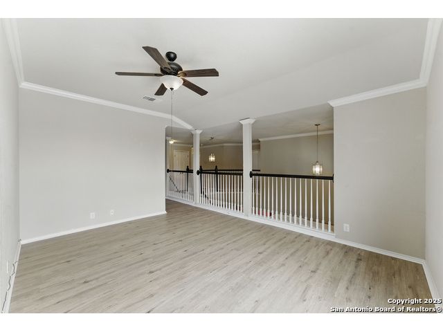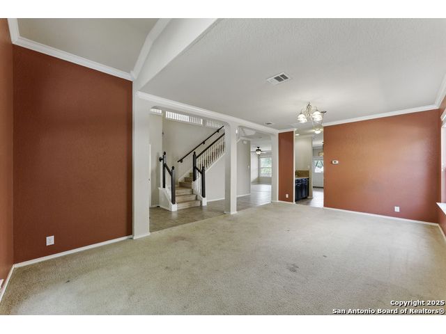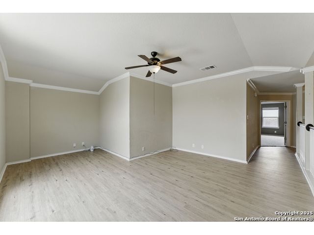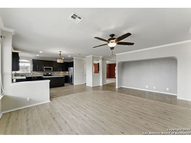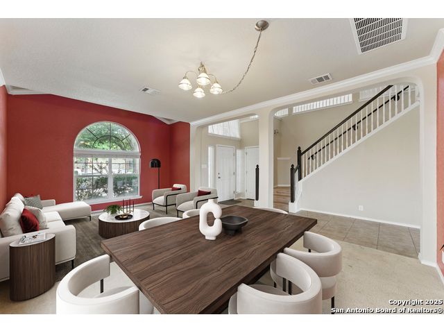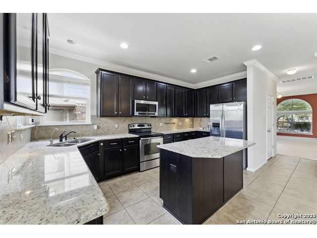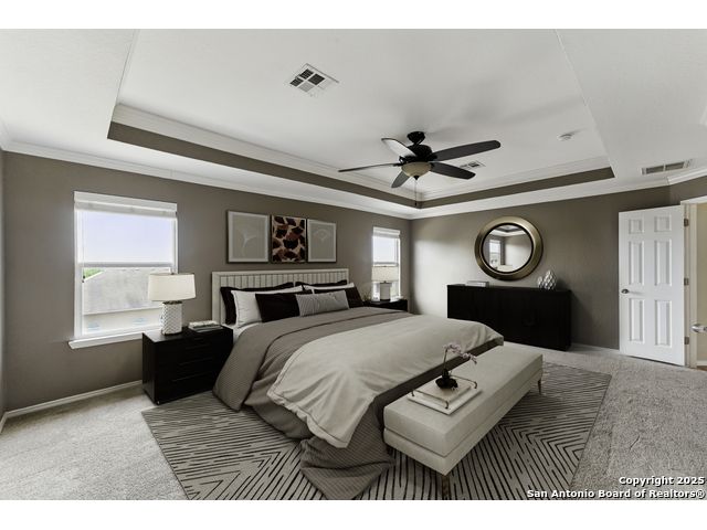 2.875 rate VA Assumable Mortgage. This home has it all! With over 3,200 square feet it has two living areas, two dining spaces, and an upstairs game room, 5 bedrooms, large covered back patio so there's room for everyone to spread out. The kitchen features granite counters, stainless steel appliances, a large island, 42" cabinets, a wet bar, and a massive walk-in pantry. Crown molding adds an elegant touch, and the downstairs bedroom and full bath are ideal for guests or multigenerational living. Upstairs, the private primary suite includes a spacious bath and dual walk-in closets, plus three additional bedrooms and a full bath. Enjoy outdoor living on the large covered patio with fans and sunshades. Additionally this home is equipped with solar panels that will be paid off at closing to keep your utility bills down! Located in a quiet neighborhood with a pool, playground, and easy access to RAFB, I-35, shopping, dining, and Steele High School.