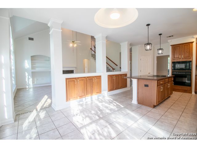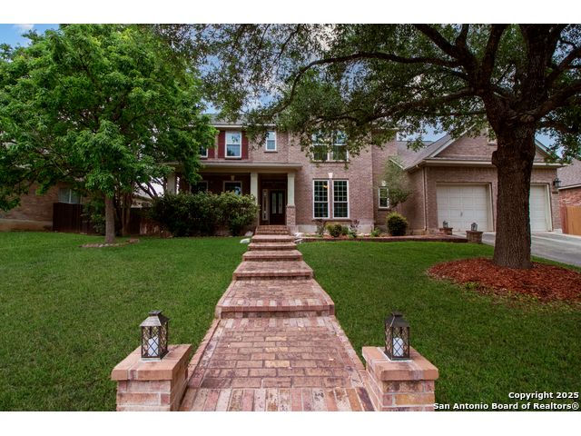 Priced 41K UNDER Bexar County's 2025 Assessment! This Move In Ready 4 bedroom 3.5 bath 2 story brick home is located in the Hidden Mesa subdivision in Stone Oak! Sitting on .226 acres, this home boasts charming brick steps leading to the front door, framed by mature trees. Covered patio w/views to the front yard! As you enter you are greeted by a formal dining room w/crown & chair molding. Fresh interior paint (June 2025) in family room, kitchen, dining, office, primary & upstairs game room! The office has large windows & french door access. The family room offers impressive vaulted ceilings, fireplace, large windows & opens to the kitchen. The kitchen features stainless steel appliances, electric cooktop installed Apr 2025, granite countertops, large island & large breakfast nook! The first level primary suite offers bay windows w/views of the backyard, remodeled ensuite (2020) w/oversized walk-in shower and bench seating, double vanities & generously sized walk-in closet. The second level has a spacious game room that can be used as a secondary living. Three great sized secondary bedrooms w/wood flooring! The backyard has stunning mature trees, patio & plenty of room to entertain. Some updates include: secondary bathroom remodel (2020), roof (2019), front & side windows (2023), HVAC (2021), water heater (2020) and water softener (2020). Highly Rated NEISD school district! Tons of nearby restaurants and shopping. Easy access to Stone Oak Pkwy, 1604 & 281.