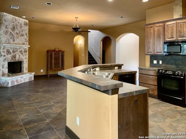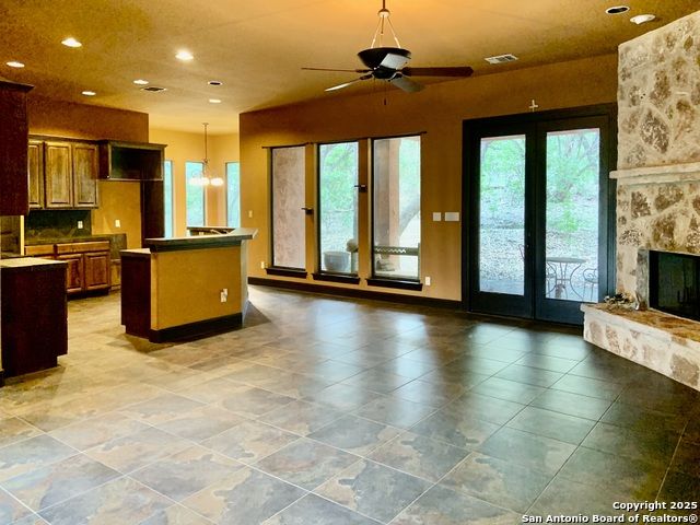 Rare Find!!! Private, Secluded, 2 Story, Stone/Stucco Custom Built Home, 2545 sq ft Main Home w/a 362 sq ft Guest Hm (Total Sq Ft - 2907 per BCAD) on 2 Unrestricted Acres - not in a confined subdivision - NO HOA DUES!!! Main Home boasts of a "Gone with the Wind", fanned stairwell that greets the honored guest at the Grandiose Iron/Glass double front door. Step into this large Family Room w/High Ceilings & Corner Rock Fireplace. Opens to a Delightful, Chef's Kitchen w/Solid Oak custom cabinets & ceramic tile floors throughout the home. Breakfast area overlooks Lg covered backyard patio. Feed the Deer in your own back yard!!! Carpet only in the Primary bedrm, 2 bedrms up & 2nd Living room upstairs. One room on the first floor is versatile - could be formal dining, study or 4th bedroom. Lg Utility Rm w/deep sink in cabinet. 2nd Floor has 2 bedrooms, one full bath and a second living area. Pour yourself a glass of wine and watch the Sun Set over Mother Nature's Magnificent Views. Your Detached Guest House is awaiting the arrival of family and friends in this 1 Bedrm/1 Bath/Kitchen/Dining/Stone/Stucco Guest Home, within this 2 acre, fully fenced, gated compound. Driveway and extra parking is all ready for your RV and guest. Just outside the City of Grey Forest going North on Scenic Loop RD. Welcome Home to God's Country!!!