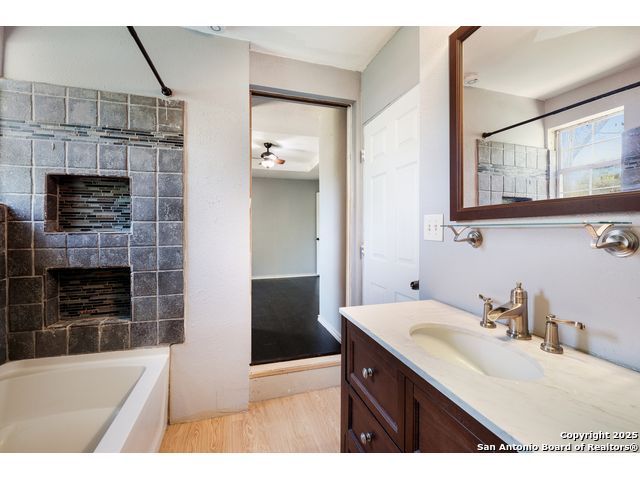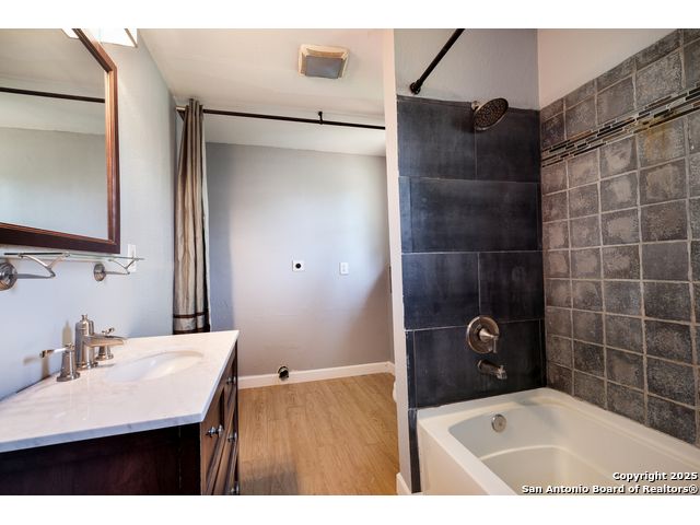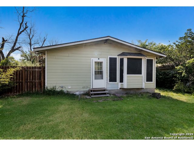 Charming and full of character, this 3 bedroom, 2 Bathroom single story home is conveniently located next to Kenwood Park and Community Center. The interior features freshly painted walls and trim, along with hardwood and tile flooring throughout the living and kitchen areas. A spacious 18' X 12' back family room addition provides extra living space, square footage not included in the BCAD appraisal. Exterior boasts durable four-sided fiber cement siding and a brand new roof installed in 2023 with a Transferable Warranty. A Large 18' X 10' Durable and well constructed Storage Unit in the backyard also conveys, adding added convenience and functionality. Home is conveniently located close to Hwy 281, I-35, IH-10, the Airport, North Star Mall, Quarry Shopping Center, Almos Basin Park, Rusty Lyons Park and Brackenridge Park. Show today, you will not be disappointed !