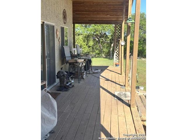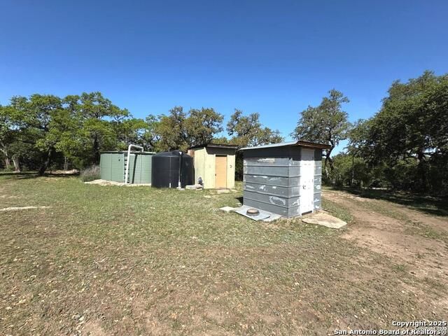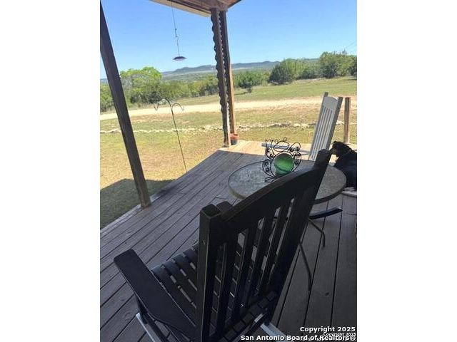 You buy in the Hill Country for the views, and these 10 acres has them!! AMAZING views and beautiful land with incredible Oaks. The quaint 2-1.5 home is super cute and made for front porch sitting. The land is cross fenced and has a 2-stall drive through metal horse barn. There is also a 20,000-gallon rainwater catchment system along with a 480' deep well. With a turn of a knob - the home can run on either system. There is also a storage tank for the well water. The property has ample room for another home and still room to enjoy the views. Gated entry leads you around the Oaks to the clearing where the wow factor starts.