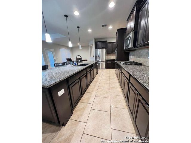 Beautiful home in desired Alamo Ranch area with High ceilings, lots of Storage, Open floorplan with cook's kitchen, large, oversized island, gas stove, double ovens and tons of prep space. This is a must-see floor plan with beautiful features like office nook in the grand room, three flex room spaces and a green belt as your back patio view, and beautiful neighborhood amenities, come check it out today. Motivated seller with a huge price drop!