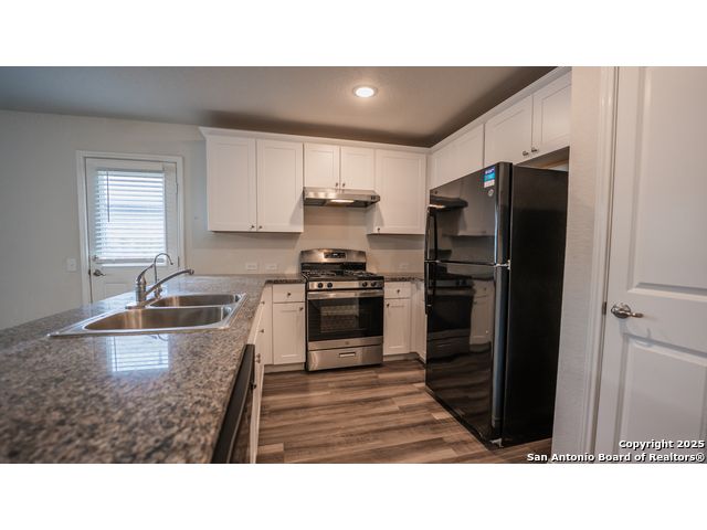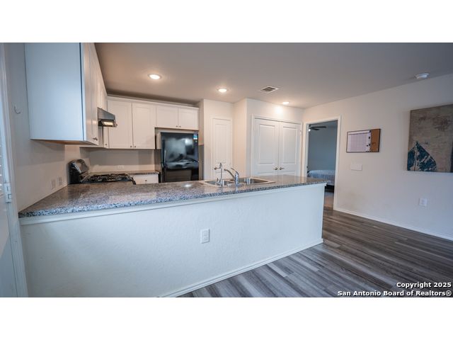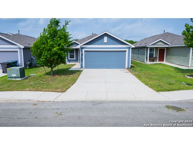 Welcome to 12923 Links Beach-a thoughtfully designed home from the Cottage Collection, offering 3 bedrooms, 2 full baths, and 1,266 sq. ft. of functional living space. The open-concept layout seamlessly connects the kitchen, dining, and living areas, creating a warm and inviting atmosphere perfect for entertaining or everyday comfort. The kitchen shines with granite countertops, a gas range, and a clear view into the dining area, making it both stylish and practical. The private master suite is tucked away in the back corner of the home and features a spacious bath and a walk-in closet large enough to impress any wardrobe. Two additional bedrooms and a full bath are situated near the front-ideal for guests, a home office, or family living. Enjoy added privacy with no back neighbors, and relax knowing you're just a short walk from the renowned Million Del Lago Golf Course-a scenic 18-hole course celebrated for its lakeside views and rolling fairways. Fun fact: The course has earned praise as one of the best-kept secrets in Texas golf, offering a high-quality experience at a surprisingly affordable rate. You'll also love the convenience of nearby Jim Mattox Park, offering trails, playgrounds, and green space just steps from your front door. This home is perfect for those seeking low-maintenance living with lifestyle perks in a quiet, golf-course-adjacent community.