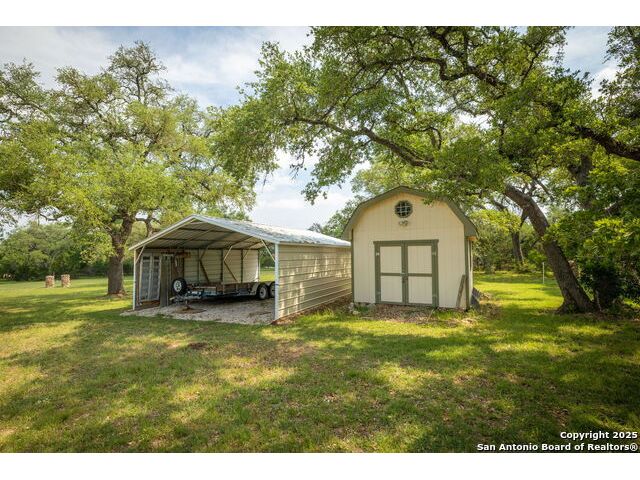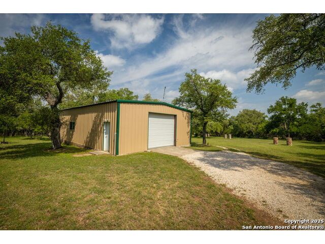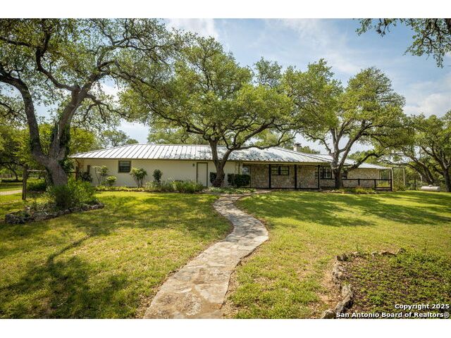One-story Ranch house that has been recently updated with a standing seam metal roof, outside and inside painting, as well as new kitchen appliances. Amazing 10-acre lot with over 45 live oak trees, fully fenced with a gated entrance and recently built 30x50 workshop with 14' overhead door, cement slab. Enjoy the privacy and quietness that country life has to offer. Oversized two car garage 40x24 allows plenty of storage space and room for your vehicles to be parked. The water well has its own well house, a large detached carport, and a fully irrigated, fenced-in garden area.