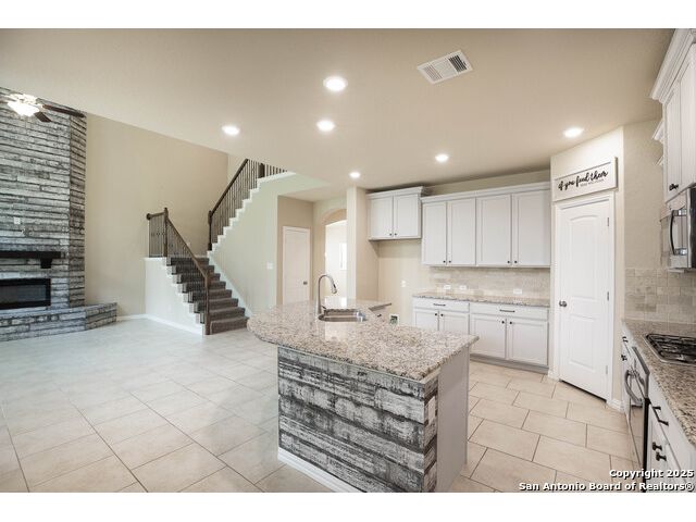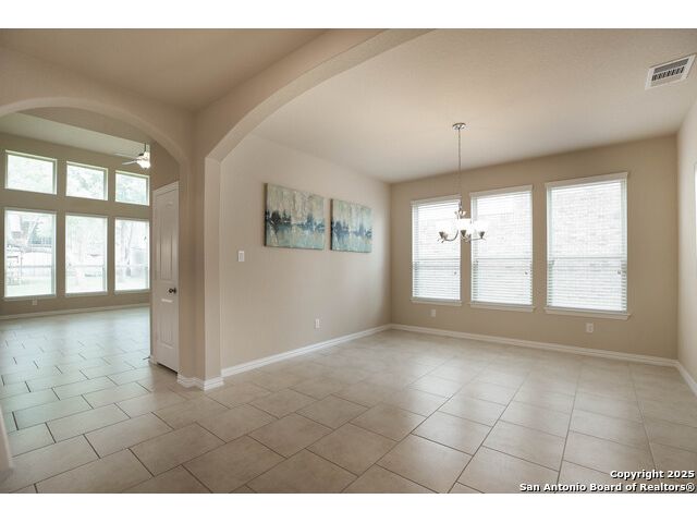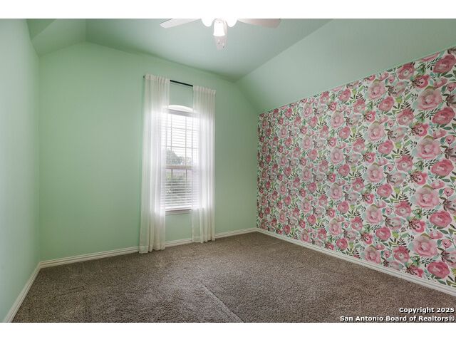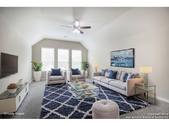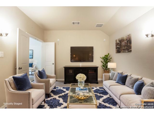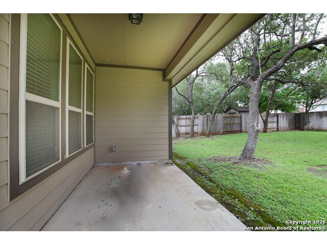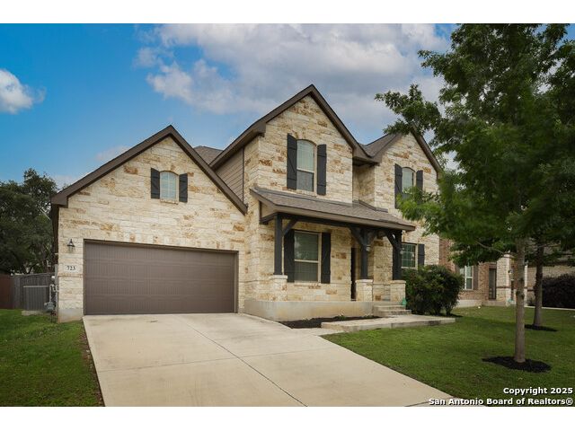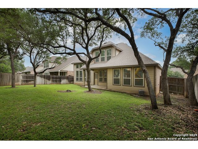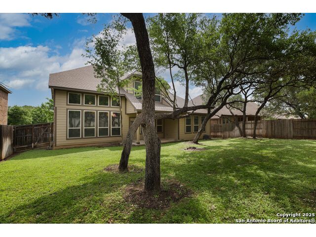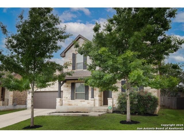 Step into comfort with this stunning 5-bedroom, 4-bathroom home, where upscale style meets everyday functionality. From the moment you enter, soaring ceilings and a sun-drenched open floor plan create a welcoming and spacious atmosphere. The living room, anchored by a striking fireplace, is perfect for cozy evenings or entertaining guests. The main level is thoughtfully designed for modern living. A private home office at the front of the house provides an ideal space for remote work or study, while the formal dining room sets the scene for memorable gatherings. The tranquil primary suite offers privacy and relaxation, complemented by a secondary bedroom and full bath-perfect for guests. Each bedroom throughout the home features distinctive custom wall details, adding character and charm to every space. The chef-inspired kitchen is both beautiful and functional, with a large eat-in island, ample counter space, and a bright breakfast nook overlooking the backyard. Seamlessly connected to the living and dining areas, it's ready for everyday meals or entertaining. Upstairs, enjoy a spacious game room and a dedicated media room---so much room for activities. Three additional bedrooms, including one with a private ensuite, offer versatility for guests, work, or play. Step outside into the oversized backyard oasis, shaded by mature trees and offering plenty of room for outdoor dining, play, or a future pool. Located in the peaceful gated community of Potranco Run, close to shopping, dining, and major routes, this home combines comfort, elegance, and thoughtful design for a lifestyle you'll love.