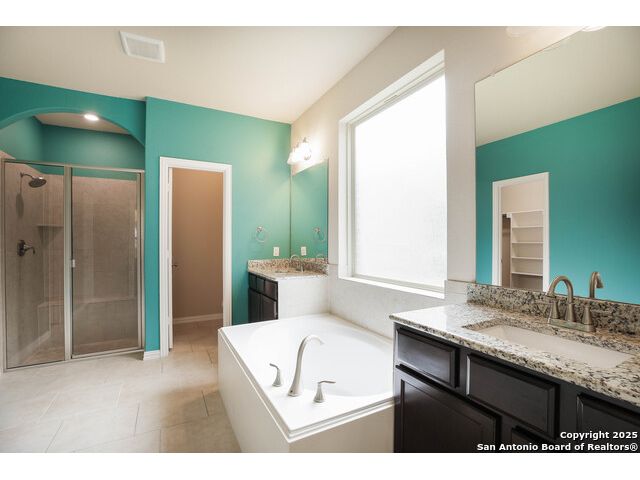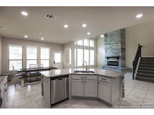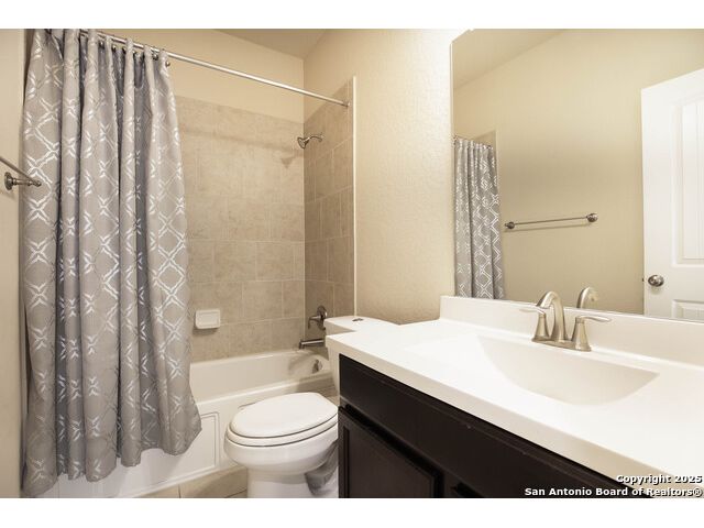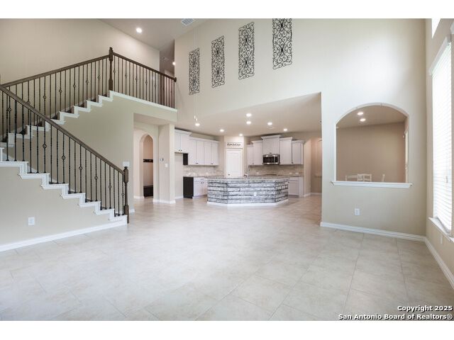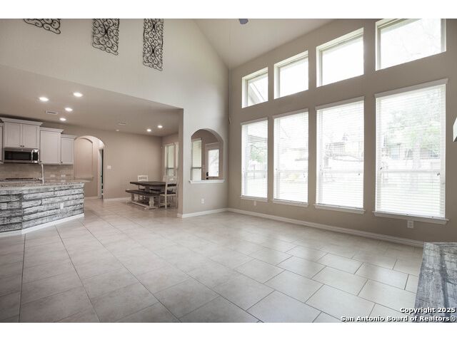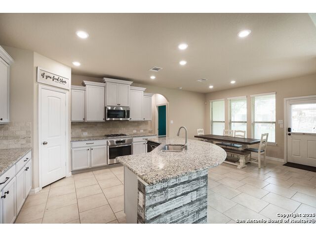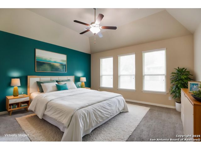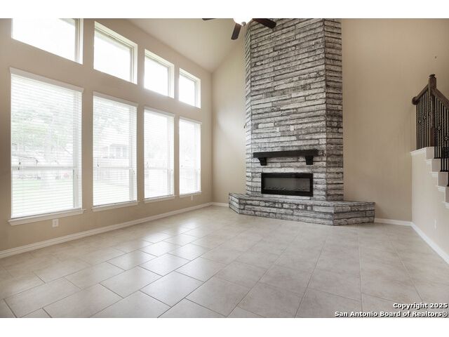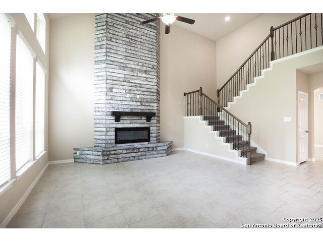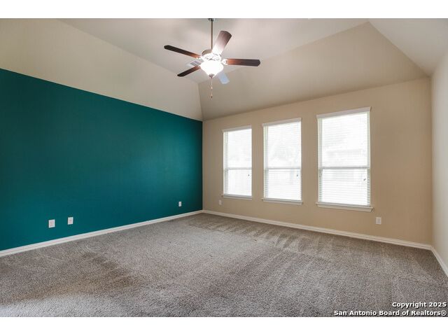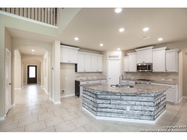 Step into comfort with this stunning 5-bedroom, 4-bathroom home, where upscale style meets everyday functionality. From the moment you enter, soaring ceilings and a sun-drenched open floor plan create a welcoming and spacious atmosphere. The living room, anchored by a striking fireplace, is perfect for cozy evenings or entertaining guests. The main level is thoughtfully designed for modern living. A private home office at the front of the house provides an ideal space for remote work or study, while the formal dining room sets the scene for memorable gatherings. The tranquil primary suite offers privacy and relaxation, complemented by a secondary bedroom and full bath-perfect for guests. Each bedroom throughout the home features distinctive custom wall details, adding character and charm to every space. The chef-inspired kitchen is both beautiful and functional, with a large eat-in island, ample counter space, and a bright breakfast nook overlooking the backyard. Seamlessly connected to the living and dining areas, it's ready for everyday meals or entertaining. Upstairs, enjoy a spacious game room and a dedicated media room---so much room for activities. Three additional bedrooms, including one with a private ensuite, offer versatility for guests, work, or play. Step outside into the oversized backyard oasis, shaded by mature trees and offering plenty of room for outdoor dining, play, or a future pool. Located in the peaceful gated community of Potranco Run, close to shopping, dining, and major routes, this home combines comfort, elegance, and thoughtful design for a lifestyle you'll love.